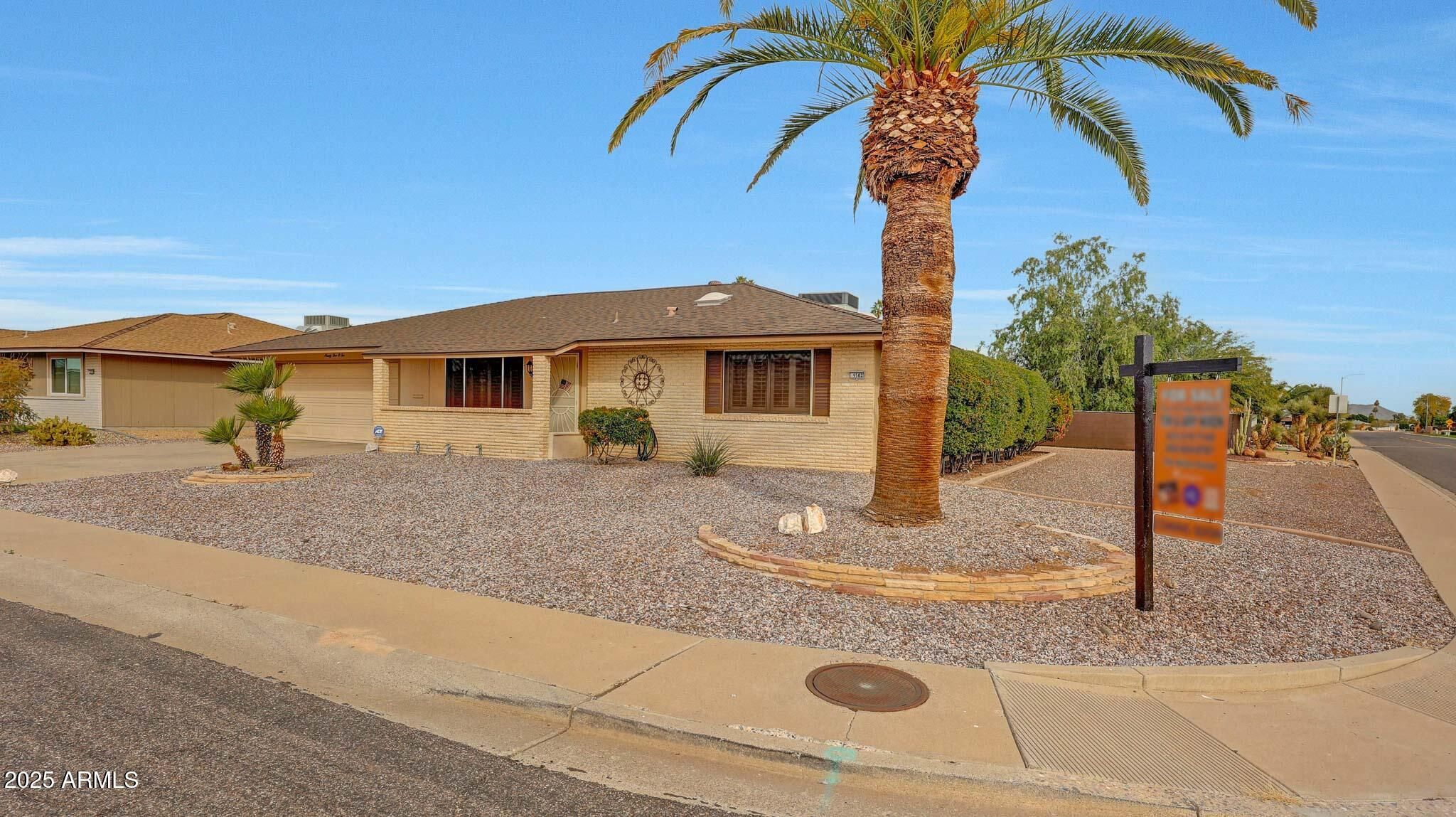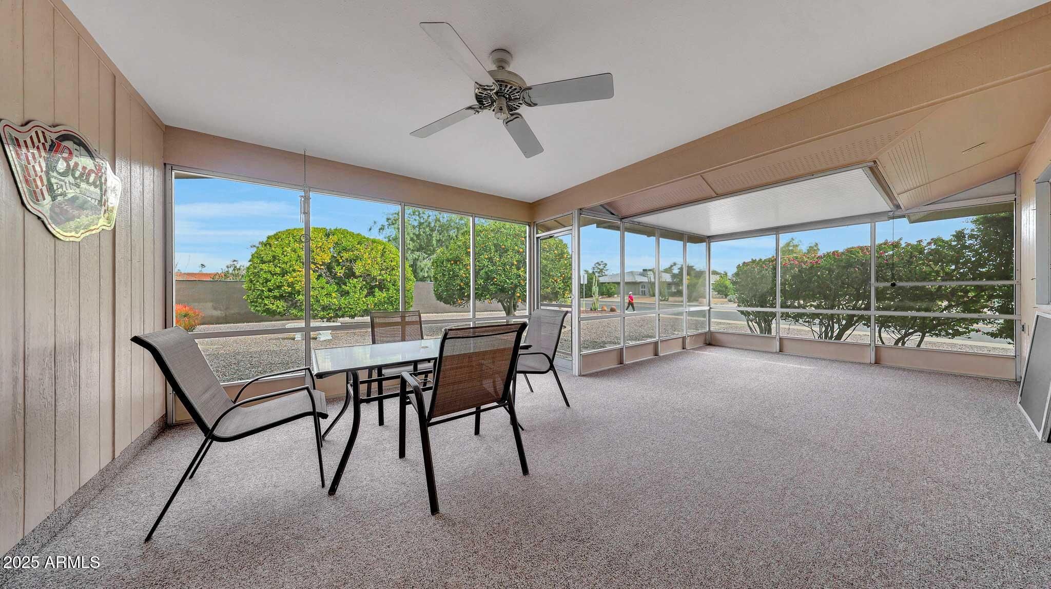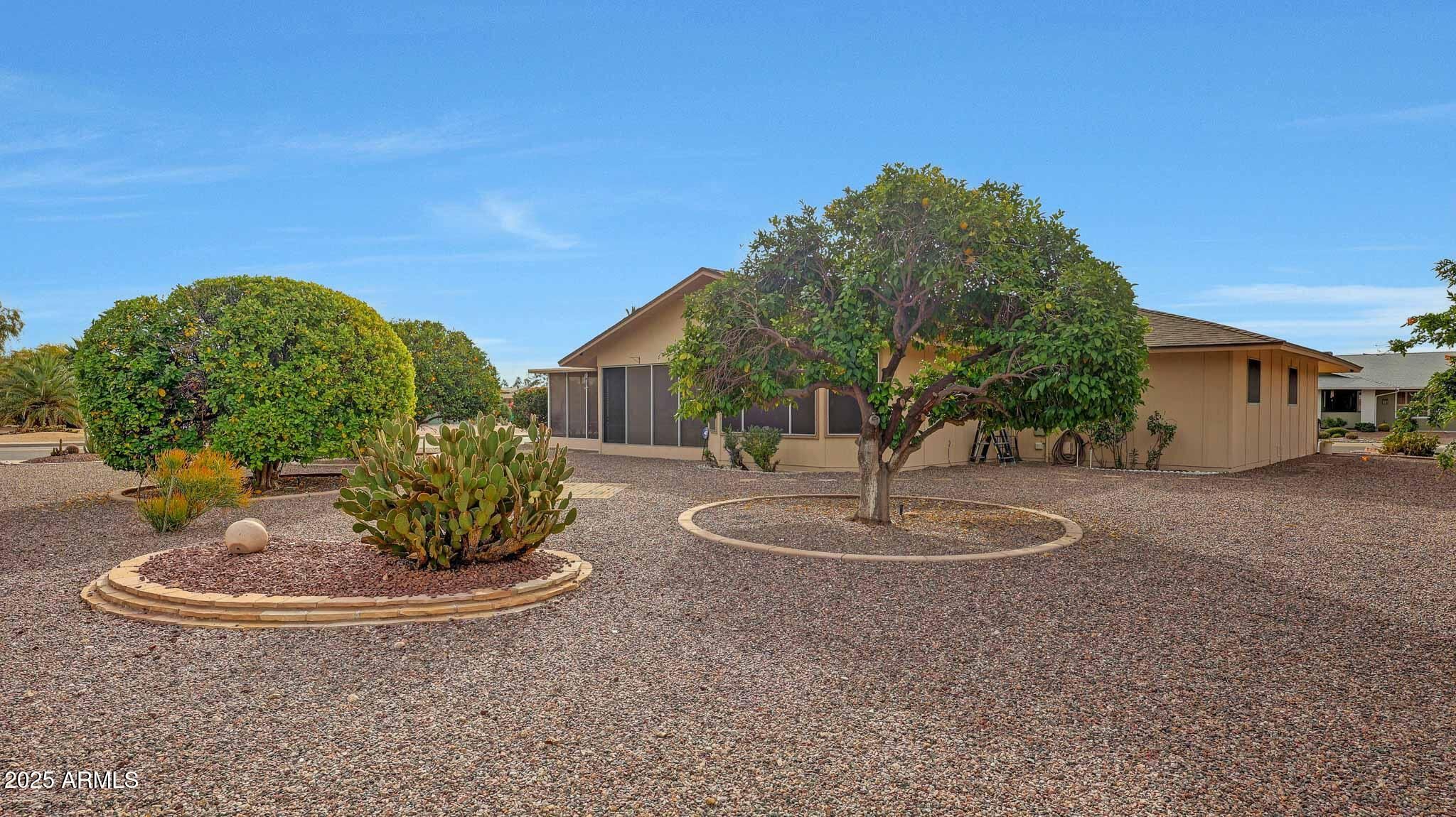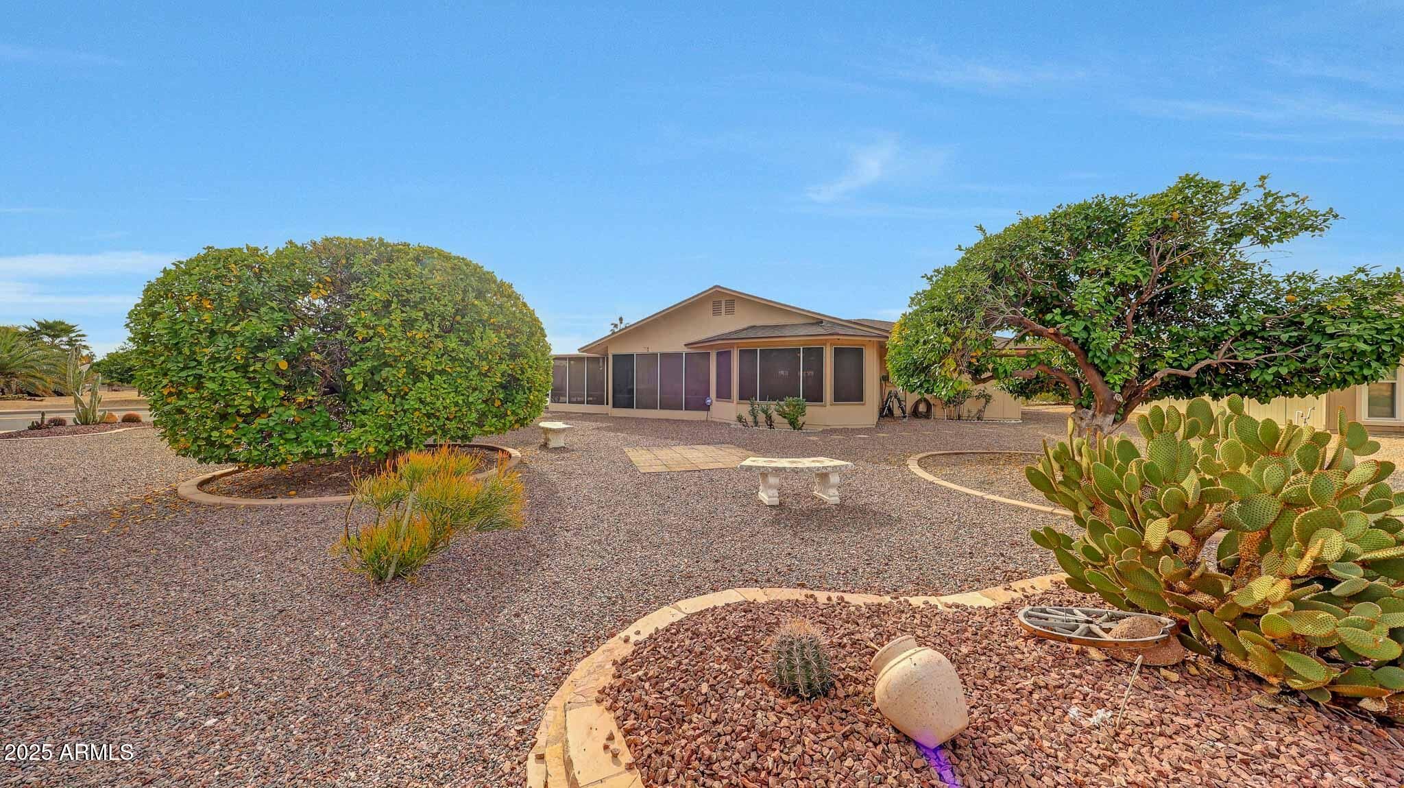 Step Into This Expanded Woodbury Model In Sun City, Perfectly Situated On A Desirable Corner Lot. A Tasteful Room Addition Creates A Spacious Family/Dining Area, And The Popcorn Ceilings Have Been Removed. Flooring Is A Mix Of Tile And Carpet Throughout. The Primary Bathroom Features An Updated Vanity And A Skylight, And There's Another Skylight In The Kitchen. The Kitchen Cabinets Have Been Updated Over Time, And Sliding Doors Lead To A Screened Backyard Patio. A Large Laundry Room Offers Flexible Space For Crafts, An Office, And More. Come See This Inviting Home Soon!