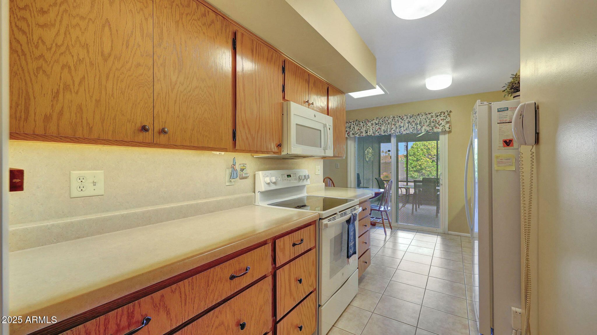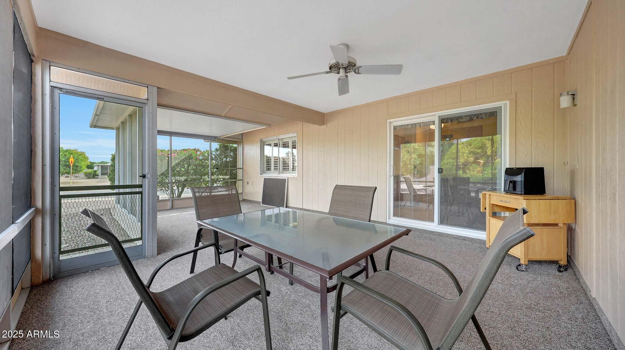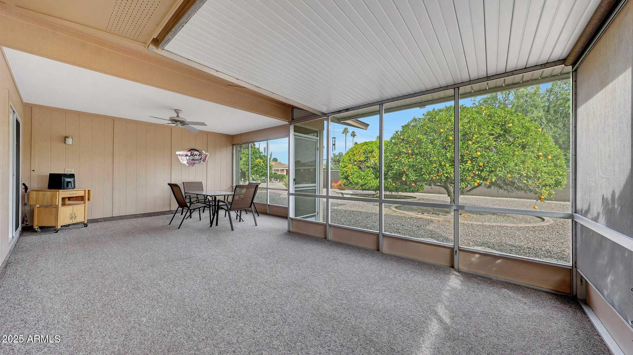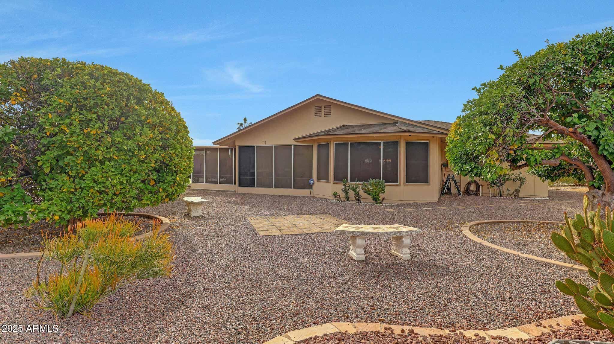 Step Into This Expanded Woodbury Model In Sun City, Perfectly Situated On A Desirable Corner Lot. A Tasteful Room Addition Creates A Spacious Family/Dining Area, And The Popcorn Ceilings Have Been Removed. Flooring Is A Mix Of Tile And Carpet Throughout. The Primary Bathroom Features An Updated Vanity And A Skylight, And There's Another Skylight In The Kitchen. The Kitchen Cabinets Have Been Updated Over Time, And Sliding Doors Lead To A Screened Backyard Patio. A Large Laundry Room Offers Flexible Space For Crafts, An Office, And More. Come See This Inviting Home Soon!