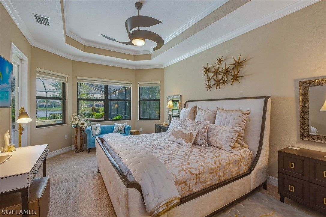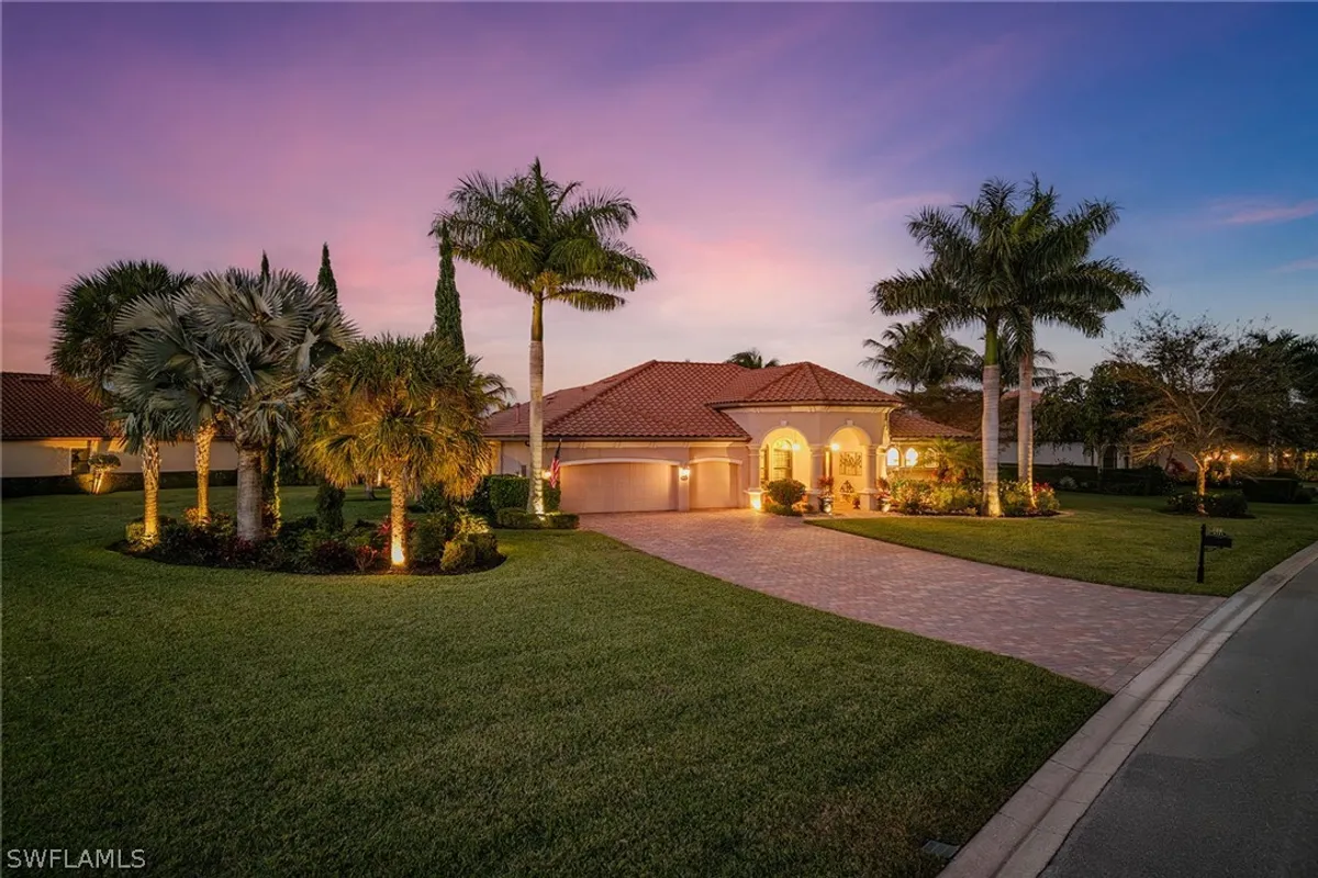 Experience an exceptionally rare opportunity to secure immediate Golf Membership at The Members Club at Marco, allowing the buyer to bypass the waitlist and enjoy two championship courses, The Rookery and Hammock Bay, along with two elegant clubhouses and private beach privileges at the JW Marriott Marco Island from day one. Set on a dramatic half-acre homesite with lush mature landscaping and exceptional privacy, this beautifully maintained residence captures tranquil long lake views in the desirable Lagomar village of Fiddler’s Creek and is being offered beautifully furnished. Positioned on an expansive lot with generous distance between neighboring homes, the property offers sweeping water views from both the interior and outdoor living spaces. The thoughtfully designed home features 4 bedrooms, 3 baths including a convenient pool bath, and a 3-car garage, along with the added financial benefit of the CDD being paid in full. Designed for exceptional indoor-outdoor living and entertaining, the expansive screened lanai with brick pavers embraces the peaceful lake setting with a large covered outdoor living area featuring a tongue-and-groove wood plank ceiling, elegant recessed lighting and ceiling fans that create a warm evening ambiance. The outdoor kitchen with built-in stainless-steel grill, hood, refrigerator, granite countertops and stacked stone backsplash makes entertaining effortless, while the large heated pool and spa with waterfall features and a firepit gathering area create a private outdoor retreat overlooking the tranquil lake. Storm protection includes impact windows and doors plus shutters, and the home is equipped with a security system and gas generator. Inside, elegant architectural details include crown molding, tray ceilings and recessed LED lighting, complemented by chiseled-edge travertine flooring throughout the main living areas. The great room opens seamlessly to the lanai, enhancing the indoor-outdoor lifestyle, while the formal dining area is framed by large windows. The open kitchen features granite countertops, tile backsplash, under-cabinet lighting, a center island with seating and a French-door pantry, along with premium appliances including a natural gas cooktop with paneled hood, GE Profile stainless steel wall microwave and convection wall oven, newer GE French-door refrigerator and dishwasher. The primary suite is a private retreat with bay windows showcasing lake views, direct lanai access and two walk-in closets, while the en-suite bath offers dual vanities, a walk-in shower and soaking tub. Three guest bedrooms with plantation shutters provide comfortable accommodations, while the laundry room includes a newer washer and dryer with cabinetry and utility sink. Residents enjoy an award-winning lifestyle, including resort pools, fitness, spa services, tennis and pickleball, multiple dining venues, and miles of scenic sidewalks ideal for walking, running and bicycling.