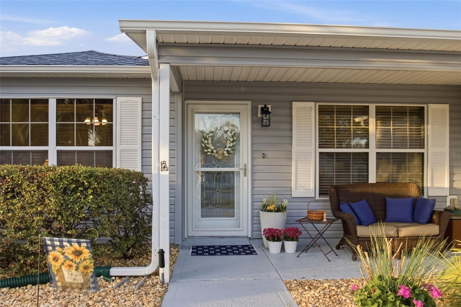 POOL HOME with BOND PAID in the Village of Woodbury! Rare opportunity to own a STRETCHED AMARILLO featuring a beautiful PRIVATE INGROUND POOL, above-ground HOT TUB, and dedicated POOL HALF-BATH—perfect for entertaining and true Florida outdoor living! This 3BR/2.5BA, 1,664 sq ft home sits on a prime corner lot and offers major peace of mind with a NEWER ROOF (2017) and HVAC (2017). Inside, you’ll love the upgraded kitchen with upgraded cabinets with pull out drawers and special features, crown molding, open floor plan, and flexible guest space ideal for visitors or a home office. The outdoor space is the showstopper—swim laps, host gatherings, or relax in your private spa retreat. Furniture package available separately makes this an easy move-in or investment option. Located in the highly desirable community of Woodbury in The Villages, Florida, short golf cart drive to golf, pools, recreation, shopping, dining and the VA clinic. BOND PAID + HEATED POOL + POOL BATH + CORNER LOT = HARD-TO-FIND COMBINATION. Homes like this move fast—schedule your showing NOW before it’s gone!