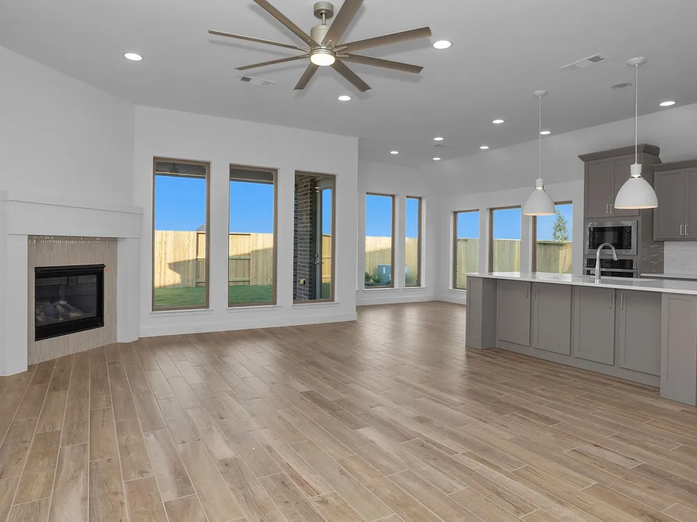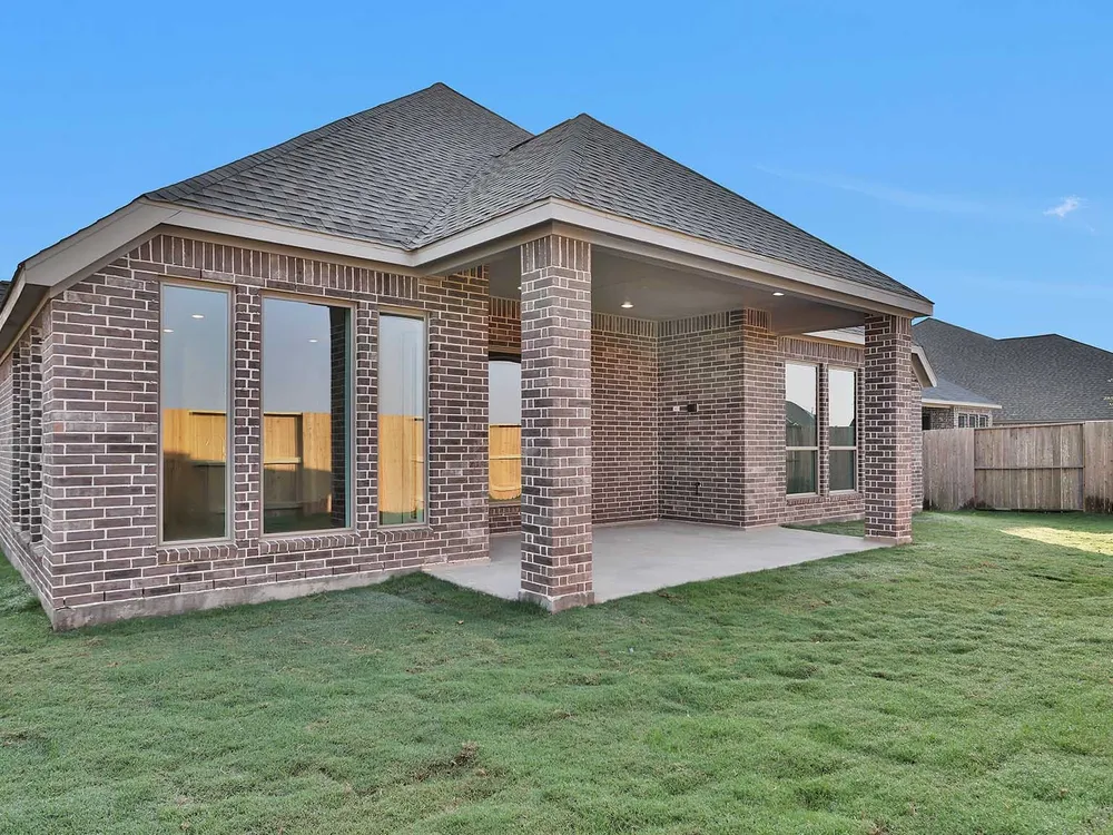 READY FOR MOVE-IN! 55+ Active Adult Community Offering Privacy with a Gated Entry. Home office with French doors set at entry with 12-foot ceiling. Game room with French doors off extended entry. Family room with a wood mantel fireplace and wall of windows opens to kitchen and dining area. Kitchen features walk-in pantry, 5-burner gas cooktop and generous island with built-in seating space. Primary suite includes bedroom with wall of windows. Double doors lead to primary bath with dual vanities, garden tub, separate glass-enclosed shower and oversized walk-in closet. A guest suite with private bath adds to this four-bedroom home. Extended covered backyard patio. Two-car garage.