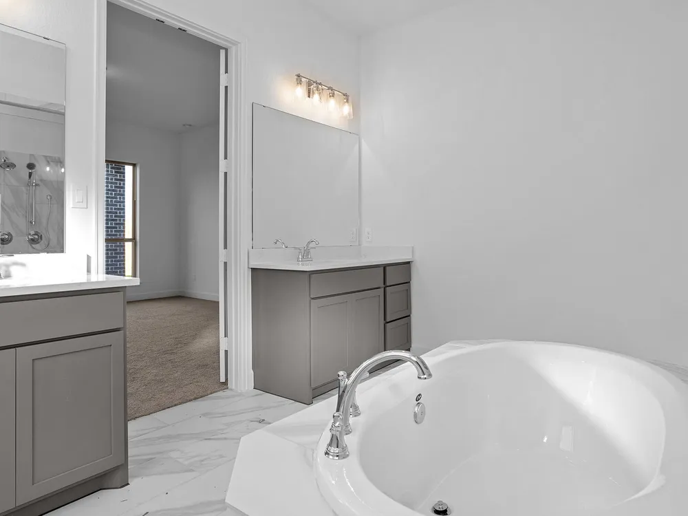 - Double Vanity, Entrance Foyer, High Ceilings, Kitchen Island, Kitchen/Family Room Combo, Bath in Primary Bedroom, Pantry, Quartz Countertops, Soaking Tub, Separate Shower, Tub Shower, Ceiling Fan(s), Kitchen/Dining Combo, Programmable Thermostat
