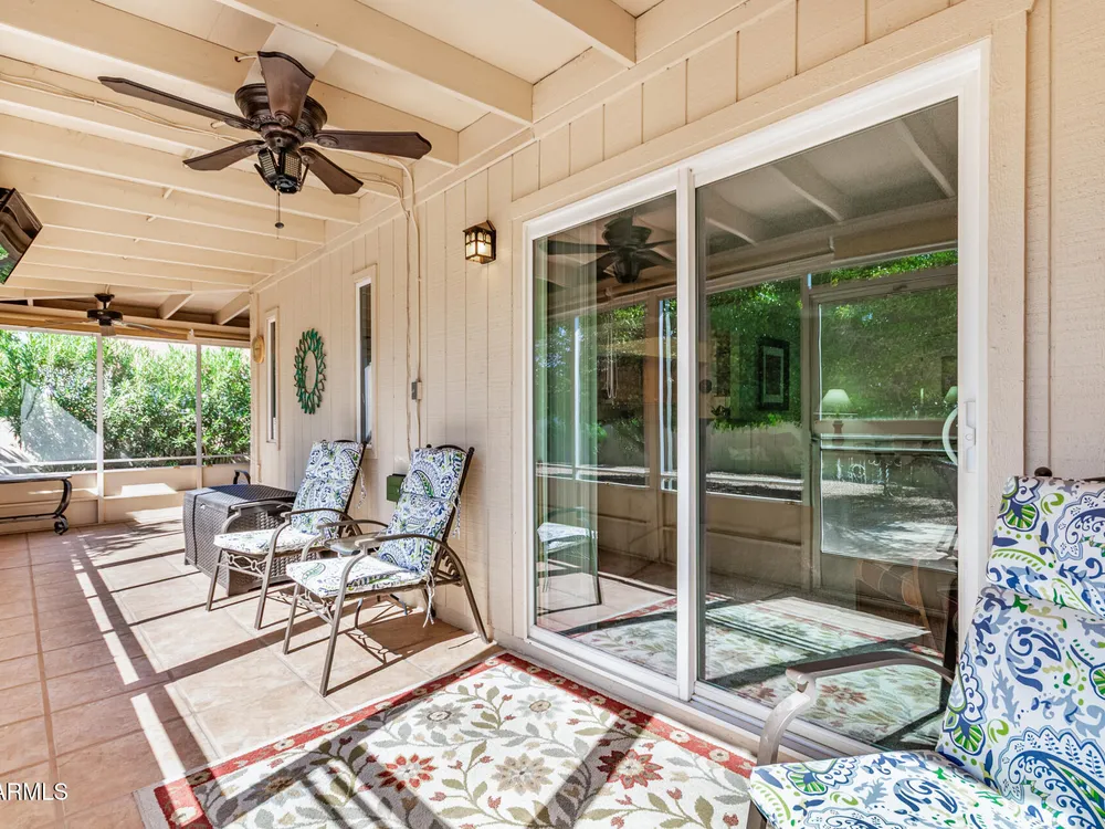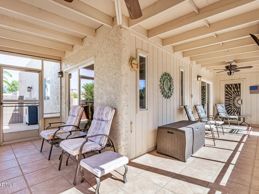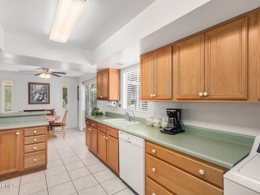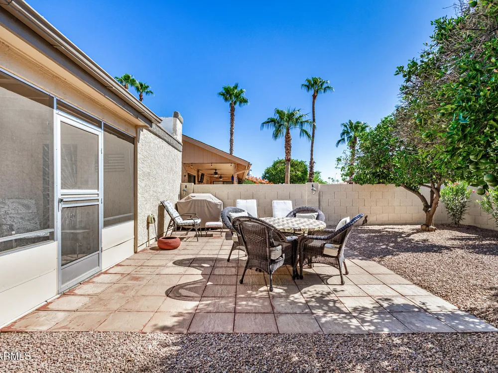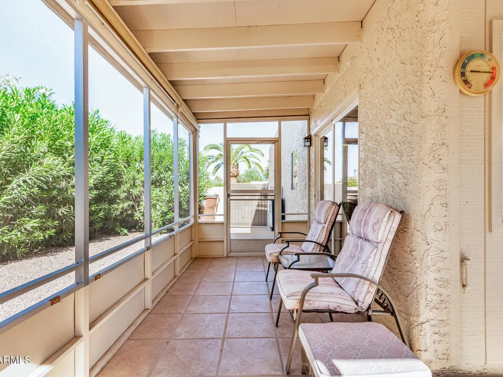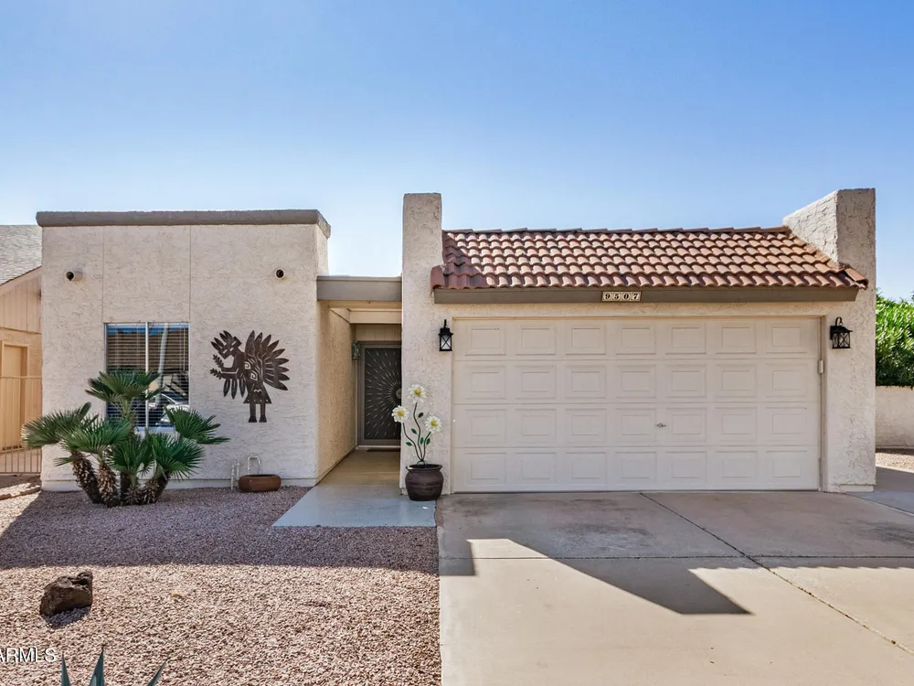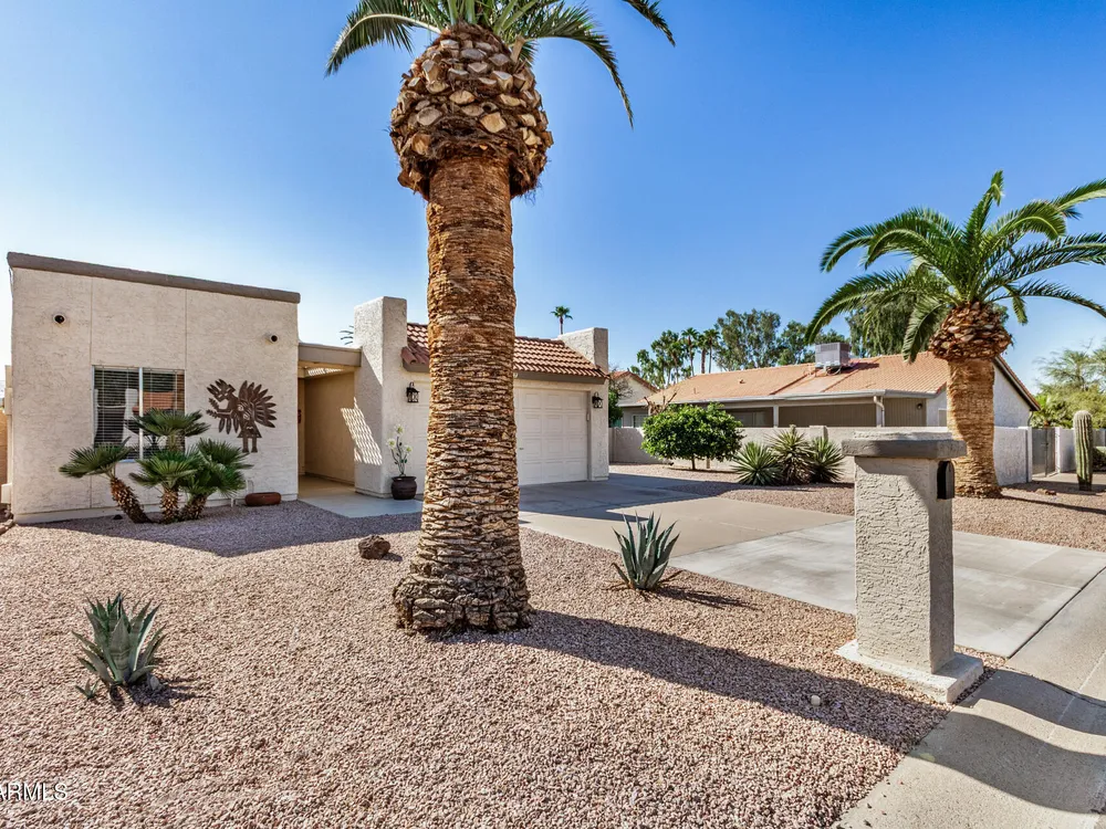 Say hello to your next happy place! Inside, you'll be greeted by cozy carpet and tile floors in all the right spots, plus a living room ideal for movie nights. Kitchen is bright & includes plenty of counter space for your culinary masterpieces. Retreat to your main bedroom with a sitting nook perfect for curling up with a book, and an easy to walk in shower in bathroom. The bright wrap around Arizona room is your go-to spot for morning coffee or evening cocktails. Fire up the grill for backyard barbecues or kick back and stargaze under desert skies. Bonus: the community brings the fun with a sparkling pool, water features, tennis. golf, club house and more. In Sun Lakes, your golf cart can take you to bank, store or lunch with friends- all just minutes away! See walk through video! The owner has thoughtfully improved this home with both functional and cosmetic updates. Recent upgrades include a new washer, dryer, refrigerator, and a fully updated master shower with a new drain. The exterior was painted in 2023, and a flat roof was recoated as well. Inside, a reverse osmosis system was added, along with new epoxy in the garage and front entry, overhead garage storage, and a completed garage conversion. Additional improvements include an office space in the master suite that can easily be removed if desired, regular annual HVAC servicing, and the fact that the home has only been lived in during the cooler months. Sun screens were removed from the front bedroom and kitchen but can be added back. The backyard includes several orange trees and three different grapefruit varieties, offering both beauty and fresh citrus right at home. This fantastic space is further enhanced with attention to detail and ongoing maintenance, making it both move-in ready and highly desirable.