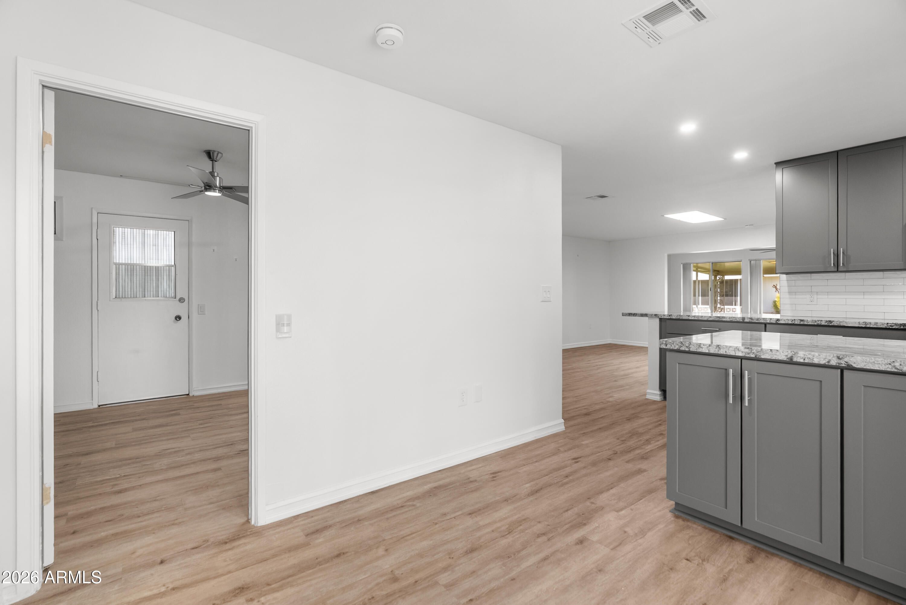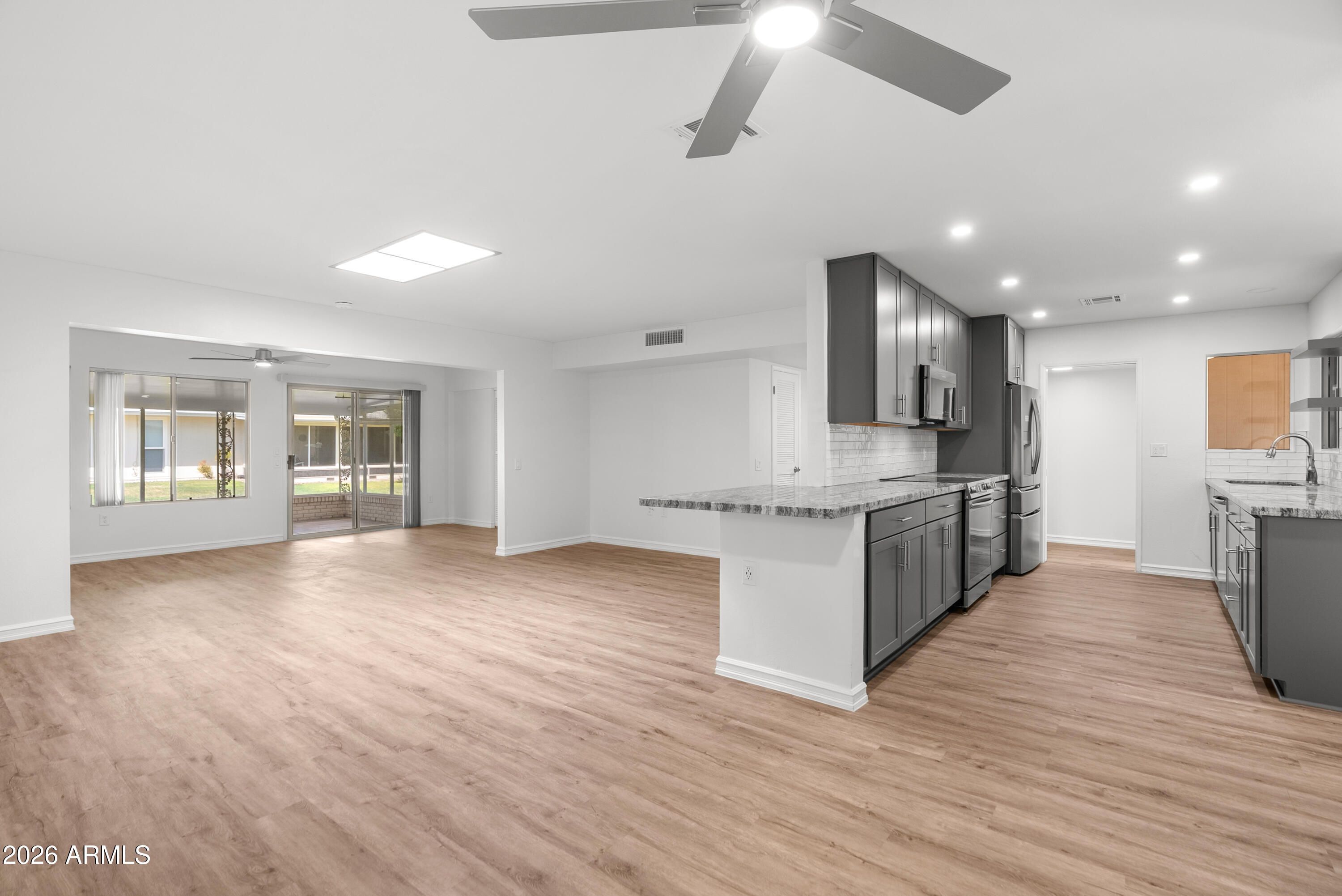 Experience the ultimate ''lock-and-leave'' lifestyle in this extensively remodeled Gemini Twin home in the heart of Sun City. This high-quality renovation features a stunning kitchen with sleek granite countertops, updated bathrooms, and modern LVP flooring throughout. Fresh paint and new baseboards provide a crisp, move-in-ready finish. Wonderful outdoor living space! Enjoy worry-free living as the HOA handles your exterior maintenance plus you full access to Sun City's world-class amenities: 8 recreation centers, beautiful golf courses & sparkling pools. Whether you are seeking a seasonal retreat or a permanent oasis, this property delivers effortless Arizona living. Perfectly situated for convenience and comfort, this is the low-maintenance gem you have been waiting for.