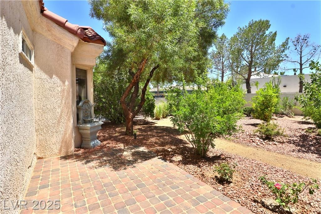 Renovated Sun City Summerlin GEM FOR SALE! Check out this charming Weston model that has been updated with a modern flair! New flooring, new hall bathroom, and a remodeled open area really makes this home inviting and functional, complete with that OPEN FLOOR PLAN area that so many people desire! This home, unlike the others in the community, has a fully fenced back yard with gorgeous landscaping that features fruit trees including tangerine, fig, pistachio nut, lemon and pomegranate, as well as stunning rose bushes, and mature desert elms! The kitchen features newer quartz countertops, custom Hampton Bay ceiling fans, and stainless steel appliances. The hot water heater and water softener system are both in excellent condition! Sun City Summerlin is a 55+ golf community that offers amazing amenities for an active lifestyle with Golf Courses, Community Pools, Exercise Rooms, Tennis and Pickle Ball Courts, Social Clubs and MORE.