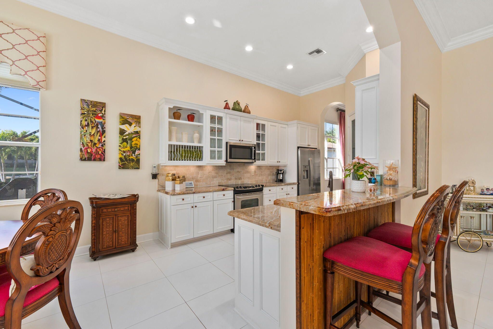 - Closet Cabinetry, Entry Level Living Area, Entrance Foyer, Split Bedrooms, High Ceilings, Walk-In Closet(s), Attic, Cabana Bath, Home Office, Family Room, Eat-in Kitchen, Separate/Formal Dining Room, Storm Window(s), Impact Glass, Sliding Window(s), Dual Sinks, Primary Downstairs, Separate Shower, Bathtub, Washer/Dryer Hookup