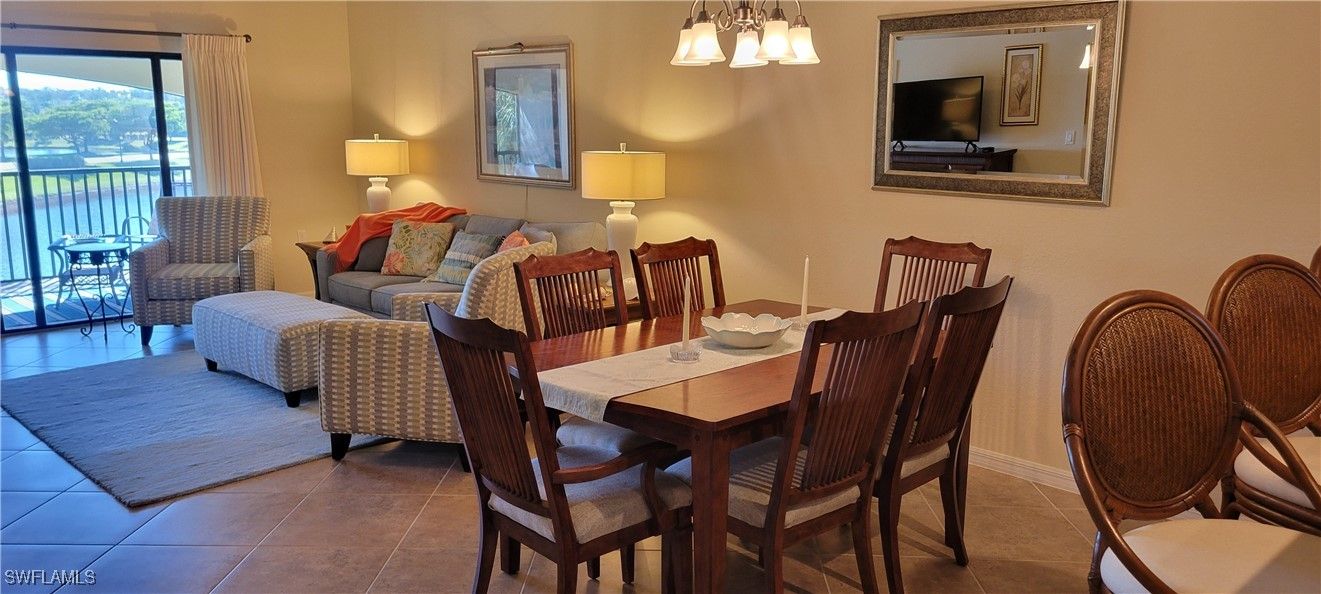 Stunning and Sunny Bright Southern Exposure End Unit with Long Lake Views. This very lightly used is being offered Turn-Key furnished for immediate occupancy and enjoyment. This Arabella Floor Plan is on the second floor with the optimal amount of privacy with no buildings in sight from the patio and the side windows. The home is very well equipped and set up as 3 bedrooms, the center room (Den) does not have a closet, this room offers privacy for overflow guests with a privacy door to the guest hall. A private staircase leads to the spacious Front screened Veranda. Volume Ceilings in the kitchen and Living room keep this room airy and light. The detached garage is only at the base of the entry stairs. Well maintained, new carpet and a shedualed replacement for the hot water heater Dec. 2025. As a Social Member to Treviso enjoy all of the amenities this community has to offer from Resort Style amenities, Lap Pool, Social Pool, Fitness Center, Tennis, Pickleball, Community Pool. Clubhouse Dining, Casual Bar and Grill. Located close to downtown Naples Restaurants Shops and Beaches.