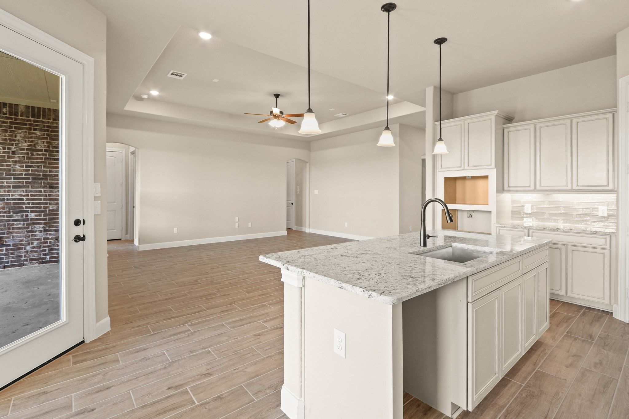 Built by Tricoast, the Avanti Plan at Serenity at Meridiana offers low-maintenance living in a gated 55+ community within the award-winning Meridiana master-planned development in Manvel, just minutes from Pearland Town Center. This thoughtfully designed home features 9' ceilings with 10' tray accents, 8' doors, large windows, granite countertops, oversized kitchen island, and ample storage throughout. A flex room provides space for a study, craft room, or home office. Enjoy spacious closets, a well-appointed laundry room with sink and space for a second fridge, and a 2-car oversized garage. The covered patio is perfect for outdoor dining and relaxation. Community perks include front yard maintenance, private pool, pickleball and bocce courts, and access to exclusive clubhouses. A full calendar of monthly events is curated by an on-site Lifestyle Director. Located just 30 minutes from Houston and one hour from Galveston, this is comfort and convenience in one serene setting.