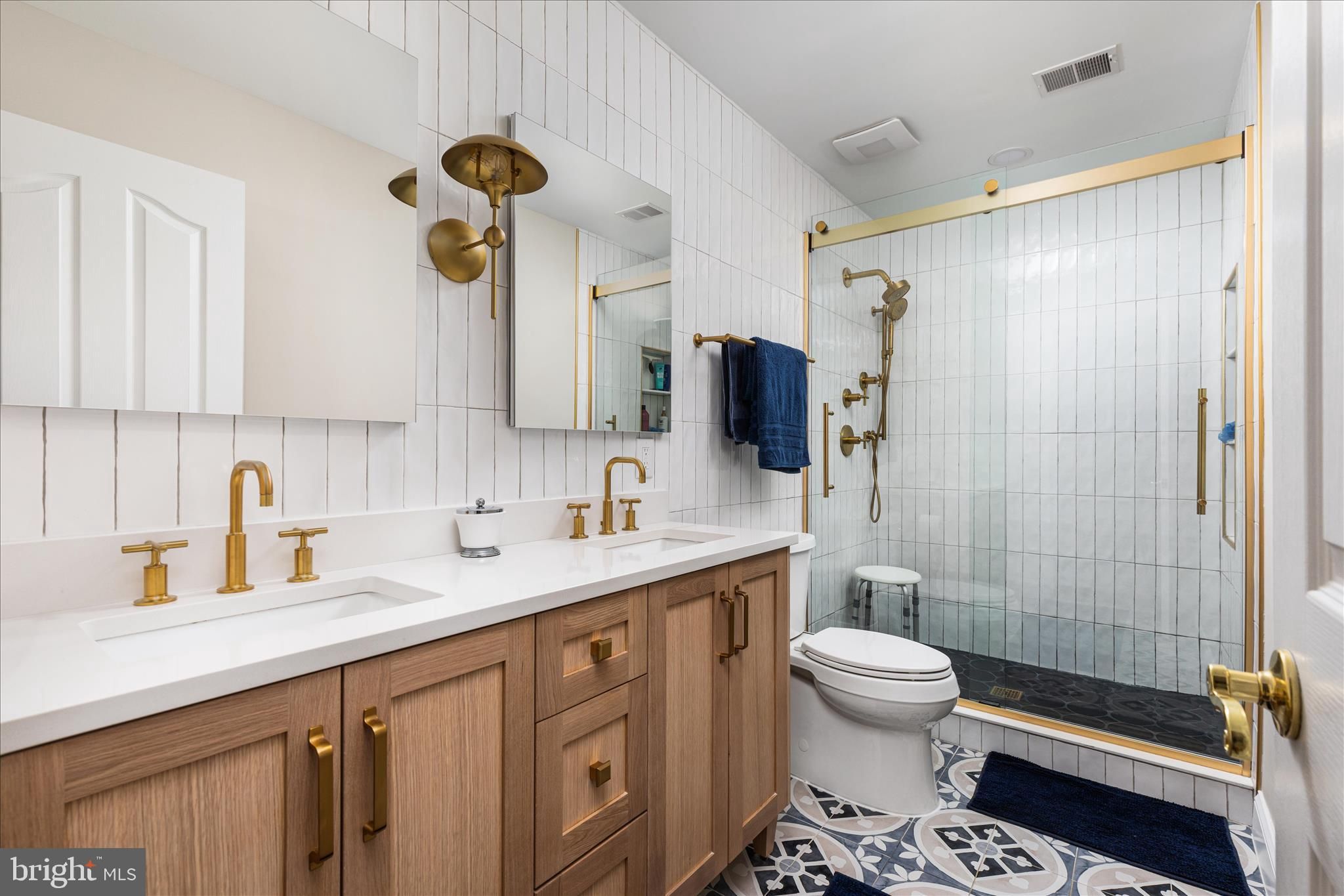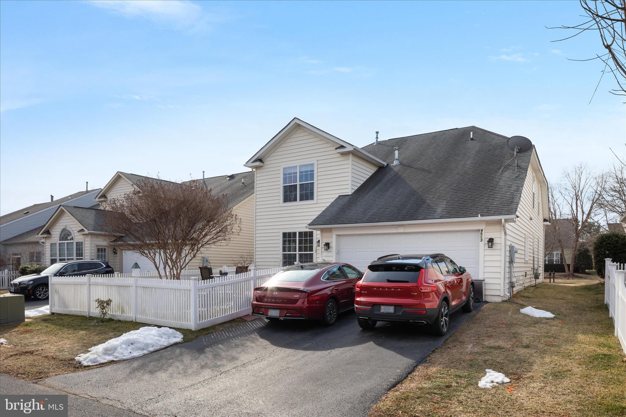 Welcome to this lovely 55+ community. Stunningly updated 4 bedroom home with first floor primary suite and a long list of high end upgrades. Fresh paint throughout, new wide plank engineered hardwoods on the main level, upgraded base and crown molding, and all new LED lighting create a bright, modern feel. The beautifully renovated kitchen features a custom island with seating for six, quartz countertops, full height backsplash, oversized undermount sink, new hardware, and black stainless-steel appliances. The first-floor powder room has been remodeled, and all baths include chair height Kohler toilets. The upper-level full bath shines with a walk-in shower, full height tile, brushed gold Kohler fixtures, and a double white oak vanity. Upstairs offers three spacious bedrooms, upgraded carpet in the office and bedroom 3, and custom closets are located in the primary bedroom downstairs and larger bedroom upstairs. Plantation shutters and custom blinds complete this move in ready home with a polished, designer finish.
