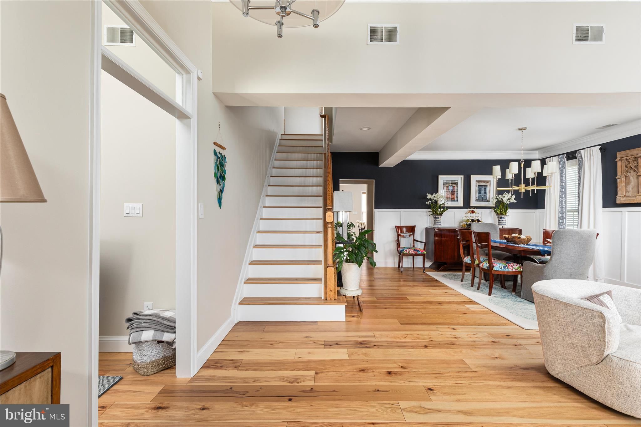- Crown Moldings, Dining Area, Entry Level Bedroom, Floor Plan - Open, Kitchen - Island, Primary Bath(s), Upgraded Countertops, Wood Floors