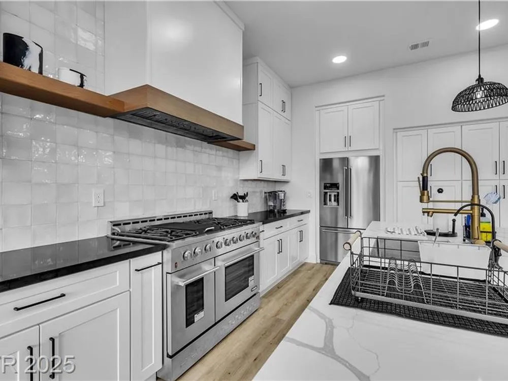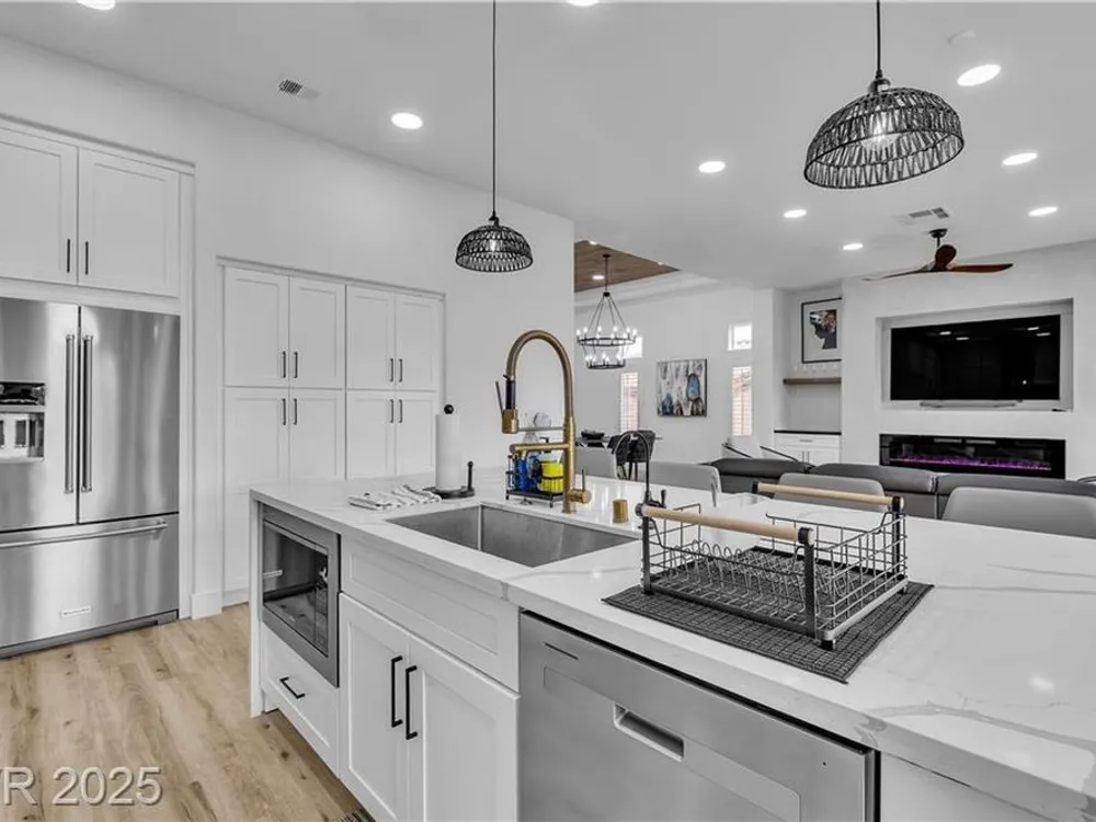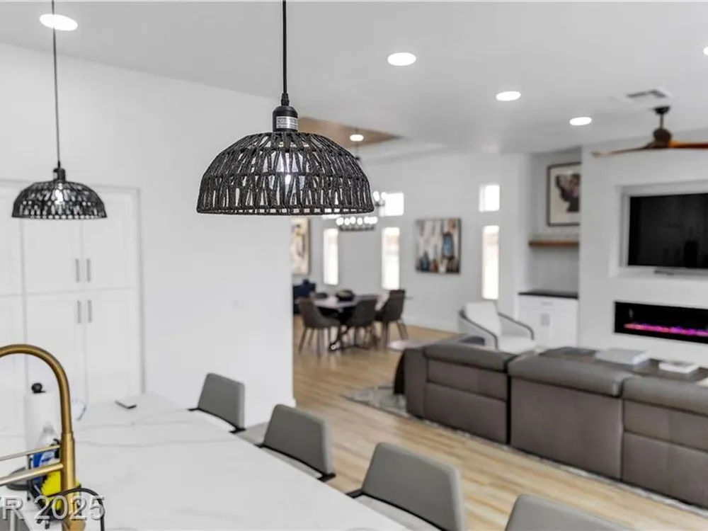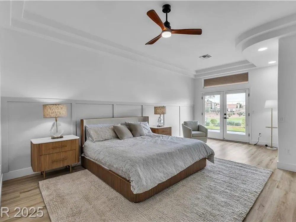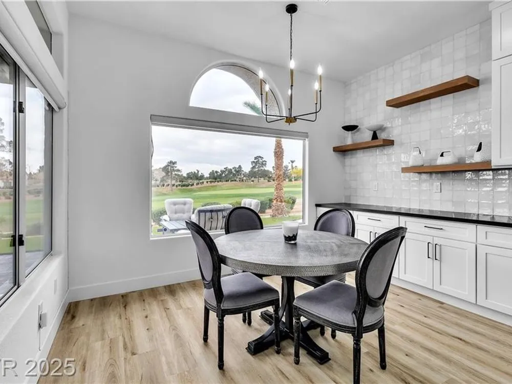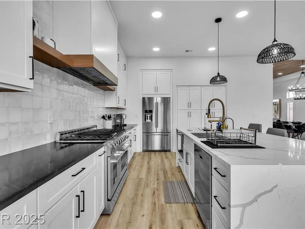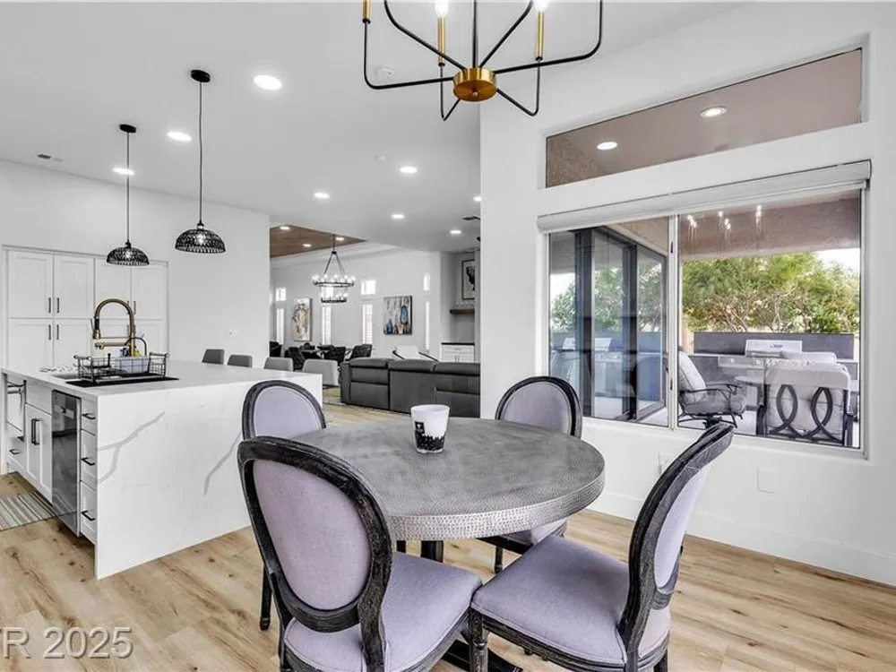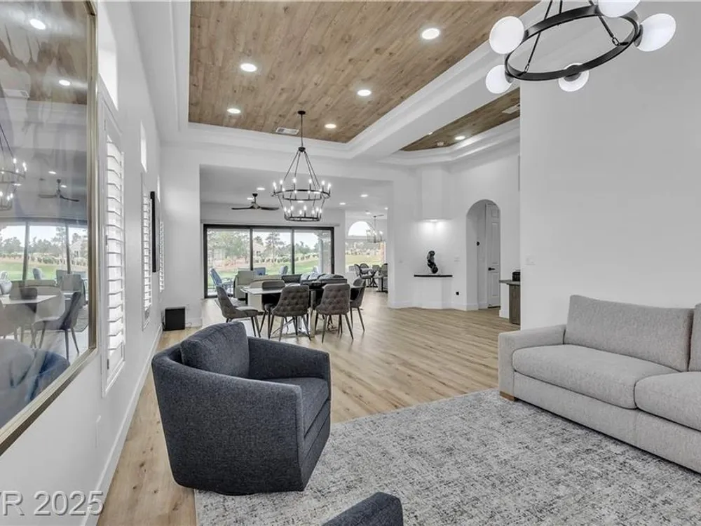 WELCOME to this FULLY RENOVATED, GOLF COURSE STUNNER IN SUN CITY SUMMERLIN! Step inside this 3 bedroom home to enjoy the OPEN CONCEPT, VAULTED CEILINGS LIVING w/ beautiful WOOD-ACCENTED CEILINGS! This home is an entertainer's dream boasting a LARGE LIVING ROOM W/ A CUSTOM ELECTRIC FIREPLACE & MEDIA WALL! The 15-FT GLASS SLIDER DOORS offer TONS OF NATURAL LIGHT as well as incredible GOLF & MOUNTAIN VIEWS! The gourmet kitchen features a 48" RANGE W/CUSTOM HOOD, STAINLESS APPLIANCES, CUSTOM SHAKER CABINETS, a HUGE ISLAND, & SLEEK QUARTZ COUNTERTOPS! The oversized primary suite offers FRENCH DOORS TO A PRIVATE PATIO, AN LED FIREPLACE, SPA-STYLE BATHROOM FEATURING A LUXURIOUS OVERSIZED SHOWER & A LARGE CUSTOM WALK-IN CLOSET! Step into the backyard to discover the COVERED PATIO W/ BUILT-IN BBQ, TREMENDOUS GOLF COURSE VIEWS, & a HEATED POOL! This MOVE-IN RENOVATED 3 CAR GARAGE home has it all! Enjoy the ACTIVE LIFESTYLE that SUN CITY HAS TO OFFER!