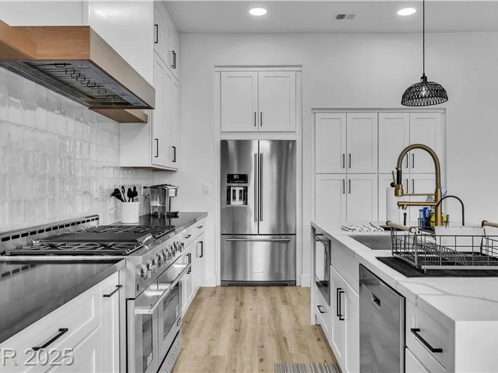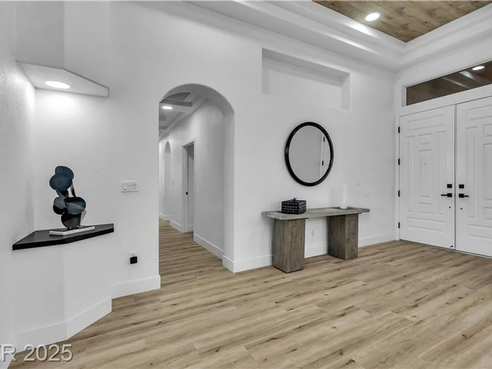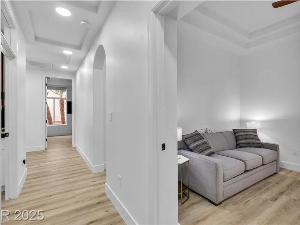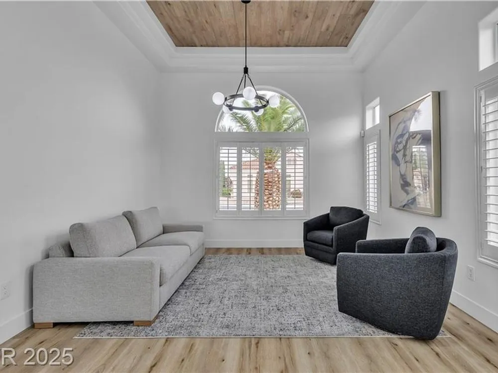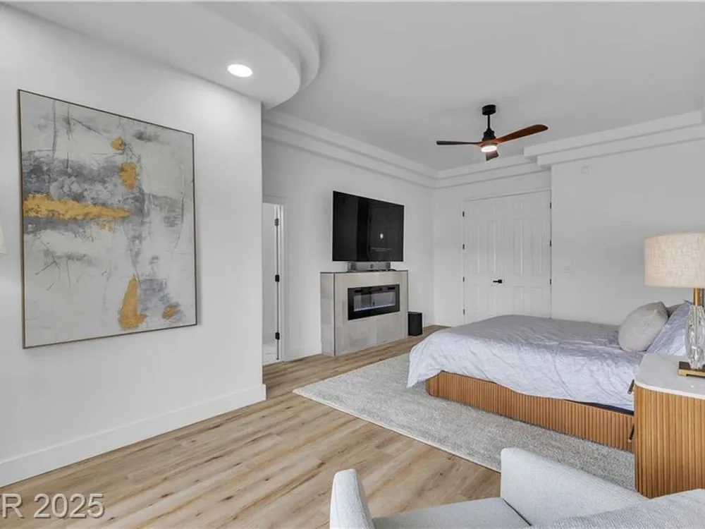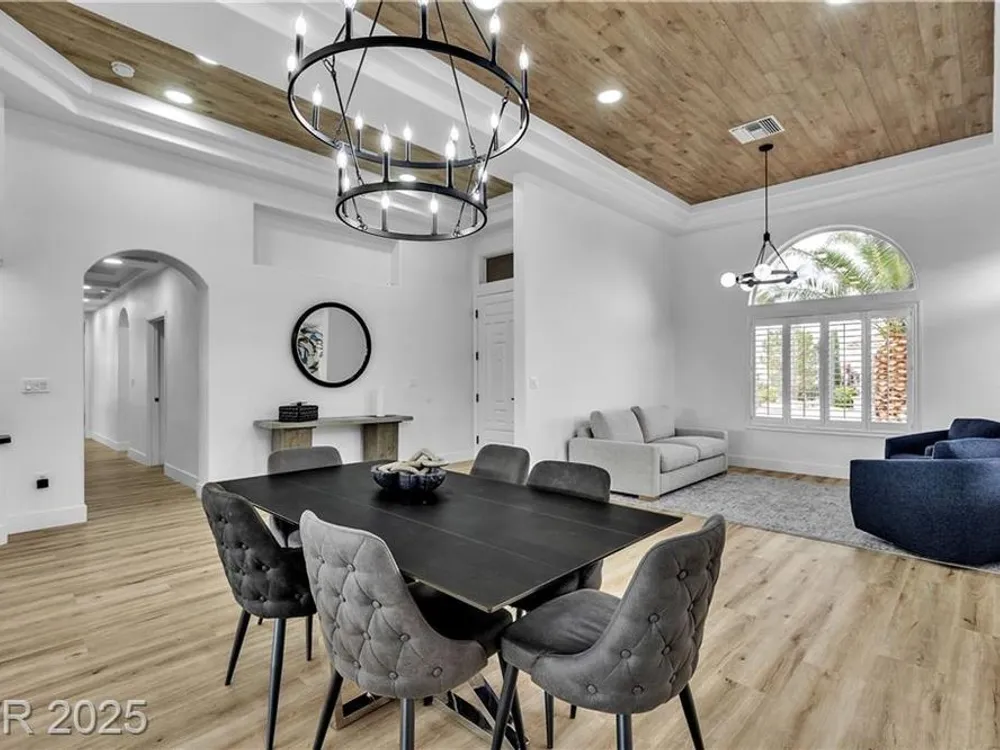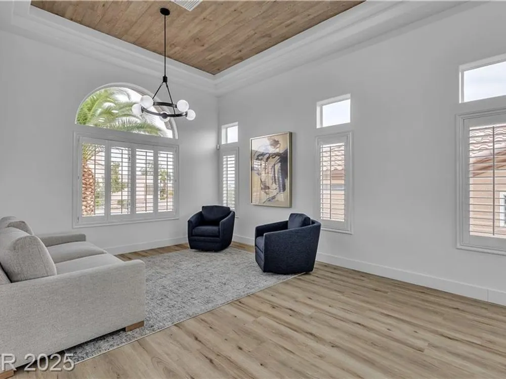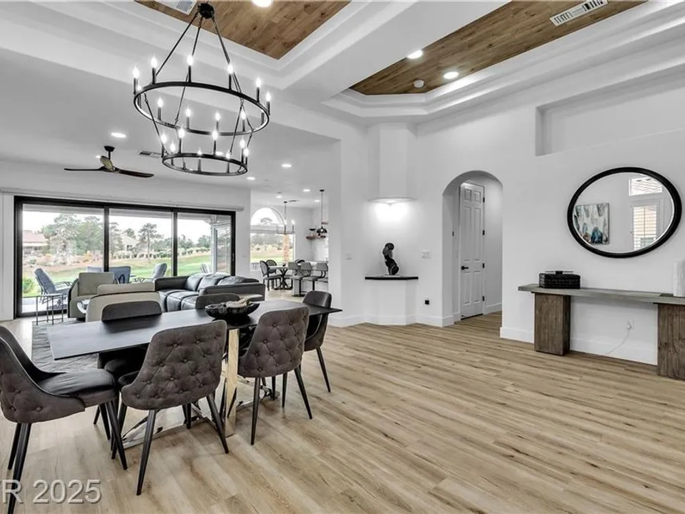 WELCOME to this FULLY RENOVATED, GOLF COURSE STUNNER IN SUN CITY SUMMERLIN! Step inside this 3 bedroom home to enjoy the OPEN CONCEPT, VAULTED CEILINGS LIVING w/ beautiful WOOD-ACCENTED CEILINGS! This home is an entertainer's dream boasting a LARGE LIVING ROOM W/ A CUSTOM ELECTRIC FIREPLACE & MEDIA WALL! The 15-FT GLASS SLIDER DOORS offer TONS OF NATURAL LIGHT as well as incredible GOLF & MOUNTAIN VIEWS! The gourmet kitchen features a 48" RANGE W/CUSTOM HOOD, STAINLESS APPLIANCES, CUSTOM SHAKER CABINETS, a HUGE ISLAND, & SLEEK QUARTZ COUNTERTOPS! The oversized primary suite offers FRENCH DOORS TO A PRIVATE PATIO, AN LED FIREPLACE, SPA-STYLE BATHROOM FEATURING A LUXURIOUS OVERSIZED SHOWER & A LARGE CUSTOM WALK-IN CLOSET! Step into the backyard to discover the COVERED PATIO W/ BUILT-IN BBQ, TREMENDOUS GOLF COURSE VIEWS, & a HEATED POOL! This MOVE-IN RENOVATED 3 CAR GARAGE home has it all! Enjoy the ACTIVE LIFESTYLE that SUN CITY HAS TO OFFER!