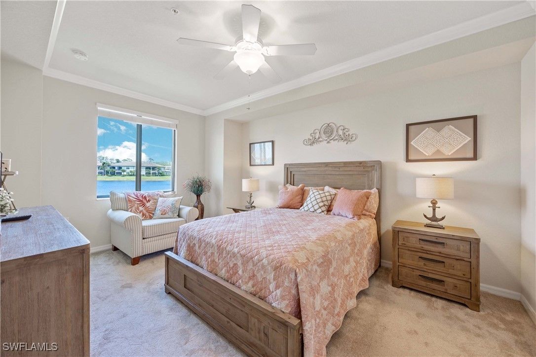 Welcome to this beautifully appointed Bromelia model located in the Avellino subdivision of the sought-after community of Treviso Bay. Offering 2 bedrooms, 2 full bathrooms, and a versatile office/den/3rd bedroom, this residence is being sold turnkey furnished, making it truly move-in ready. The floor plan is designed for both comfort and style, featuring a spacious living and dining area that flows seamlessly to the screened lanai overlooking a tranquil lake. The kitchen boasts modern cabinetry, granite countertops, stainless steel appliances, and a breakfast bar for casual dining. The owner’s suite offers private lake views, walk-in closets, and an en-suite bath with dual vanities and a walk-in shower. The guest bedroom and bath provide ideal accommodations for visitors, while the office/den creates flexibility for work or relaxation. A detached garage provides extra convenience and storage, while the home’s turnkey status allows you to start enjoying the resort-style lifestyle of Treviso Bay immediately. 2 screened-in, well appointed lanais provides a perfect place to enjoy morning coffee or afternoon cocktails. Convenient 1st floor unit provides easy access for bringing in groceries and/or taking pets outside. The Veranda III condo association recently began requiring that all condos replace all plastic water supply valves with metal connections (and all hoses with steel braided lines) by January 31, 2026 as well as encouraging water heater replacement (for units older than 10 years old) as well as semi-annual maintenance of HVAC units. Please see the official documentation in supplements. The Sellers have already replaced all water supplies and replaced the water heater in August 2025!! Treviso Bay is a premier Naples community featuring tennis, pickleball, bocce, fitness center, resort-style pool, spa, dining options, and a vibrant social calendar—all surrounded by lush landscaping and just minutes from downtown Naples and the Gulf beaches. Currently, at the discretion of the TPC Treviso Bay Golf Club Board of Directors, social members enjoy discounted access to the TPC golf course from May-October. Immediately start enjoying all that Treviso Bay and Southwest Florida has to offer!