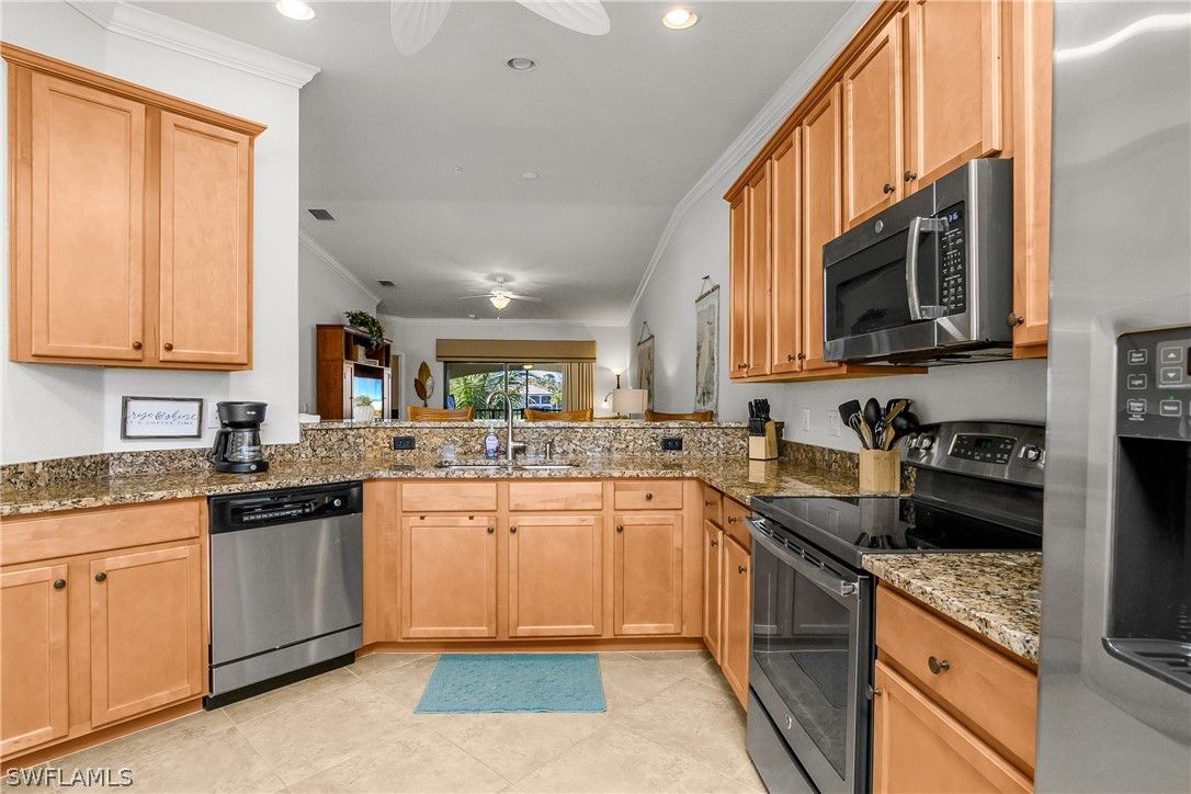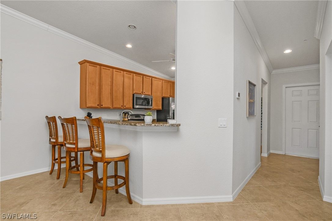 Welcome to 9517 Avellino Way #2221 in Treviso Bay, a beautifully appointed second-floor corner veranda offering one of the most desirable floor plans in this premier Naples, Florida resort-style community. With 2 bedrooms plus a den, 2 full bathrooms, and 1,661 square feet of living space, this turnkey-furnished residence combines spacious design, abundant natural light, and effortless coastal elegance—complete with a social membership. As a corner unit, this home enjoys enhanced privacy and additional windows that fill the space with natural light, creating a bright and airy atmosphere throughout. The expansive great room layout is one of the standout features of this model, offering generous living and dining areas that flow seamlessly into the kitchen—ideal for entertaining guests or enjoying relaxed everyday living in paradise. The kitchen is both functional and inviting, with ample cabinetry, abundant counter space, and an open design that keeps you connected to the main living area and views beyond. The den provides flexible space for a home office, reading nook, media room, or additional guest accommodations. It is currently set up as an extra bedroom, perfect for visiting family and friends. The split-bedroom floor plan ensures privacy, with a spacious primary suite that offers comfort and tranquility, while the guest bedroom and bath create a welcoming retreat for visitors. As a second-floor veranda, this residence features both a front and rear screened lanai, allowing you to enjoy Florida’s indoor-outdoor lifestyle year-round. Whether sipping morning coffee in the front or unwinding in the back with peaceful community views, the dual outdoor living spaces are a defining feature of veranda living in Treviso Bay. Treviso Bay is one of Naples’ most sought-after gated communities, known for its world-class amenities and vibrant lifestyle. With a social membership, residents enjoy access to the stunning Club Rilassare resort-style pool with waterfalls and lap lanes, poolside restaurant and bar, state-of-the-art fitness center, aerobics studio, and full-service spa. The community also offers tennis courts, pickleball courts, bocce ball, scenic walking and biking trails, and a robust social calendar filled with events and activities throughout the year. The main clubhouse offers additional dining options, a social activities room, library, and exceptional views of the TPC golf course (available to social members May - October). Located just minutes from downtown Naples, Fifth Avenue South, Marco Island, and the white-sand beaches of the Gulf of Mexico, 9517 Avellino Way #2221 offers the perfect blend of luxury, convenience, and lifestyle. Whether you are searching for a full-time residence, seasonal retreat, or investment opportunity in Naples real estate, this turnkey corner-unit veranda in Treviso Bay delivers the space, comfort, and resort-style living buyers are looking for.