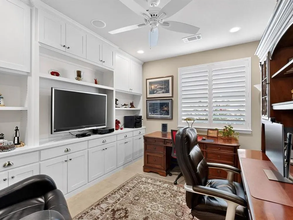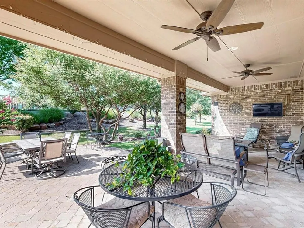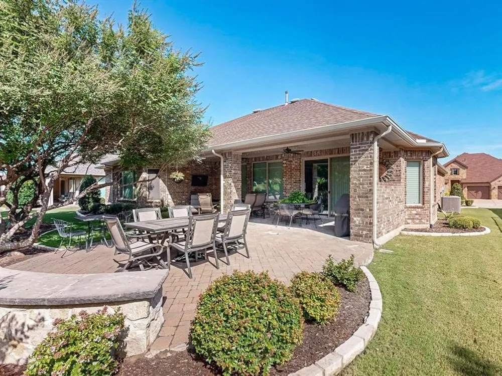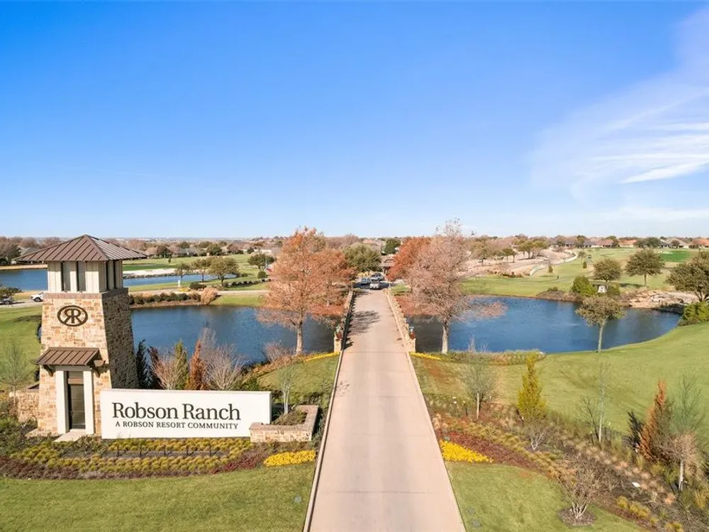PRICE DROP ALERT! This exceptionally well-maintained Robson Ranch home has been reduced by $15,000. Experience comfort & elegance in this beautifully designed home located in the active adult, gated, golf community of Robson Ranch. Offering 2,341 sq. ft. of open concept living, this home features a bright, spacious layout ideal for both everyday living & entertaining. The gourmet kitchen features a CUSTOM, single-level quartz island with granite sink, complemented by granite countertops along the back & side wall, under & upper cabinet lighting, the layout is perfect for entertaining, it flows seamlessly into the dining area & expansive living room featuring a striking custom built-in wall-media unit with an electric fireplace. The primary suite is a retreat with a luxurious, spa-like ensuite. A dedicated office includes a custom built-in, creating a functional & elegant workspace. Additional highlights include a large laundry room with abundant counter space, extensive cabinetry, and a utility sink—perfect for everyday convenience & organization. The home also includes a Halo-LED HVAC filtration system & an oversized three-car garage finished with epoxy floor for added style and functionality. Other upgrades include a radiant barrier, smart garage door & thermostat, updated dishwasher, garbage disposal, microwave, gas cooktop, lighting, & ceiling fans. Step outside to your own private oasis—beautifully landscaped & shaded, the backyard features a covered paver patio, ideal for relaxing or entertaining. Robson Ranch offers more than just a home - make it your lifestyle. Enjoy golf, state-of-the-art fitness center, creative arts building, library, indoor & outdoor adult pools, tennis, pickleball, & softball at the exclusive Field of Dreams. Join RV clubs, play bocce or bunco, enjoy card groups, Texas Toss, clubhouse concerts, or unwind at the on-site restaurant, spa, or salon. Resort-style living awaits in the gated, amenity-rich community of Robson Ranch.-