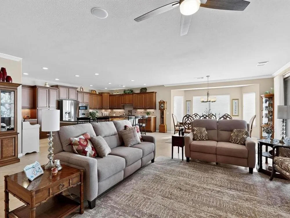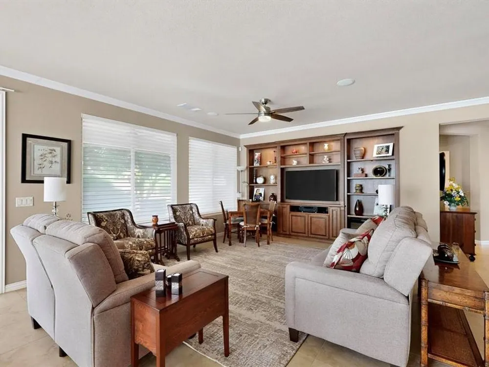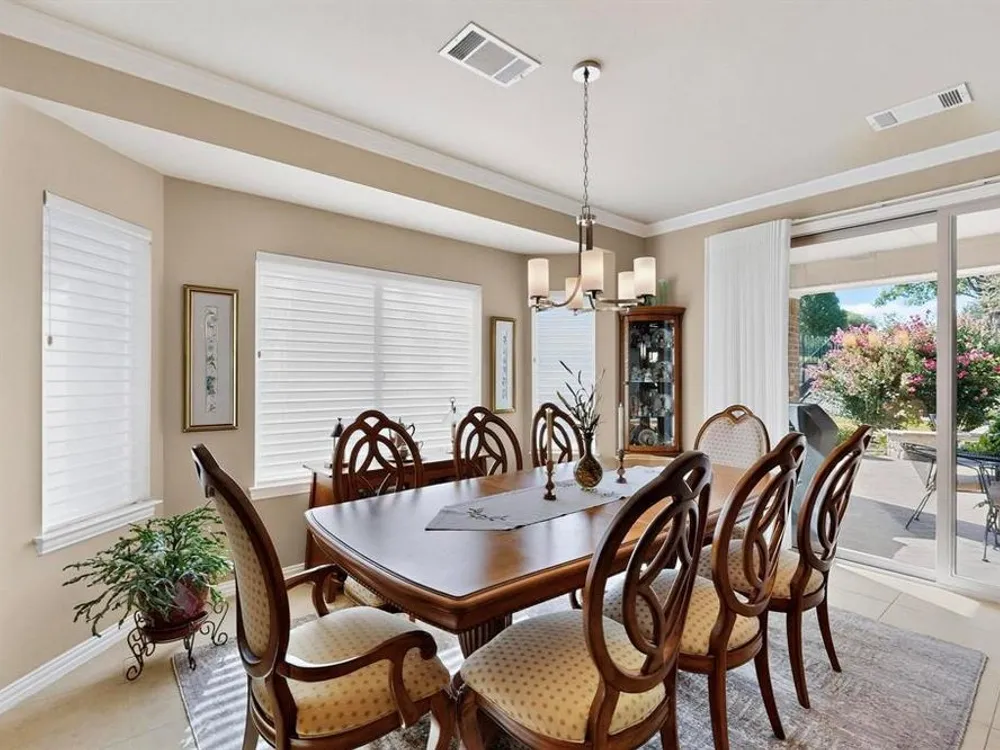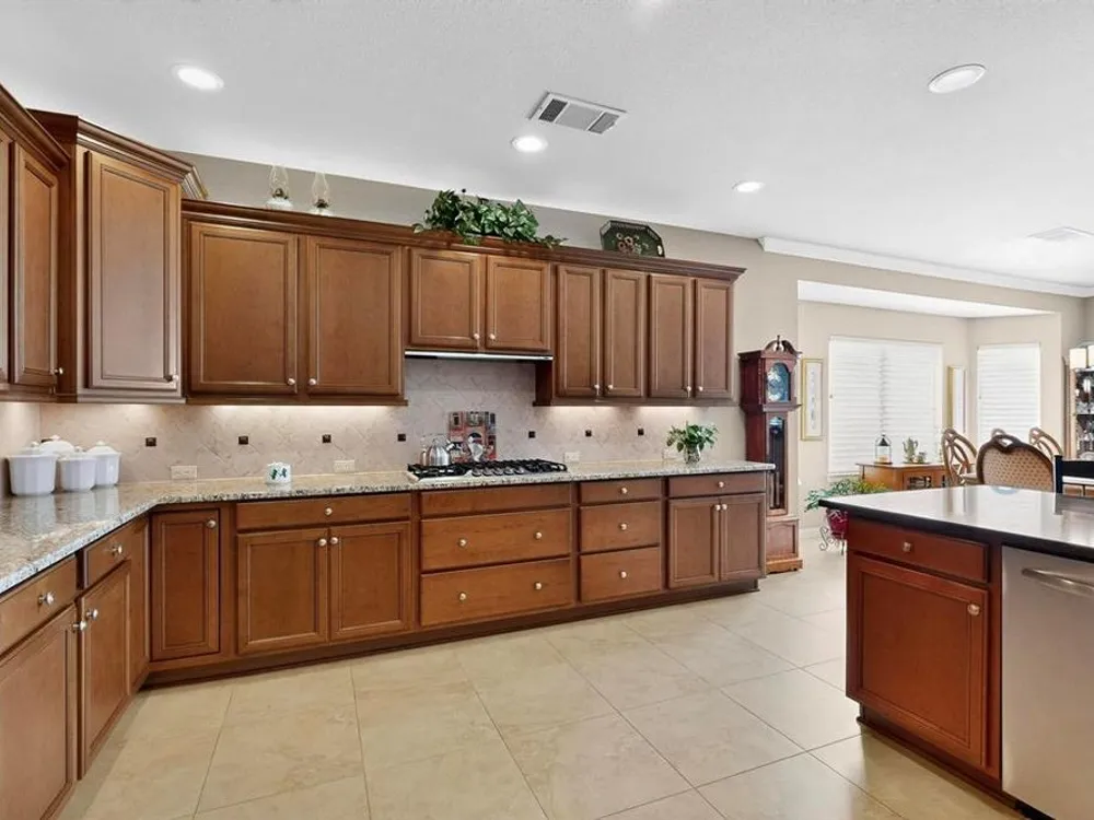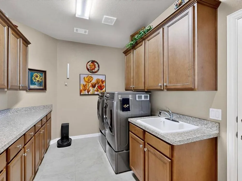 PRICE DROP ALERT! This exceptionally well-maintained Robson Ranch home has been reduced by $15,000. Experience comfort & elegance in this beautifully designed home located in the active adult, gated, golf community of Robson Ranch. Offering 2,341 sq. ft. of open concept living, this home features a bright, spacious layout ideal for both everyday living & entertaining. The gourmet kitchen features a CUSTOM, single-level quartz island with granite sink, complemented by granite countertops along the back & side wall, under & upper cabinet lighting, the layout is perfect for entertaining, it flows seamlessly into the dining area & expansive living room featuring a striking custom built-in wall-media unit with an electric fireplace. The primary suite is a retreat with a luxurious, spa-like ensuite. A dedicated office includes a custom built-in, creating a functional & elegant workspace. Additional highlights include a large laundry room with abundant counter space, extensive cabinetry, and a utility sink—perfect for everyday convenience & organization. The home also includes a Halo-LED HVAC filtration system & an oversized three-car garage finished with epoxy floor for added style and functionality. Other upgrades include a radiant barrier, smart garage door & thermostat, updated dishwasher, garbage disposal, microwave, gas cooktop, lighting, & ceiling fans. Step outside to your own private oasis—beautifully landscaped & shaded, the backyard features a covered paver patio, ideal for relaxing or entertaining. Robson Ranch offers more than just a home - make it your lifestyle. Enjoy golf, state-of-the-art fitness center, creative arts building, library, indoor & outdoor adult pools, tennis, pickleball, & softball at the exclusive Field of Dreams. Join RV clubs, play bocce or bunco, enjoy card groups, Texas Toss, clubhouse concerts, or unwind at the on-site restaurant, spa, or salon. Resort-style living awaits in the gated, amenity-rich community of Robson Ranch.-