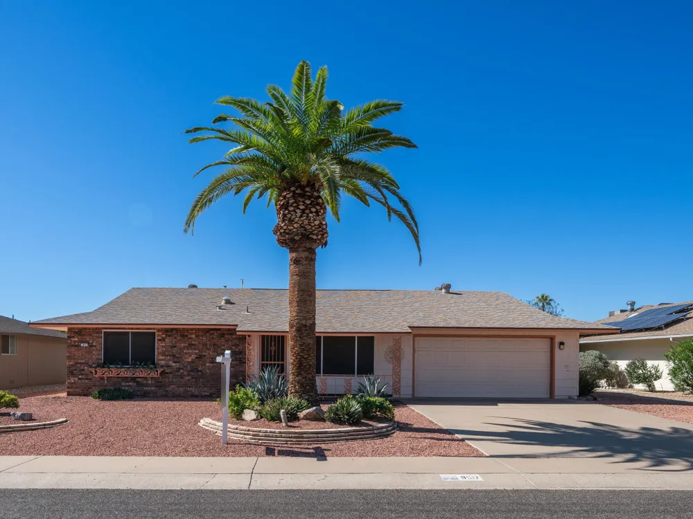 Move-in ready and beautifully updated! This immaculate home boasts a bright, open floor plan filled with natural light. The remodeled kitchen features quartz counters, stainless steel appliances, sleek cabinetry, and breakfast bar. A spacious laundry/hobby room offers room for projects and storage. Tile flooring flows through the main living areas with new carpet in the bedrooms. Enjoy peace of mind with a 2019 roof and 2022 AC. The private backyard features mature landscaping and a large covered patio. Plus, enjoy all the incredible amenities Sun City has to offer!