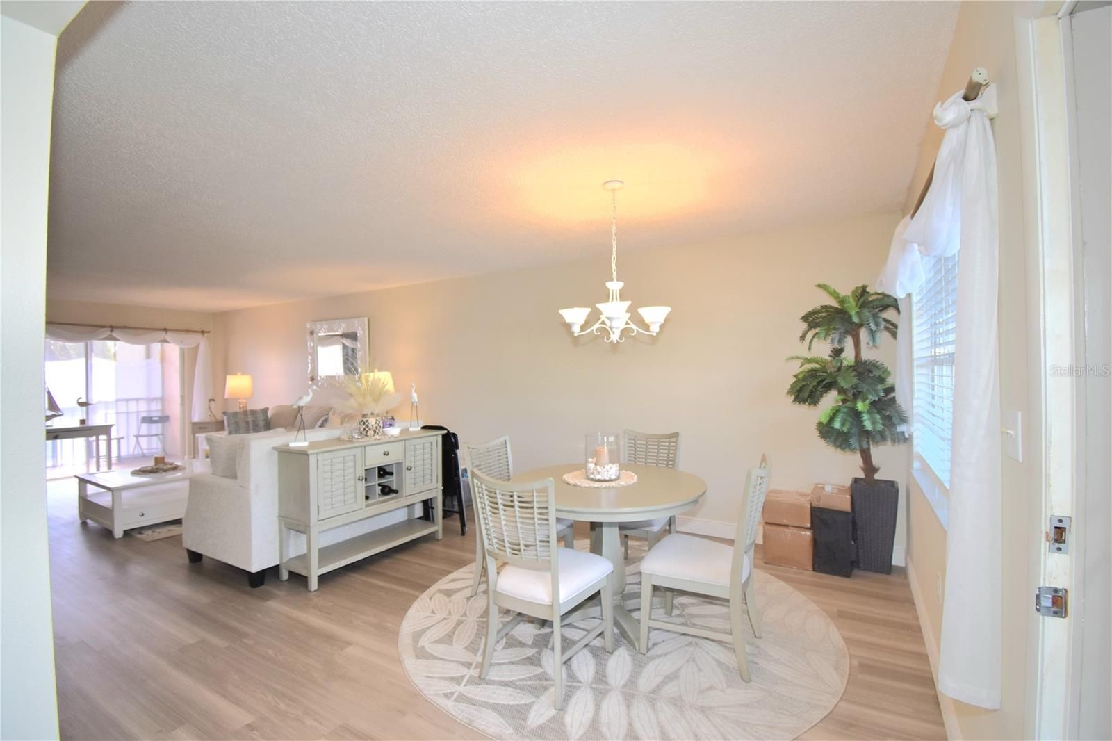 - Living/Dining Room, Stone Counters, Window Treatments