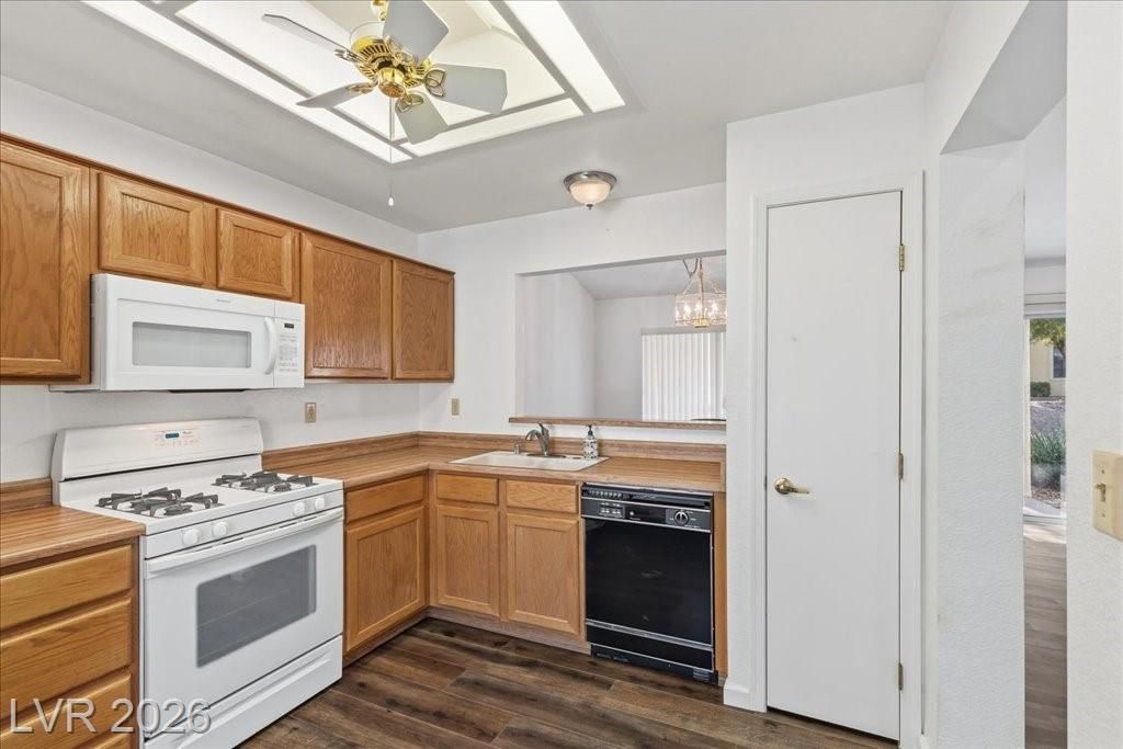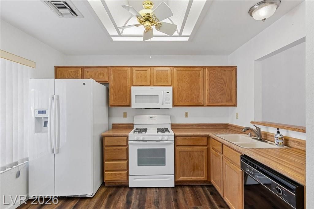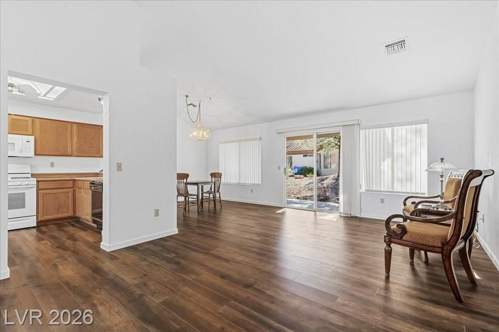 Move in ready! Heart of Sun City Summerlin. All appliances and water softner convey. Lovely 2 brm, 2 bth, 2 car garage w/1179 sqft. Vaulted ceilings & luxury vinyl flooring.