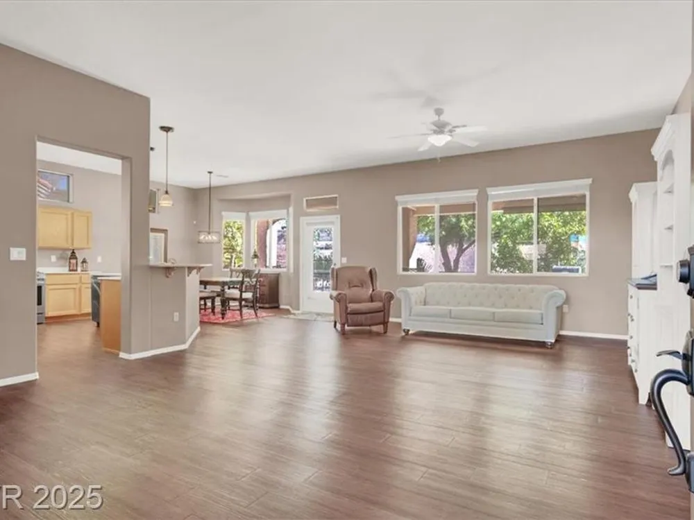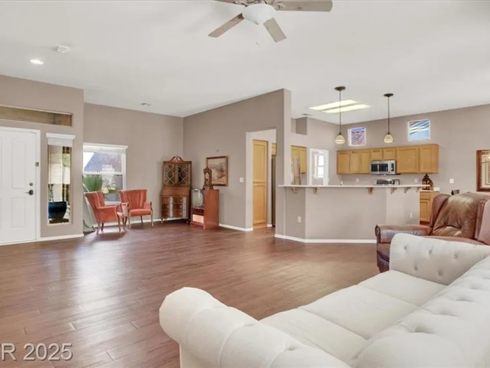 Discover the perfect blend of comfort & style in one of the most popular floor plans at Sun City Summerlin. This beautifully upgraded Royale Model is designed with your retirement lifestyle in mind. Enjoy a spacious 2-bedroom plus den/sitting area layout featuring an open floorplan and plenty of natural light. Every detail has been carefully considered—from durable luxury vinyl plank flooring, stainless steel appliances and new water heater. You'll love the contemporary light fixtures, ceiling fan, & soaring 10-ft ceilings that create an airy, inviting atmosphere. Step outside onto your covered patio & relax in your sprawling 1/2 acre corner lot perfect for leisurely afternoons or entertaining friends. Experience a vibrant community lifestyle with abundant amenities & activities in this fabulous age-restricted neighborhood. Your new home awaits!