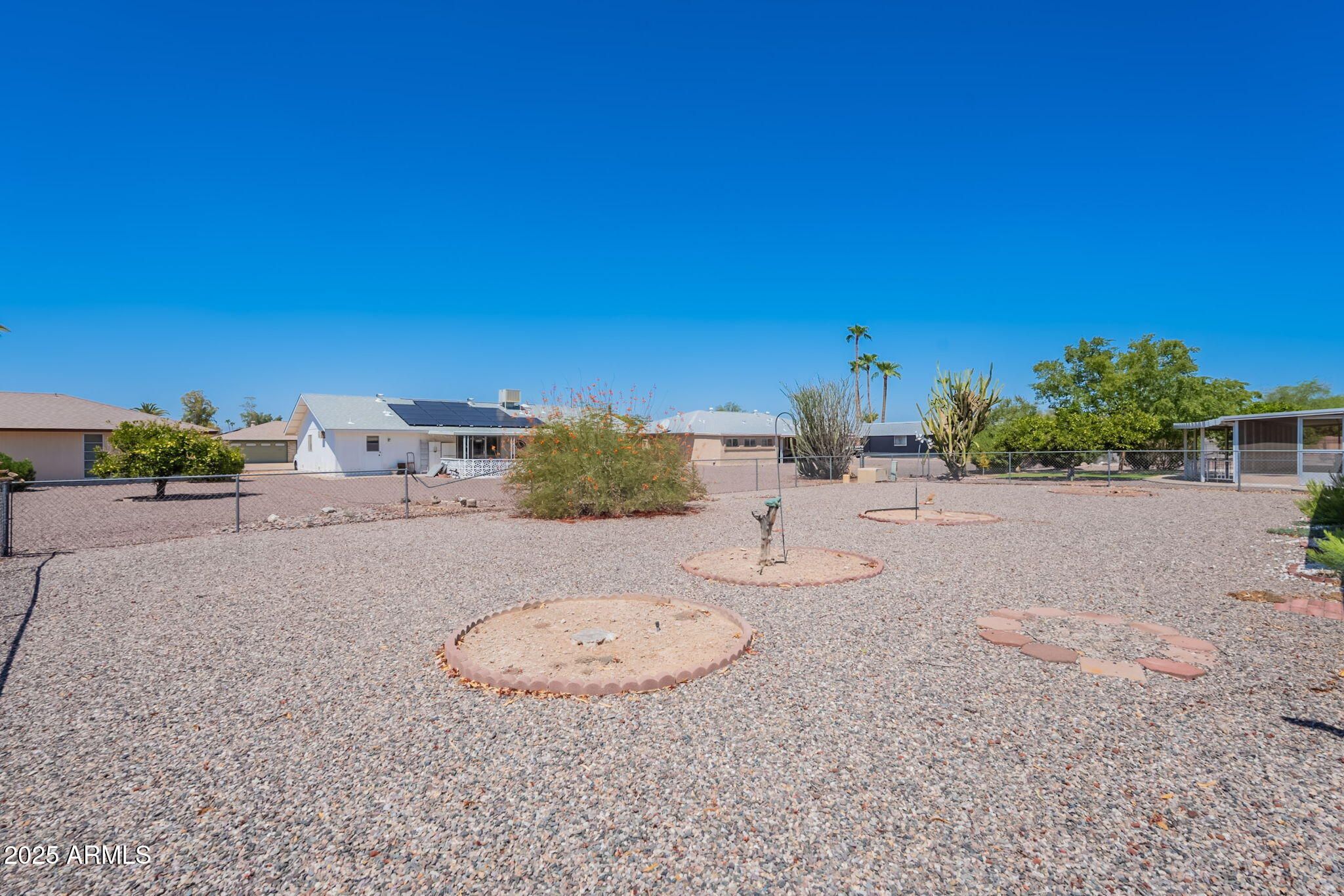 Welcome to this spacious, beautifully maintained home in one of Sun City's most coveted neighborhoods. This 3 bedroom, recently upgraded 2 bathroom tiled showers, and upgraded kitchen cabinets marble counters tops, backsplash, and new dishwasher. This Home features a large Arizona Sunroom, fully included in the square footage perfect for relaxing or entertaining year-round. The primary suite has direct access to the backyard patio which steps outside to a spacious gated backyard. The oversized laundry room provides ample storage, and the garage offers even more built-in cabinetry to keep everything organized. Home includes a solar lease that significantly reduces energy costs and is easy to transfer. Just minutes away from all the Rec centers, golf, swimming, bowling and tons of shopping.