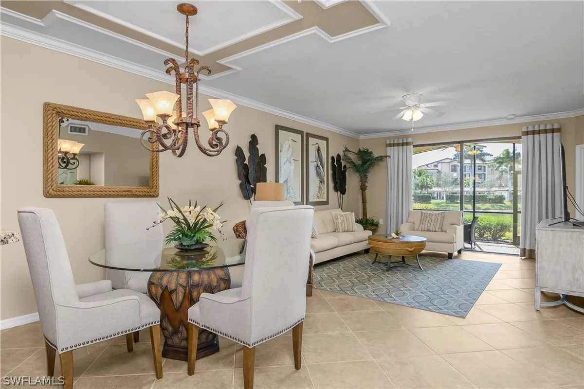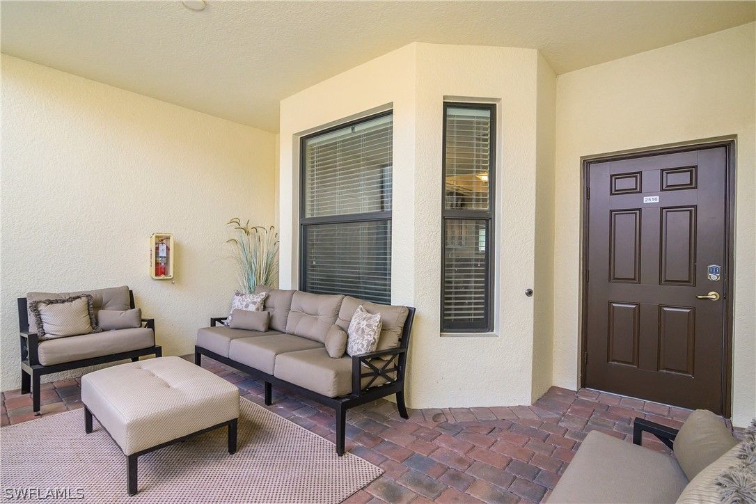 Welcome to 9528 Avellino Way #2516 in Treviso Bay, a beautifully maintained first-floor corner veranda offering 2 bedrooms plus a den, 2 full bathrooms, and 1,661 square feet of spacious living in one of Naples, Florida’s most desirable resort-style communities. Offered turnkey with a social membership, this residence presents an exceptional opportunity to step right into the Southwest Florida lifestyle. As a corner unit, this home enjoys added privacy and extra windows that bring in abundant natural light, creating a bright and open feel throughout. The expansive great room floor plan is one of the most sought-after layouts in the community, providing generous living and dining spaces that flow effortlessly into the kitchen—perfect for entertaining guests or simply enjoying relaxed everyday living. The kitchen offers ample cabinetry, plentiful counter space, and a layout designed to keep you connected to the heart of the home. The adjacent dining and living areas open seamlessly to the screened lanai, allowing you to embrace Florida’s indoor-outdoor lifestyle year-round. As a first-floor veranda, you’ll appreciate the convenience of easy access and the added benefit of two screened outdoor living spaces—a welcoming front lanai and a spacious rear lanai ideal for morning coffee, evening cocktails, or quiet moments surrounded by lush community landscaping. The split-bedroom design provides privacy for both owners and guests. The primary suite is generously sized and features a private en-suite bath, while the guest bedroom and full bath create a comfortable retreat for visitors. The den offers versatile space that can serve as a home office, media room, reading nook, or additional guest area—making this floor plan as functional as it is inviting. Treviso Bay is known for its vibrant, amenity-rich lifestyle. With a social membership, residents enjoy access to the stunning Club Rilassare resort-style pool with waterfalls and lap lanes, poolside restaurant and bar, state-of-the-art fitness center, aerobics room, and full-service spa. The community also offers tennis courts, pickleball courts, bocce ball, scenic walking and biking trails, and an active social calendar filled with events and gatherings throughout the year. The beautifully maintained grounds and gated entrance enhance both security and curb appeal. Located just minutes from downtown Naples, Fifth Avenue South, Marco Island, world-class dining, shopping, and the white-sand beaches of the Gulf of Mexico, 9528 Avellino Way #2516 delivers the ideal blend of space, comfort, and resort-style living. Whether you are searching for a full-time residence, seasonal getaway, or investment opportunity in Naples real estate, this turnkey first-floor corner veranda in Treviso Bay is a standout choice.