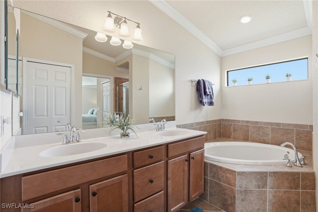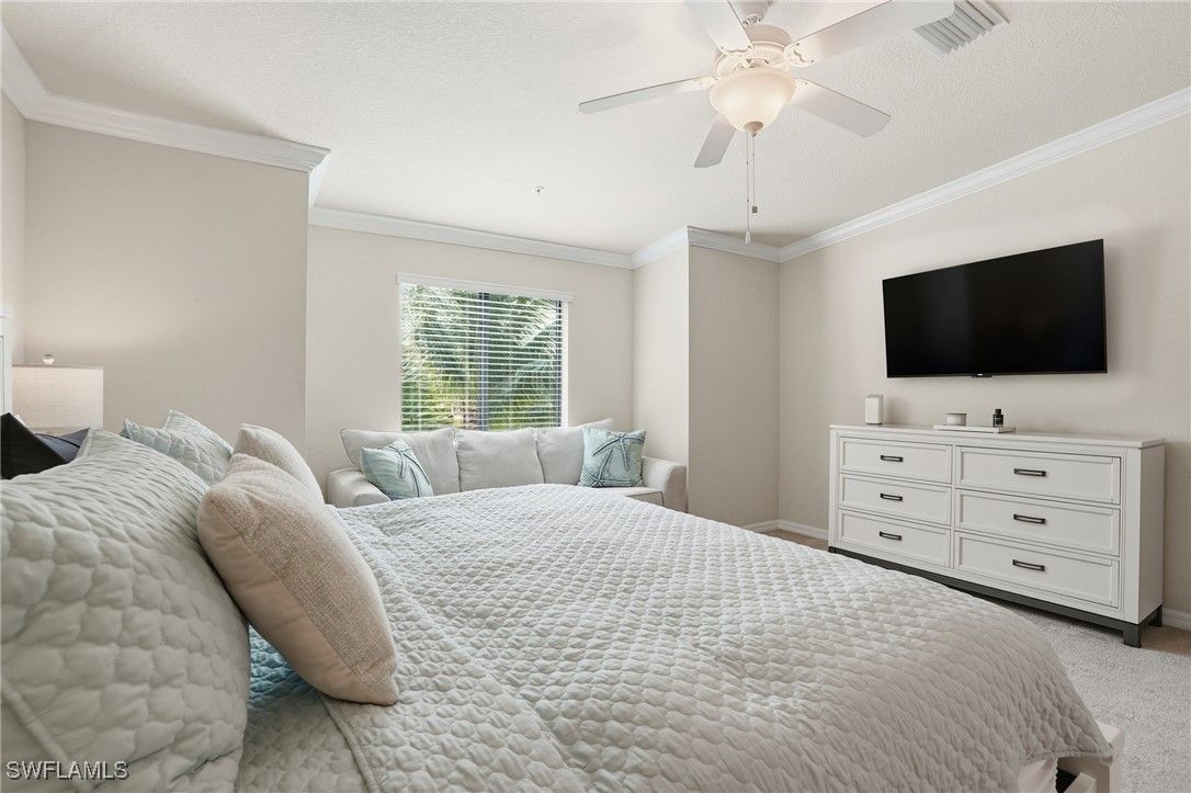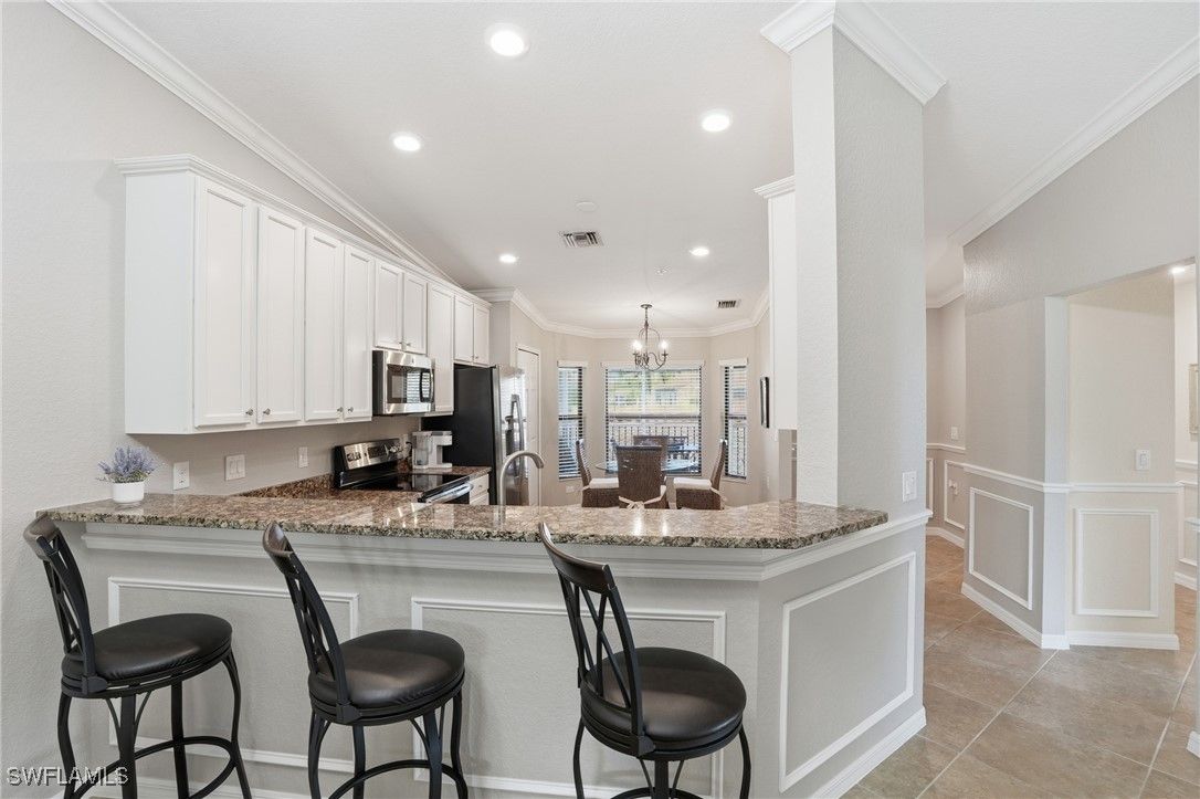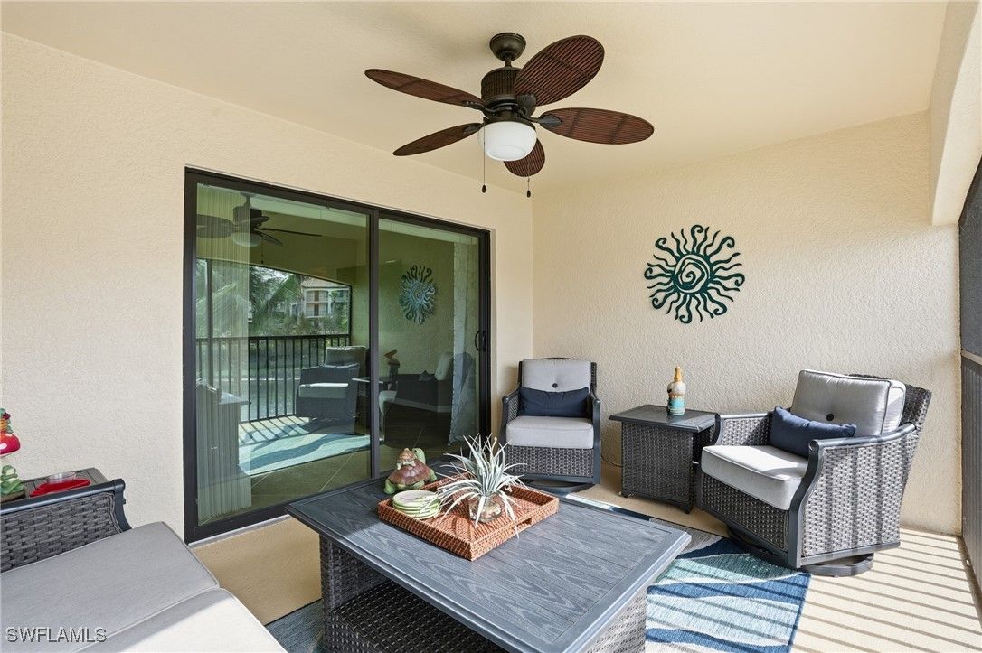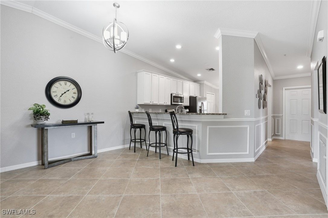 Enjoy resort-style living in the highly sought-after community of Treviso Bay. This light-filled 2-bedroom plus den end unit offers beautiful lake views and includes a one-car detached garage. Interior features include white cabinetry, crown and decorative molding, impact windows and sliders, wine cooler, tile and carpet flooring, AC one year old, and a flexible den ideal for a home office or guest space. Designed for indoor-outdoor living, the home offers two lanais—one at the front and one at the rear—perfect for enjoying morning coffee with sunrise views or relaxing in the evening while taking in peaceful sunsets. Treviso Bay is known for its exceptional amenities, including a resort-style pool with poolside bar and restaurant, a full-service fitness center with attendant and group fitness classes, an active pickleball program, tennis courts with pro shop, and a full-service spa. The elegant clubhouse features fine dining options and a variety of member-themed social events. Residents also enjoy the new Flagship Bar overlooking the stunning TPC Treviso Bay golf course. Golf membership is not included with this condominium; however, off-season golf is available from May through October for a nominal fee. Surrounded by preserves, lakes, and the Rookery Preserve, the community offers miles of scenic walking and biking paths, creating a serene and nature-filled setting. Ideally located just five miles from Naples’ pristine beaches, with convenient access to the shopping, dining, and entertainment of 5th Avenue South and 3rd Street South, this home offers the perfect blend of luxury, lifestyle, and location.