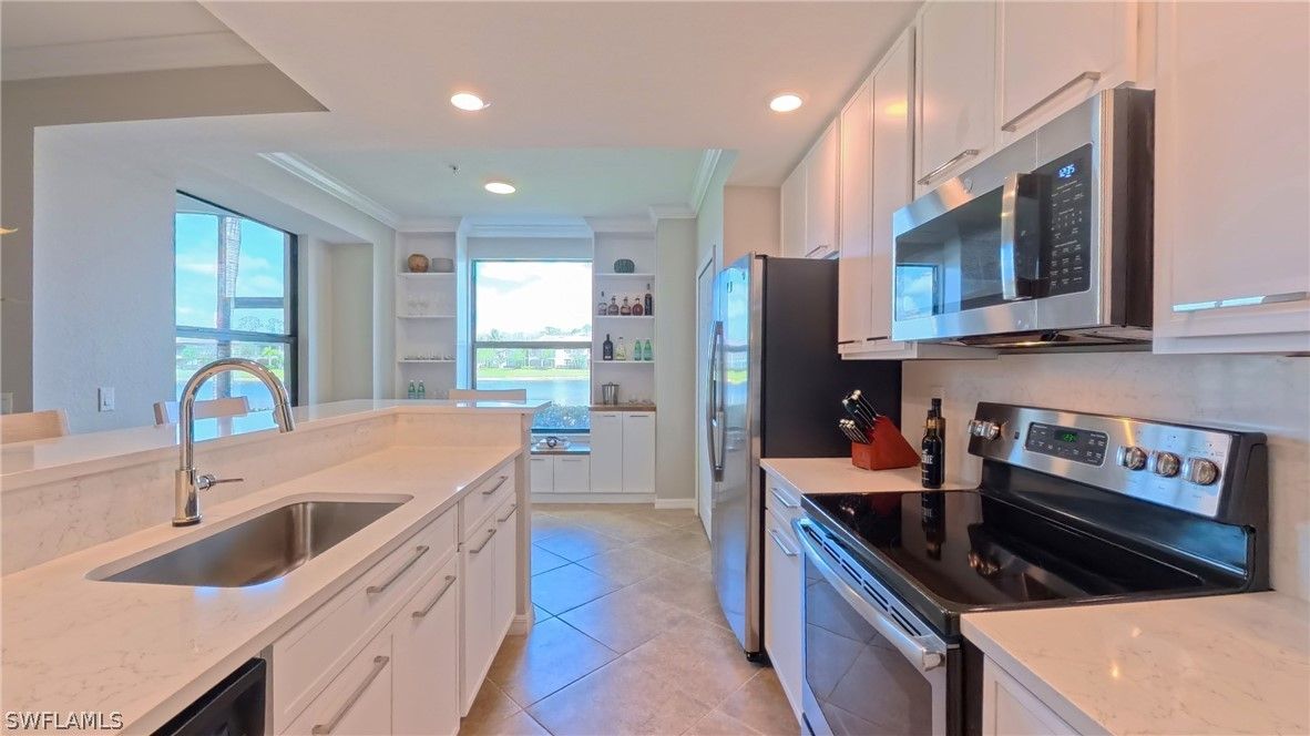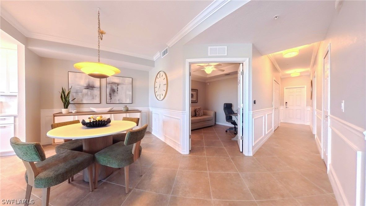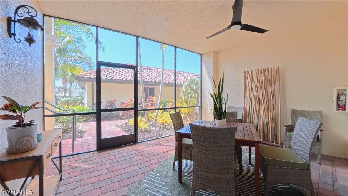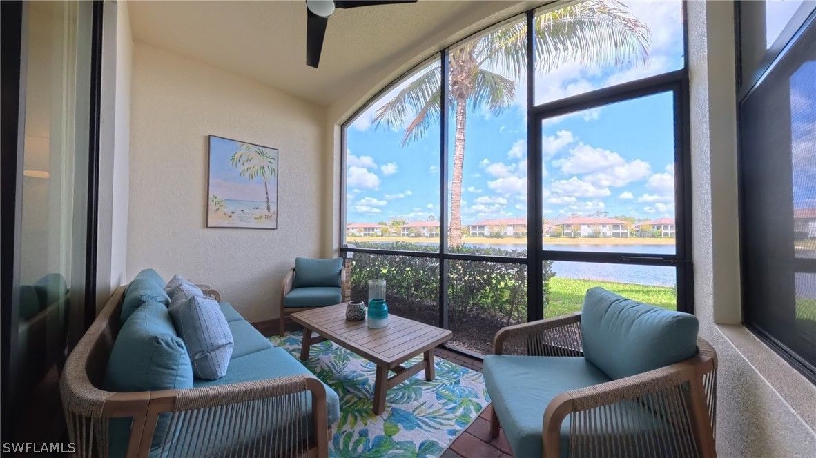 Welcome to paradise in Treviso Bay! The time is NOW to LIVE YOUR DREAM in Naples. This beautifully renovated first-floor veranda on Avellino Way is offered turnkey & furnished, presenting an exceptional opportunity to enjoy effortless Florida living in one of Naples’ most sought-after gated communities. Spanning 1,454 square feet of thoughtfully designed living space, this residence features 2 bedrooms + den, 2 full bathrooms, and a 1-car detached garage. The interior showcases elegant upgrades throughout, including warm designer paint tones, timeless wainscoting with chair rail detailing, crown molding, and stylish finishes that create a welcoming and sophisticated atmosphere. The white, bright kitchen is both stylish and functional, featuring custom cabinetry and shelving designed by Stylehaus Studio, complete with soft-close cabinets for a refined, high-end touch. Enjoy tranquil lake views from the kitchen and cozy breakfast nook, the perfect spot to start your day with coffee or relax with a good book. The spacious living room flows seamlessly to the screened-in lanai, where expansive lake views and abundant natural light create a peaceful indoor-outdoor living experience. The versatile den features a new tray ceiling and flexible space with a pull out sofa and office setup, making it ideal as a home office and third sleeping area for guests. As a social membership property, residents enjoy access to the incredible resort-style amenities at Treviso Bay. The spectacular La Brezza amenity center features a large resort pool, hot tub, kiddie pool, outdoor restaurant and bar, fitness center, aerobics room, full-service spa, three bocce courts, eight tennis courts plus a training court, and a half-court basketball court. The community also offers eight pickleball courts and five additional satellite pools with grilling areas. The main clubhouse hosts a beautiful restaurant and bar, new outdoor screened bar area, large event room, private dining room, activities room, library, and pro shop. Social members also enjoy the opportunity to play the **private TPC Treviso Bay golf course May through October each year. Ideally located, Treviso Bay provides convenient access to the serene beauty of Naples Beaches as well as fine dining and luxury shopping at Fifth Avenue South, Mercato, Waterside Shops, & The Village Shops on Venetian Bay.