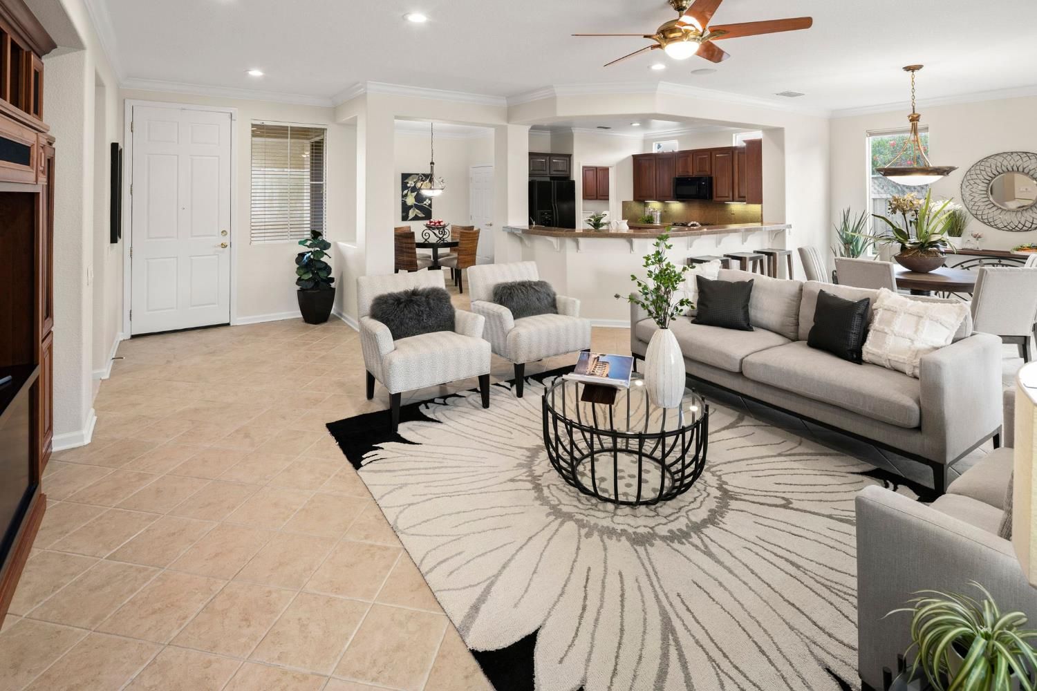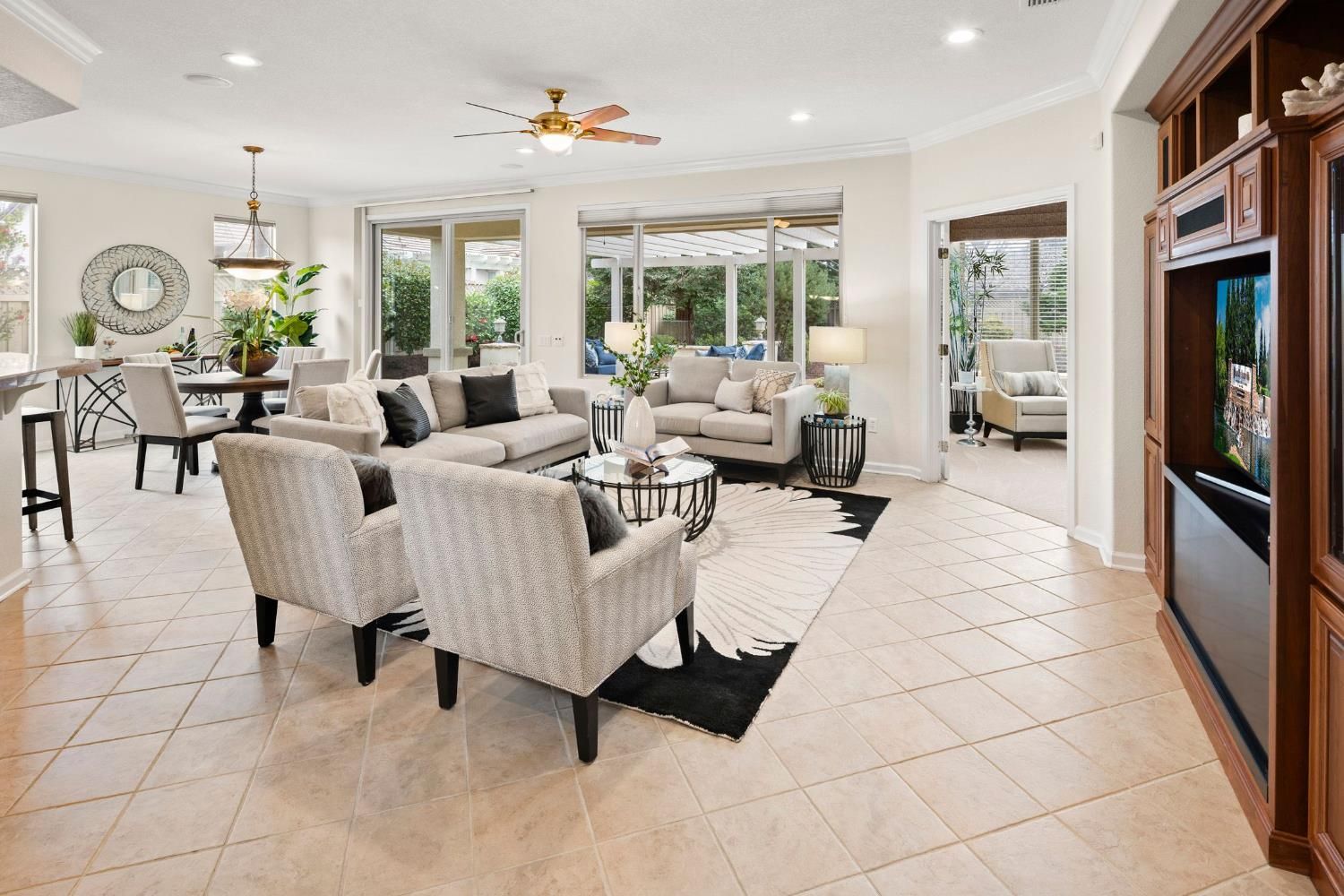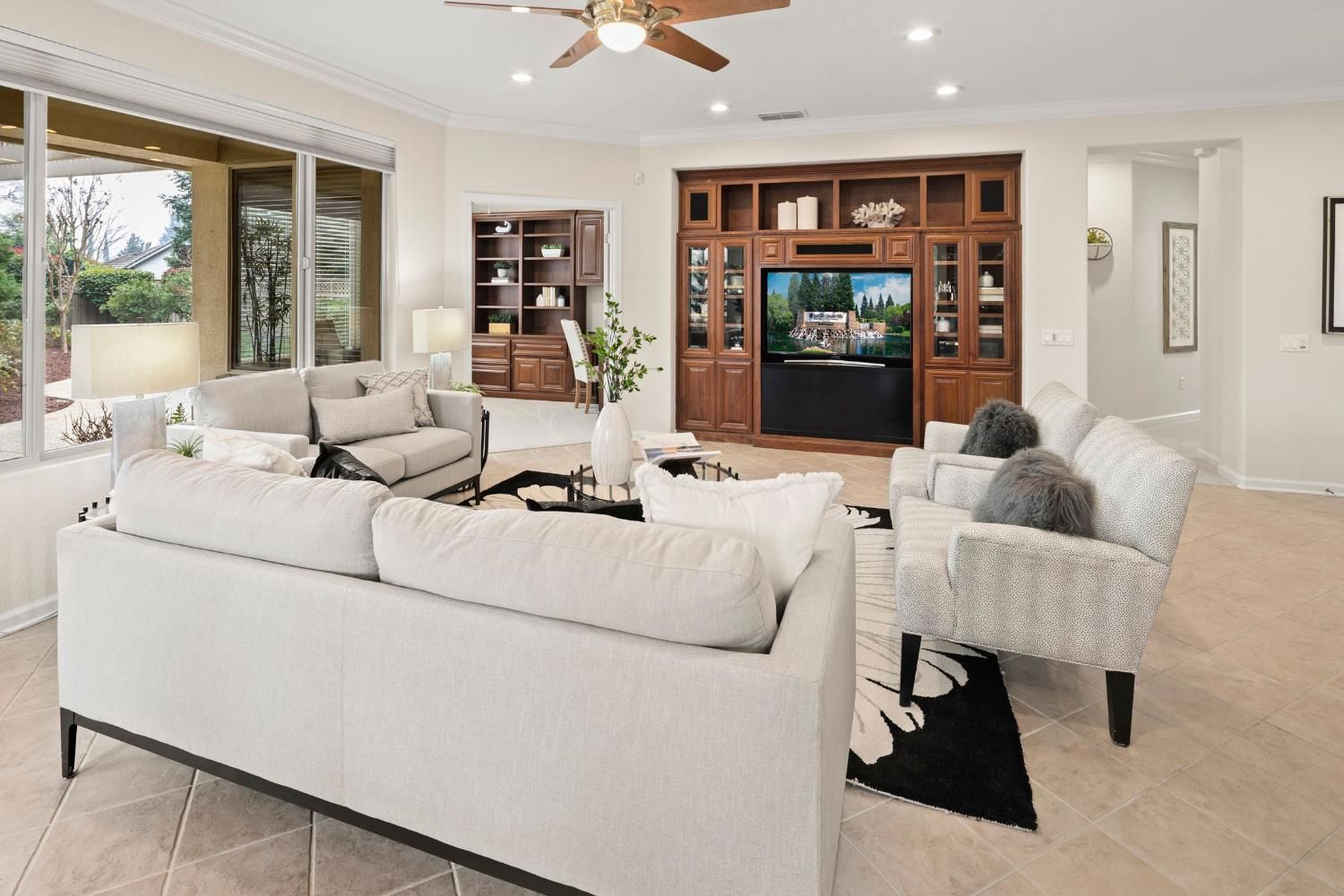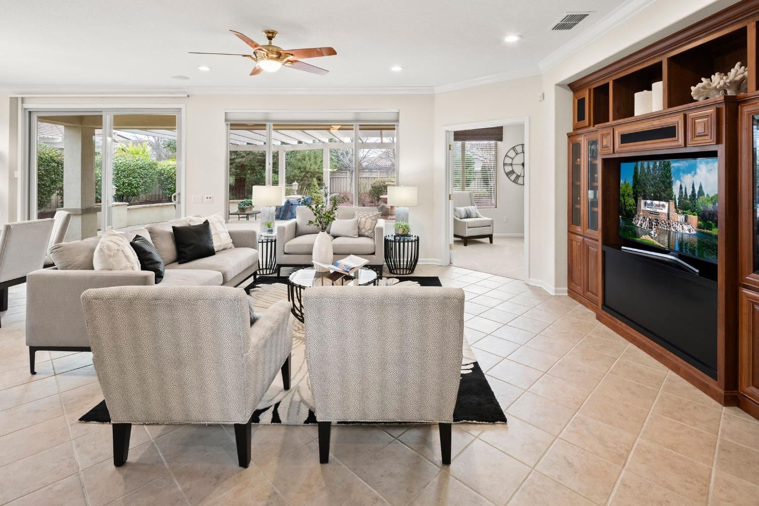 Look no furtherthis stunning Tahoe model is ready to welcome its next owner. Situated on a nearly 10,000-square-foot lot, this home features a desirable three-car garage and has been thoughtfully updated with new interior paint and plush new carpeting throughout. The inviting great room is filled with natural light from numerous windows and showcases a custom, made-to-order entertainment center along with recessed lighting, creating a warm and comfortable space for everyday living or entertaining. The chef's kitchen is both functional and stylish, offering granite countertops, a built-in cooktop, ample cabinetry, a pantry, and a cozy breakfast nook. The spacious master suite includes a builder-upgraded boxed window that adds extra square footage and natural light. The ensuite bathroom features dual sinks, a separate shower stall, and a large walk-in closet with organizers. Step outside to enjoy an oversized, park-like backyard complete with mature landscaping and decorative hardscapeperfect for relaxing, gardening, or hosting gatherings. For peace of mind, the homeowner has already replaced the Kitec plumbing. As an added plus, the home comes with fully owned solar, providing long-term energy savings. With its thoughtful upgrades, generous lot size, and move-in-ready condition, this home truly has it all. Don't miss this exceptional opportunity.