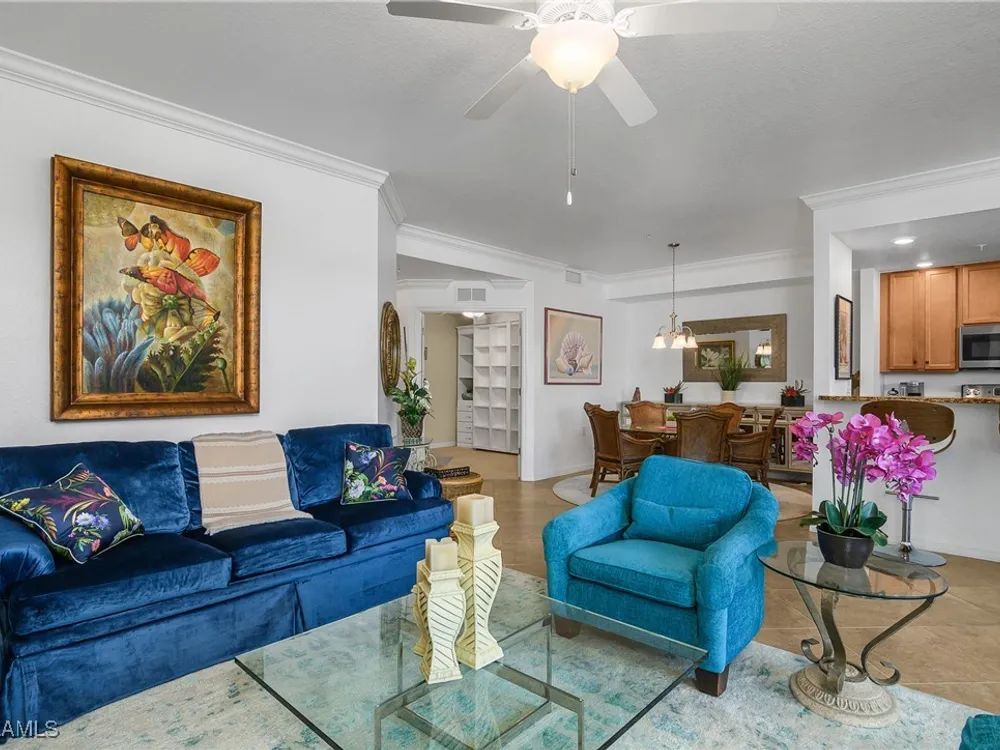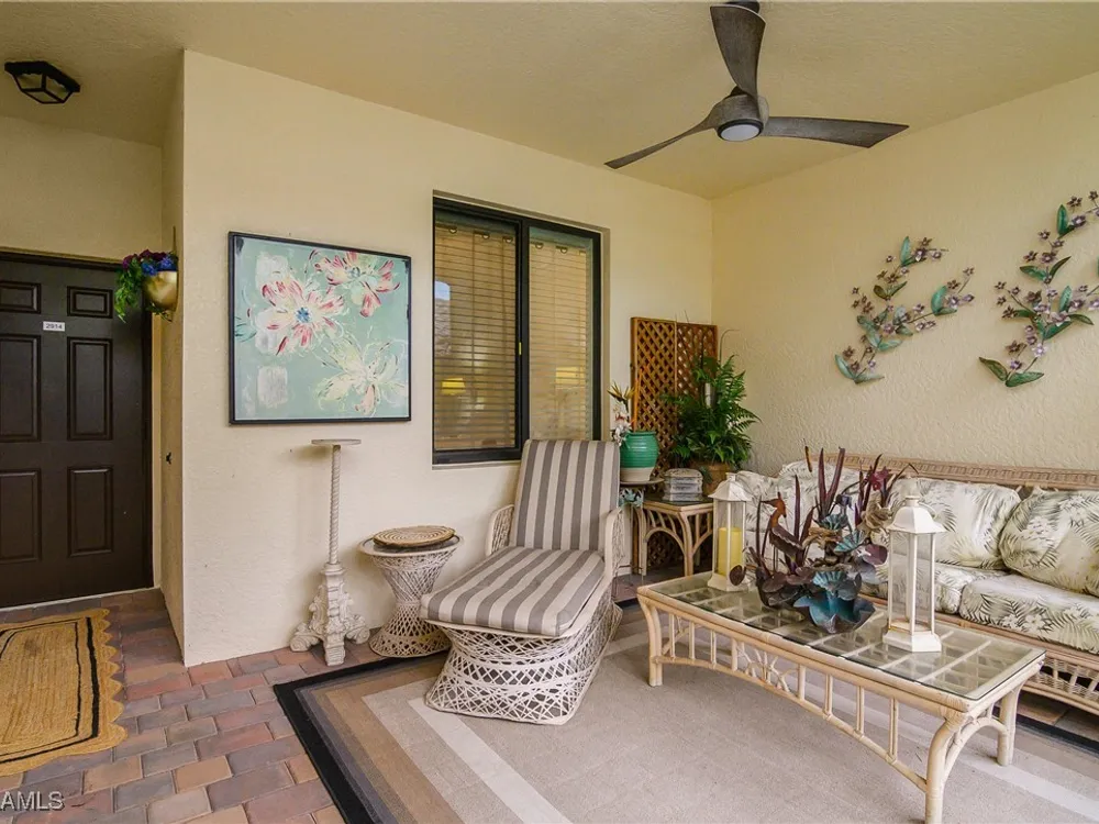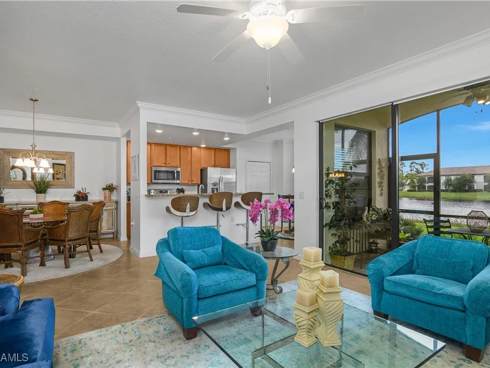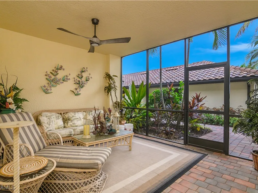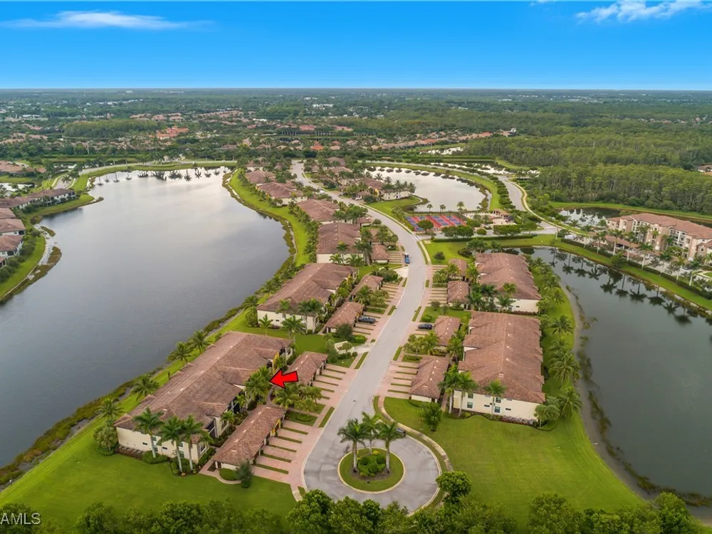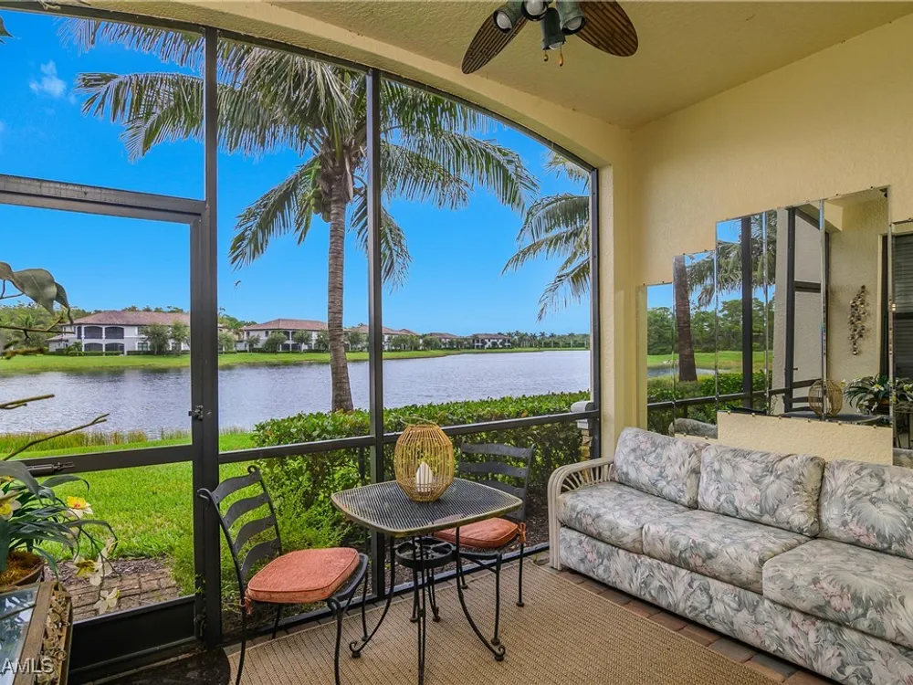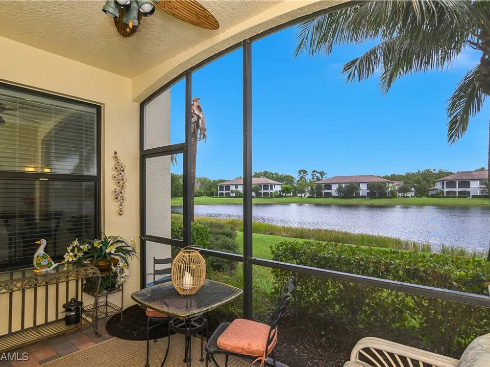 Welcome to your new home, a beautifully maintained first-floor veranda in the resort-style community of Treviso Bay. This 2-bedroom + den, 2-bath home with a 1-car detached garage is being offered turnkey and move-in ready, making it the perfect opportunity to enjoy the Naples lifestyle from day one. Freshly painted in light, inviting tones, the home features an open layout that flows seamlessly between living, dining, and kitchen spaces. Enjoy a tranquil lake view from your rear screened lanai, creating an ideal space for morning coffee or evening relaxation. A second screened lanai is located at the front of the home for added outdoor living. The den includes a stylish murphy bed, adding versatility for guests or a home office setup. Ideally located on a quiet cul-de-sac and just down the block from one of Treviso Bay’s satellite pools with a built-in grilling station, this home combines peaceful living with convenient access to resort-style amenities. With a social membership, residents enjoy access to Treviso Bay’s world-class amenities without the commitment of golf dues. The community features a stunning clubhouse, lagoon-style pool with waterfalls, poolside restaurant and bar, full-service spa, and a state-of-the-art fitness center. Sports enthusiasts will love the eight pickleball courts, eight tennis courts (+ a training court), 3 bocce courts, and basketball, while scenic walking and biking trails wind throughout the lush, tropical landscape. Located just minutes from downtown Naples and the Gulf’s beautiful beaches, this is where luxury and leisure meet every day.