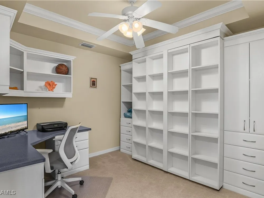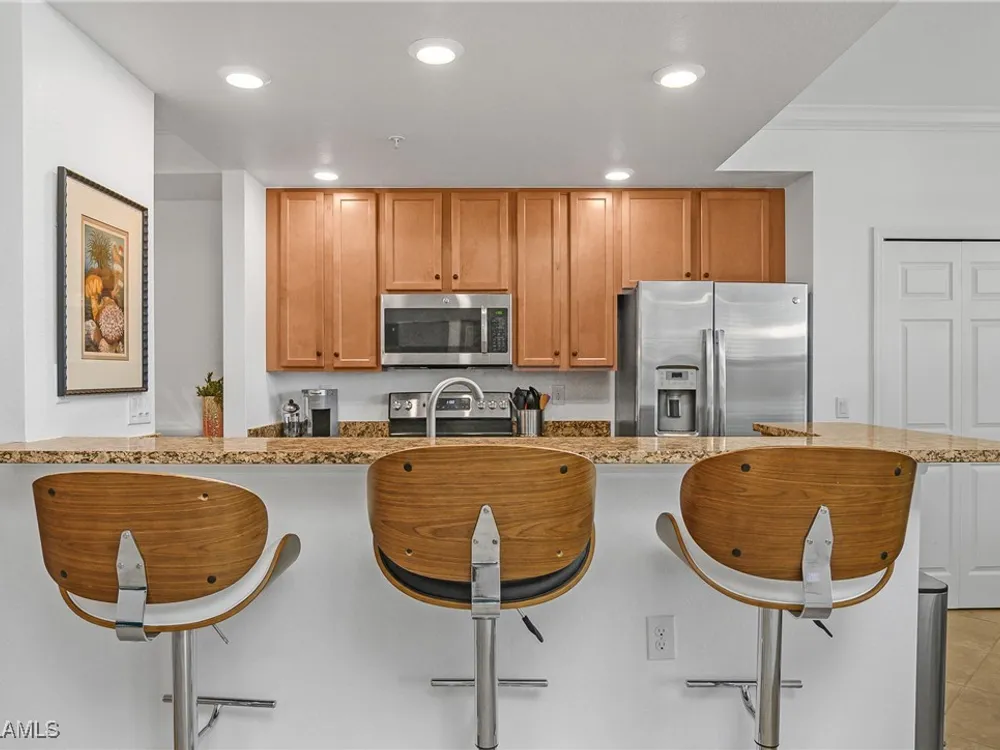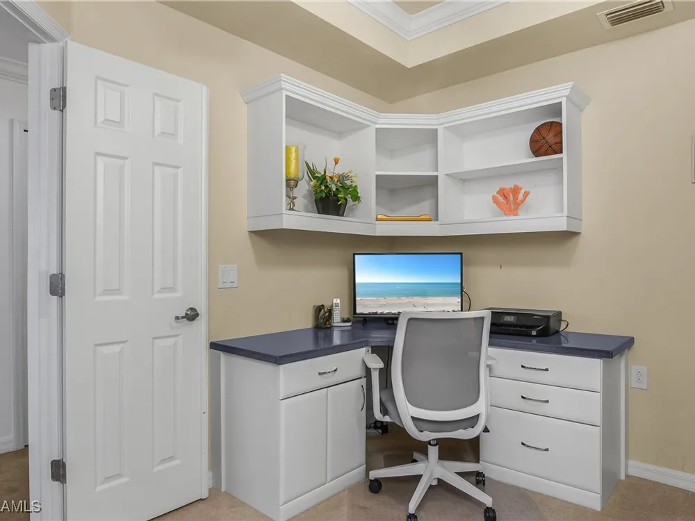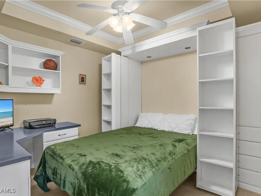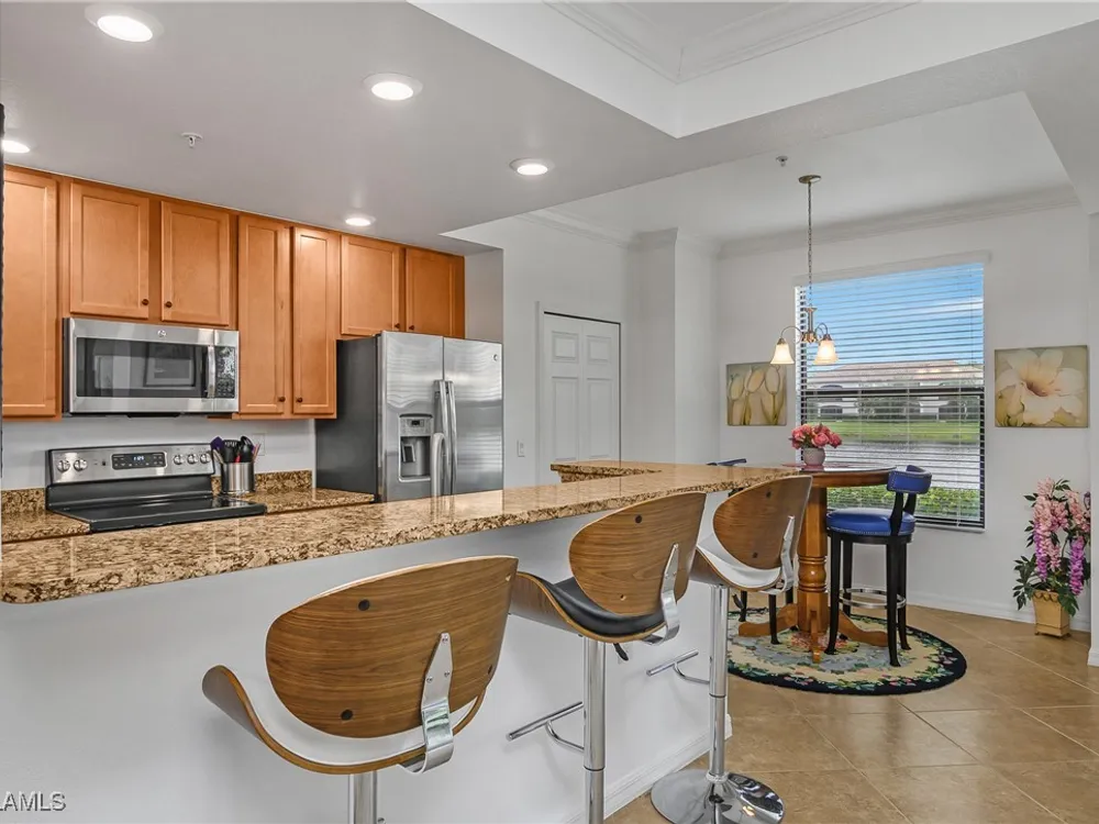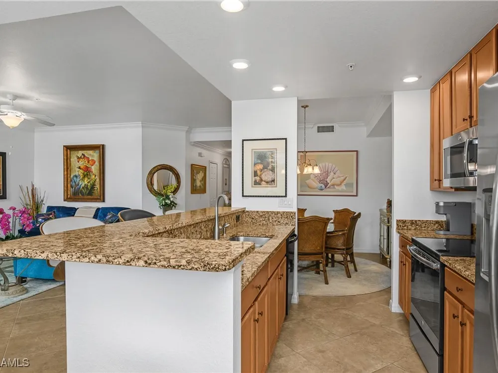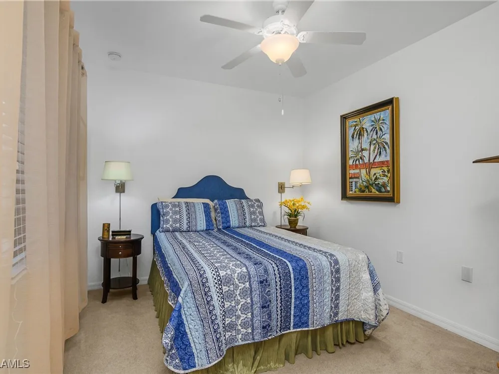 Welcome to your new home, a beautifully maintained first-floor veranda in the resort-style community of Treviso Bay. This 2-bedroom + den, 2-bath home with a 1-car detached garage is being offered turnkey and move-in ready, making it the perfect opportunity to enjoy the Naples lifestyle from day one. Freshly painted in light, inviting tones, the home features an open layout that flows seamlessly between living, dining, and kitchen spaces. Enjoy a tranquil lake view from your rear screened lanai, creating an ideal space for morning coffee or evening relaxation. A second screened lanai is located at the front of the home for added outdoor living. The den includes a stylish murphy bed, adding versatility for guests or a home office setup. Ideally located on a quiet cul-de-sac and just down the block from one of Treviso Bay’s satellite pools with a built-in grilling station, this home combines peaceful living with convenient access to resort-style amenities. With a social membership, residents enjoy access to Treviso Bay’s world-class amenities without the commitment of golf dues. The community features a stunning clubhouse, lagoon-style pool with waterfalls, poolside restaurant and bar, full-service spa, and a state-of-the-art fitness center. Sports enthusiasts will love the eight pickleball courts, eight tennis courts (+ a training court), 3 bocce courts, and basketball, while scenic walking and biking trails wind throughout the lush, tropical landscape. Located just minutes from downtown Naples and the Gulf’s beautiful beaches, this is where luxury and leisure meet every day.