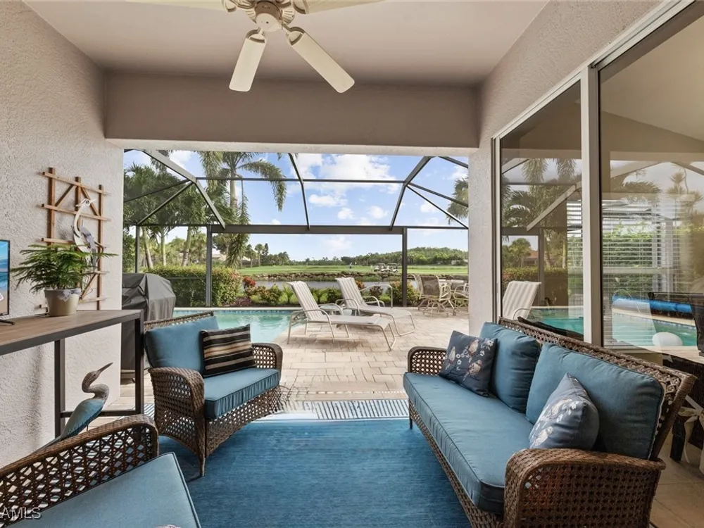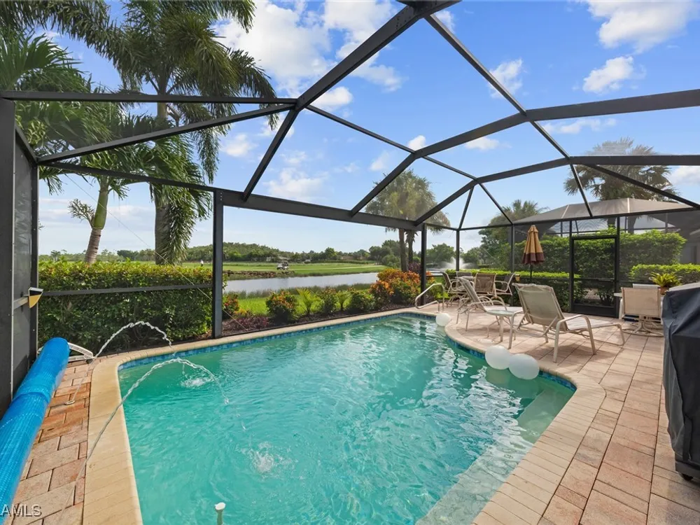 The AMAZING VIEW immediately upon entering this beautiful home is a wow moment! A Full 3-door glass sliding view, to Lanai/private salt-water pool w/ water element, picture window Lanai screen beyond to the NEW 17th Par 3 Green of the NEW Award-Winning 18-hole Gordon Lewis Course. Meticulously maintained this Brentwood model FP has 3 bedrooms/2 full baths that have been tastefully updated. Enjoy sitting in the lg Great room or having morning coffee in a bright airy eating area or Lani watching your personal view of the New golf course over the lake w/fountain. Do you love Florida wildlife of birds & Turtles? There are plenty to enjoy right from your large Lanai. Many updates include: Roof ‘23, Whole house-Exterior painting ‘23, Refrigerator & Microwave ’24 and more. Pack your bags to begin enjoying this active community and the FL lifestyle it provides. This home comes with a BUNDLED GOLF MEMBERSHIP included in the highly sought out Colonial Country Club Community and Newly renovated 18-hole Gordon Lewis Championship course. Recently renovated Clubhouse in 2020 complete w/oversized Sunset Bar & Grille plus Formal Dining Room and outside dining options. CCC has a very Active Life-Style, World class Tennis facility, newly renovated Fitness Center, Competitive Pickleball, Bocce, Golf-Tennis shops & miles of Walking Nature Trail that winds around the community. Conveniently located close to RSW airport, Twins and Red Sox Spring Training Stadiums, restaurant, shopping and easy access to Interstate 75 getting around to all that SWFL has to offer is a bonus. Desirable Colonial Country Club community has recently been voted one of America’s Healthiest Clubs by Prevo Health Solutions-the premier wellness solutions providers in the Club industry & has been Recently Awarded a ‘Distinguished Club” designation from Forbes Travel Guide/BoardRoom magazine. This is your perfect new home! Come join the fun and the Florida lifestyle you have been searching for in beautiful Colonial Country Club Community and indulge in the epitome of residential country club living, where excellence is not just a goal but a way of life."