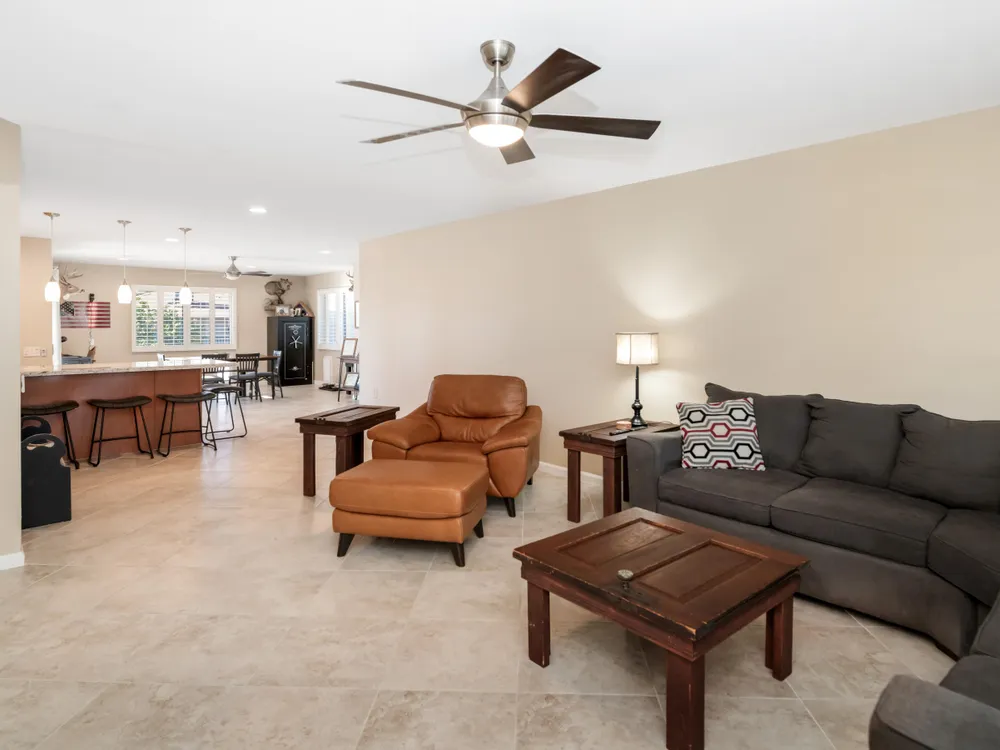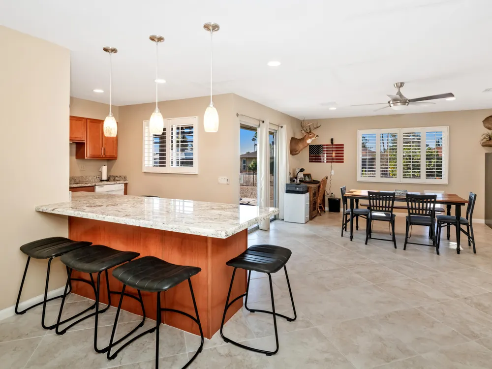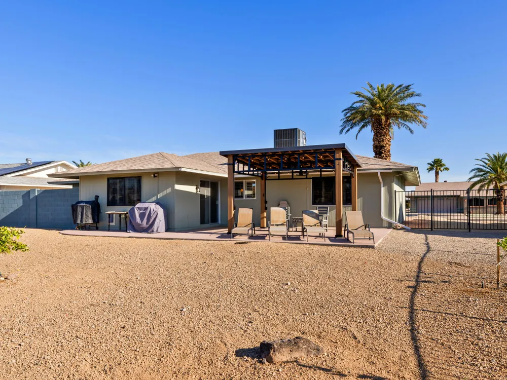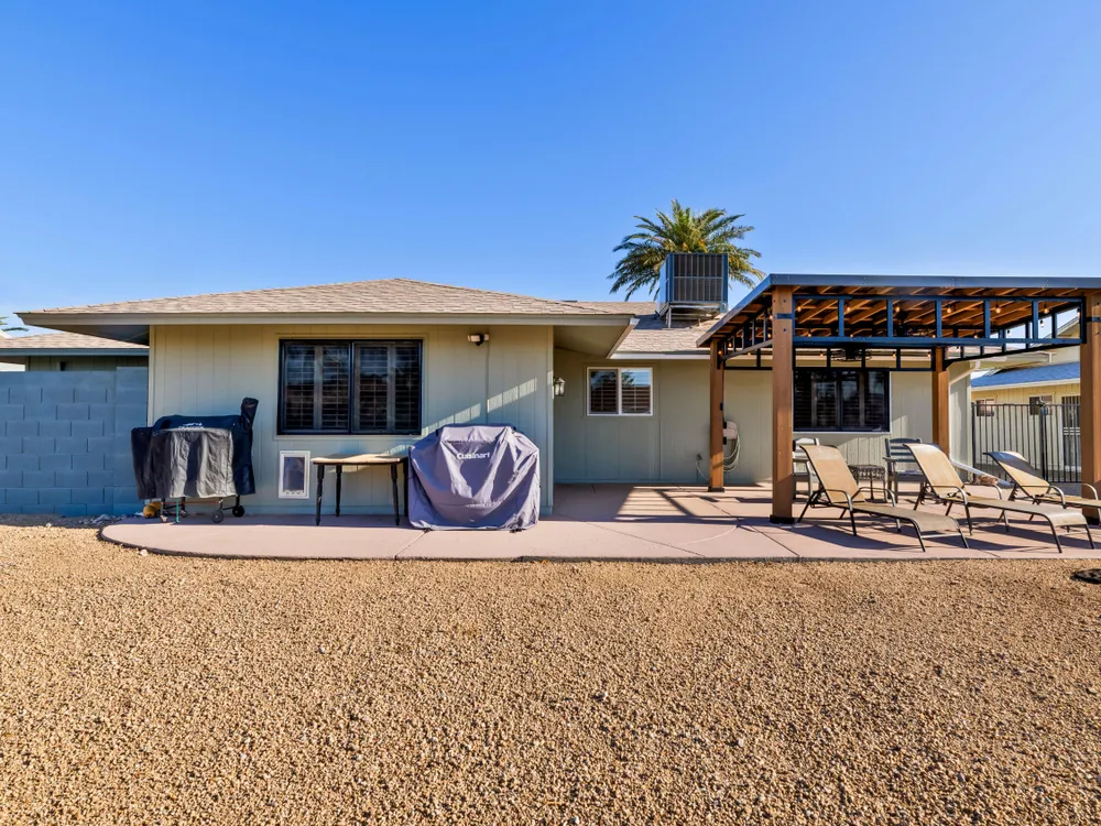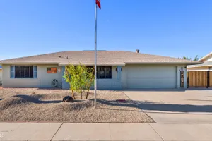 Check out this incredible expanded Woodbury floor plan nestled in the heart of Phase. This property is full of charm and thoughtful updates with well-appointed kitchen features beautiful hardwood cabinets with pull-outs, granite countertops, and newer appliances. Ceiling fans throughout, 18-inch tile with carpet in the bedrooms. There is a cozy family room and a large inside laundry that can be used as hobby/office for added extra versatility. A new HVAC system (2024) plus a newer mini-split system for Laundry/Office Space. Outside, enjoy an expanded patio with a pergola built-in electrical, and fans. Extras include: A new RV gate & poured pad perfect for additional parking needs, plus added doggie doors and block dog run. Close to Marinette Rec Center and all Sun City amenities!