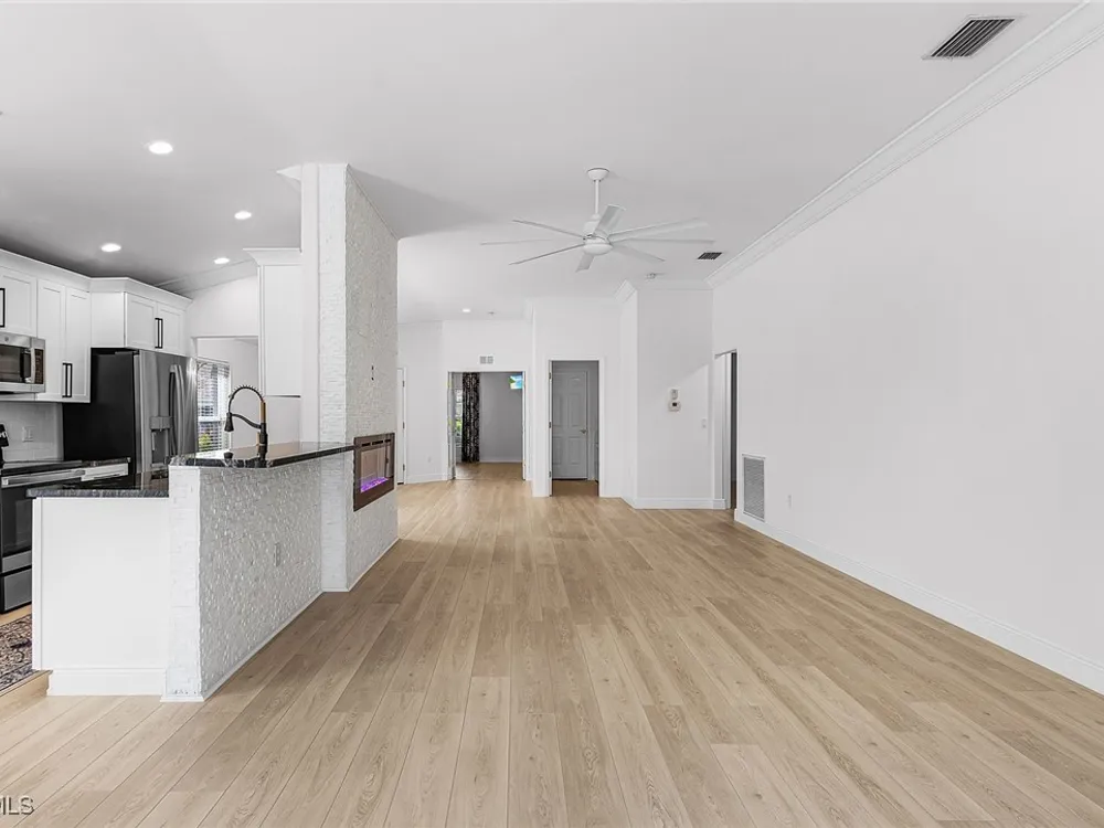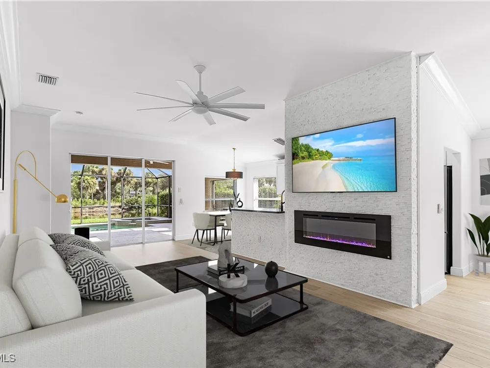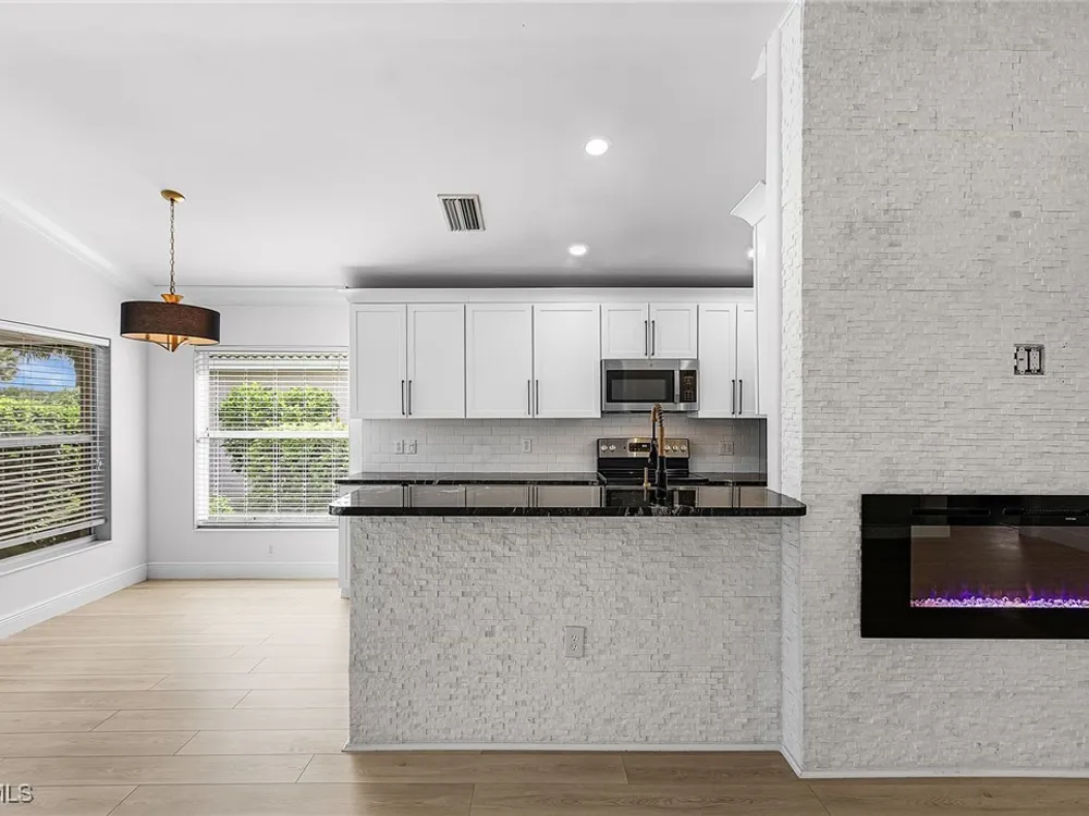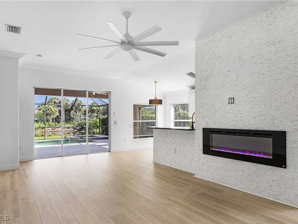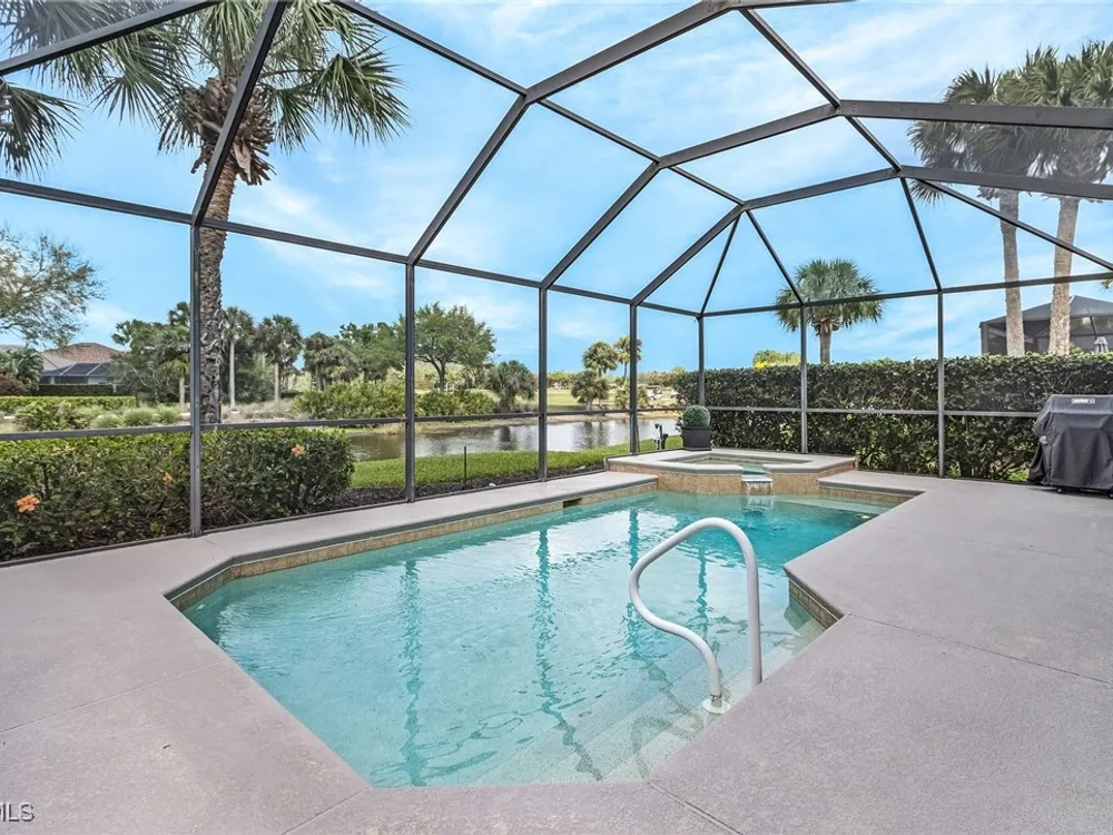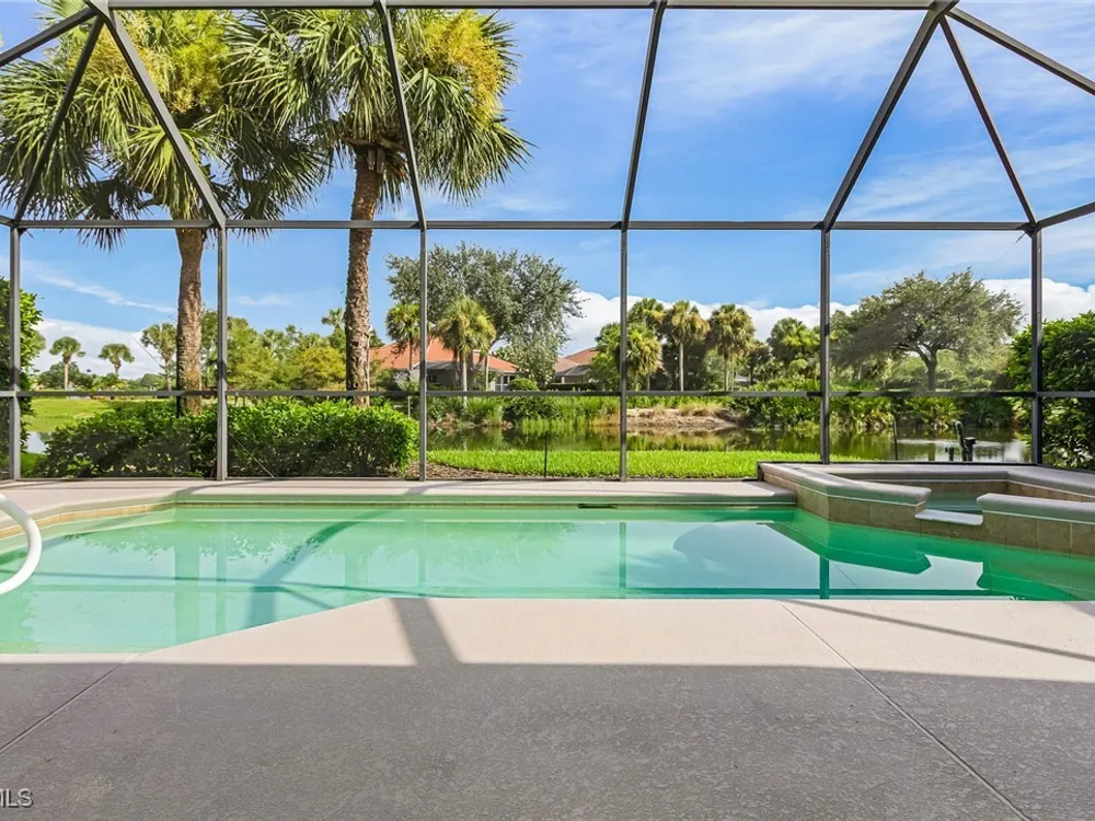 Looking for a charming Colonial Country Club home with lots of entertaining space? Then this is the home for you!! Ready for IMMEDIATE move-in and a quick close....this great room floor plan has over 1700 sq.ft. under air with 3 bedrooms, 2 baths, 2 car garage, high ceilings throughout, pool & spa, PAVER drive & walkway, lush landscaping and a lake to golf course view. Upon entering, take in the views through the triple sliders from the great room & dining area. You will love the large open NEWLY remodeled kitchen with new granite tops, SS appliances, NEW white cabinetry, WINE COOLER, pantry, & breakfast bar. The kitchen encompasses a breakfast nook and opens to the great room and is light, bright & open. RELAX outside under the screened lanai area overlooking the large POOL & SPA. There is plenty of space for grilling and serving your specialty from the undercover lanai. FULL GOLF MEMBERSHIP HOME. Other updates include new ROOF (2023), NEW LTV flooring throughout, updated primary bathroom, NEW electric fireplace with stylish stone feature wall. Home is located close to the Treeline member only gate. Colonial Country Club is an active style community offering 18 holes of championship golf (to be newly remodeled), driving range, pool & spa, Sunset bar & grill, remodeled clubhouse with fine dining, tennis courts, walking trails, pickleball & bocce. This community has something for everyone. As a special note, Colonial has received the Distinguished Club designation from Forbes Travel Guide.