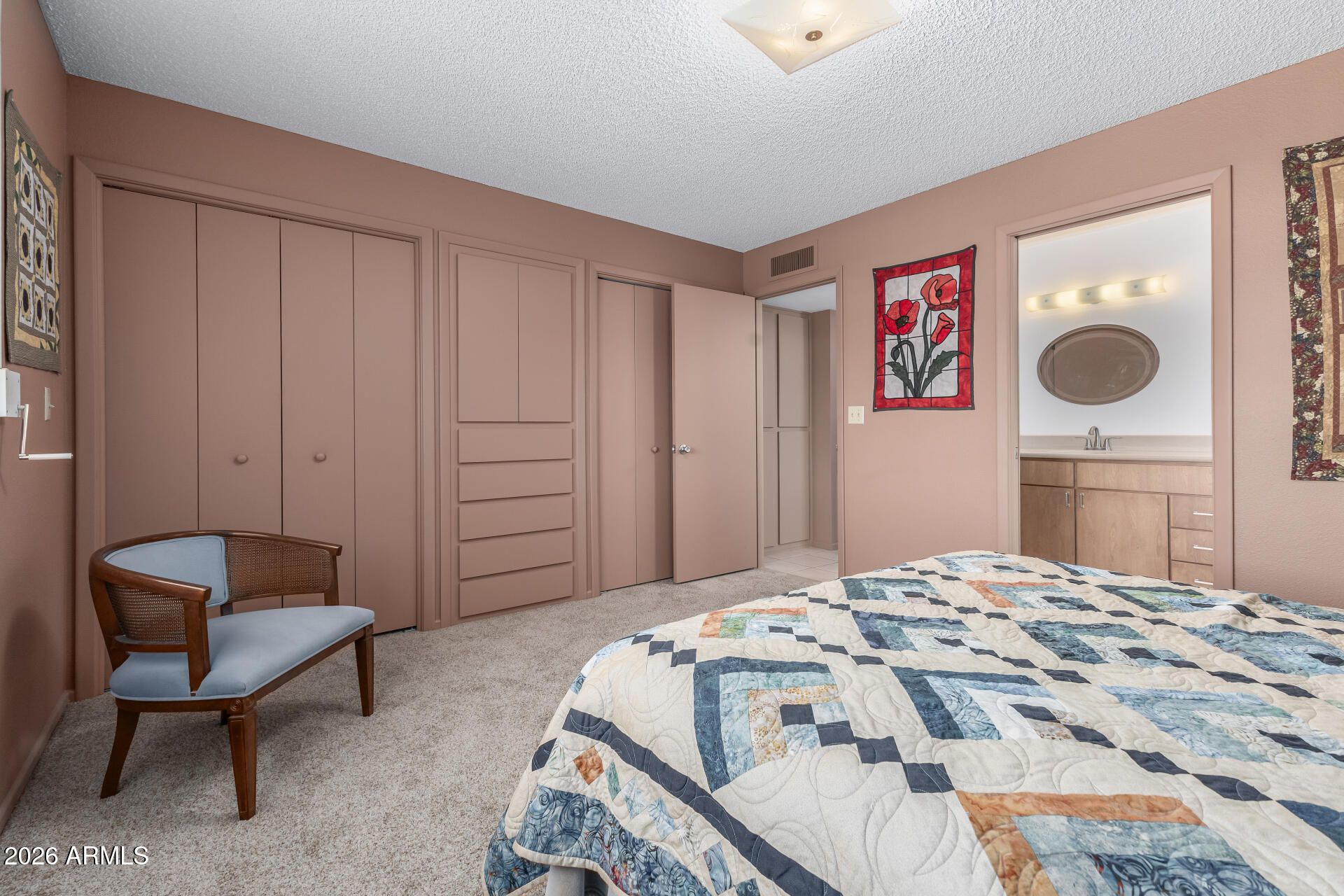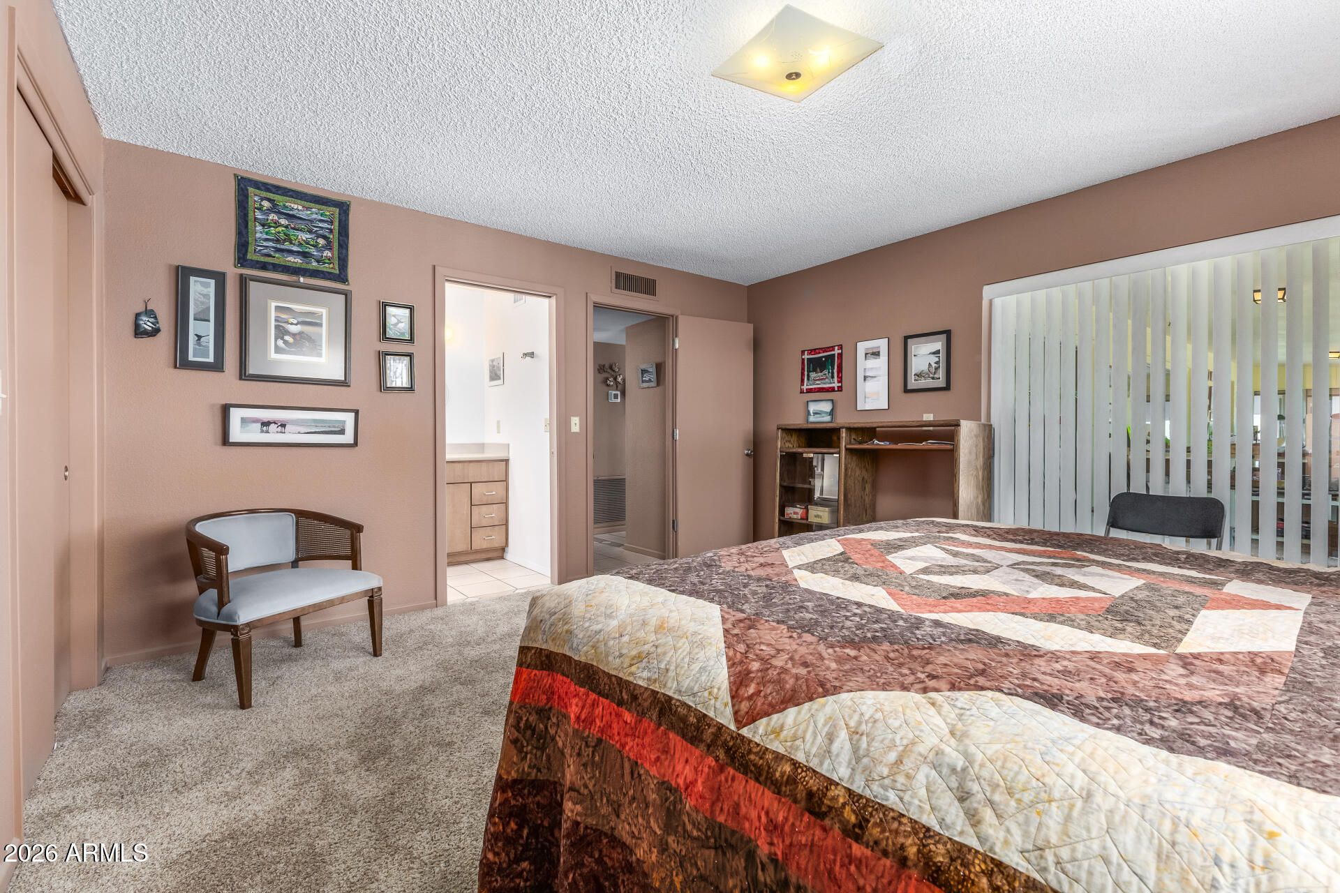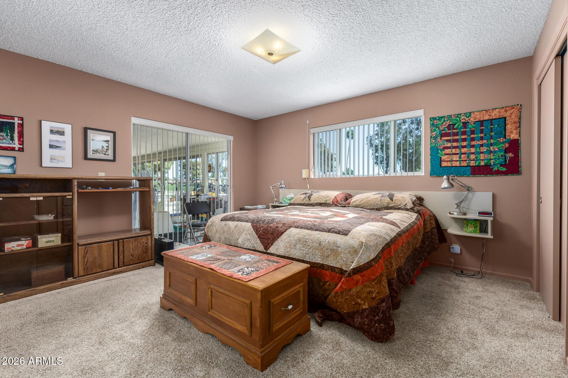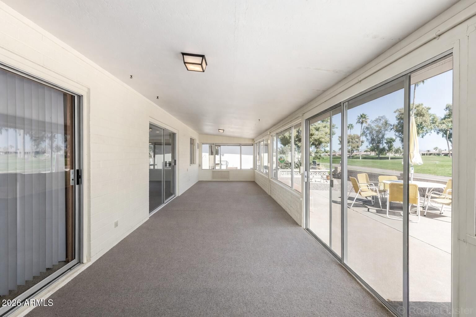 Golf Course Living on the 18th Tee | Expanded Farnsworth 600 with Huge Arizona Room EXTRAORDINARILY MAINTAINED FARNSWORTH MODEL 600 (EXPANDED) in a highly sought-after age-restricted community! Located on the 18th tee box of Sunland Village Golf Course, this home offers incredible views and is within walking distance to the pro shop and restaurant. Rare 2 bedroom, 1.75 bath Model 600 built to the original owner's specifications. Features include a beautiful open kitchen with electric glass cooktop, light-filled living room, and a huge east-facing Arizona/craft room overlooking the course. Primary bedroom includes an updated ensuite shower. Flexible front bedroom offers private or guest bath access. Security roll shutters on exterior windows. Floor plan and drone video available. Must se