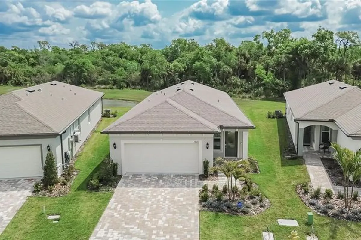 We PROUDLY present to you this GREAT WATER VIEW AND CONSERVATION VIEWS IN THIS BEAUTIFUL HOME located in the FANTABULOUS community of DEL WEBB BAYVIEW!! LIVE LIKE YOU'RE ON VACATION EVERY DAY THE BAYVIEW WAY!! Discover FIRST CLASS LUXURY LIVING and the area's BEST 55+ GATED & GOLF CART Community with PRIVATE ROADS, OUTSTANDING AMENITIES, ACTIVITIES GALORE, RESORT STYLE POOL with CABANA'S, HOT TUB, 25,000SQFT AMENITY CENTER, OUR OWN RESTAURANT "THE SAILFISH GRILL" which includes FULL BAR INSIDE & OUT, FLAT SCREEN TV'S, POOL TABLES, BAND SHELL AREA for LIVE MUSIC & MOVIE NIGHTS, DOCK on WATER, FIREPLACE SITTING AREA, PICKLEBALL, BOCCE BALL, SHUFFLEBOARD COURTS, WATERFALLS GALORE THROUGHOUT COMMUNITY, WALKING TRAILS, CORN TOSS, DOG PARK, FITNESS CENTER and MUCH MORE!! Upon your arrival at YOUR NEW HOME, notice some EXTRA SPACE BETWEEN YARDS, PAVERED DRIVEWAY & WALKWAY, NEUTRAL COLOR PALETTE, 2 CAR GARAGE, OPEN FRONT PORCH AREA to sit & sip your favorite beverage, say HI to your NEW NEIGHBORS and BEAUTIFUL LEADED GLASS FRONT ENTRY DOOR!! STEP INSIDE, WOW!! This HALLMARK FLOORPLAN (BARELY LIVED IN BUILT IN 2025) is sure to please, OPEN FLOORPLAN, LIGHT & BRIGHT, FEATURES 3 FULL BEDROOMS, 3RD ROOM HAS CLOSET & FRENCH DOORS, 2 FULL BATHS, 1655SQFT OF LIVING SPACE, SPLIT FLOOR PLAN, LUXURY VINYL FLOORING, GORGEOUS TILE IN BATHS, CARPET IN BEDROOMS, NEUTRAL COLORS THROUGHOUT HOME, 8FT DOORS, 10FT CEILINGS, FANTASTIC VIEWS, CHEF'S DELIGHT KITCHEN WITH SLEEK QUARTZ COUNTERTOPS, SOFT CLOSE CABINETRY, PULL-OUT DRAWERS, LARGE ISLAND (EXTRA EATING SPACE), CLOSET PANTRY, PENDANT LIGHTING and STAINLESS APPLIANCE PACKAGE!! GREAT ROOM AREA FEATURES POCKET SLIDERS, SCREEN SHADE, DINING/CAFE AREA is SPACIOUS, GUEST BATH HAS TUB/SHOWER COMBO with QUARTZ TOP VANITY, LARGE INDOOR LAUNDRY ROOM WITH SINK and GAS OR ELECTRIC HOOKUP, EPOXY GARAGE FLOOR, IMPACT WINDOWS AND SLIDERS, ALL LIGHTS AND CEILING FANS REMAIN, transferable WARRANTY, PRIMARY SUITE IS SPACIOUS AND has GREAT WATER VIEWS, PRIMARY BATH FEATURES WALK-IN SHOWER WITH BENCH, DUAL VANITIES WITH QUARTZ TOPS, SOFT CLOSE DOORS/DRAWERS, EXTENDED LANAI AREA IS PRIVATE WITH SOME SPACE BETWEEN HOMES, NO BACKYARD NEIGHBORS, GREAT VIEWS and LITTLE NOISE!! PERFECT FOR ENTERTAINING, GRILLING WITH FAMILY & FRIENDS or PERHAPS just quietly sitting...enjoying peace & tranquility, you will SURELY ENJOY THE BEAUTIFUL WILDLIFE, SUNRISES and NATURE at its BEST!! HOA INCLUDES ALL EXTERIOR GROUNDS MAINTENANCE INCLUDING MOWING, SHRUBS, TRIMMING, CABLE/INTERNET, RECLAIMED WATER & IRRIGATION!! CALL US TODAY CAUSE YOU KNOW WHAT WE SAY...if you SLEEP ON IT, you may not SLEEP IN IT!!