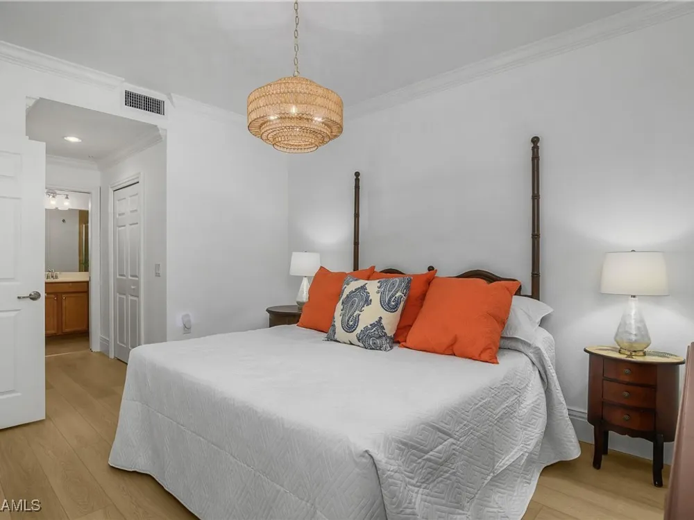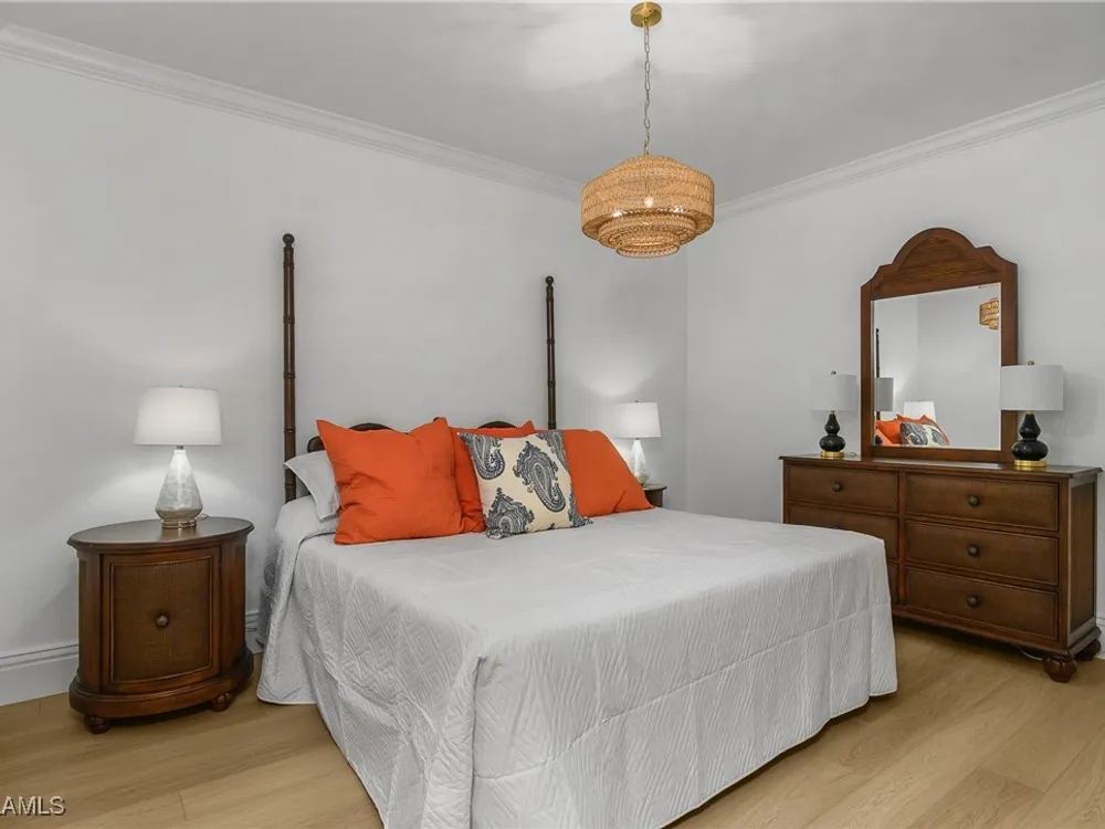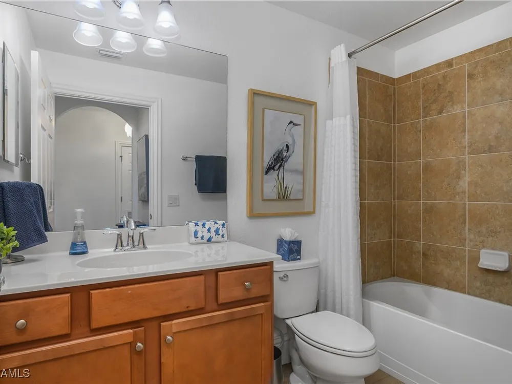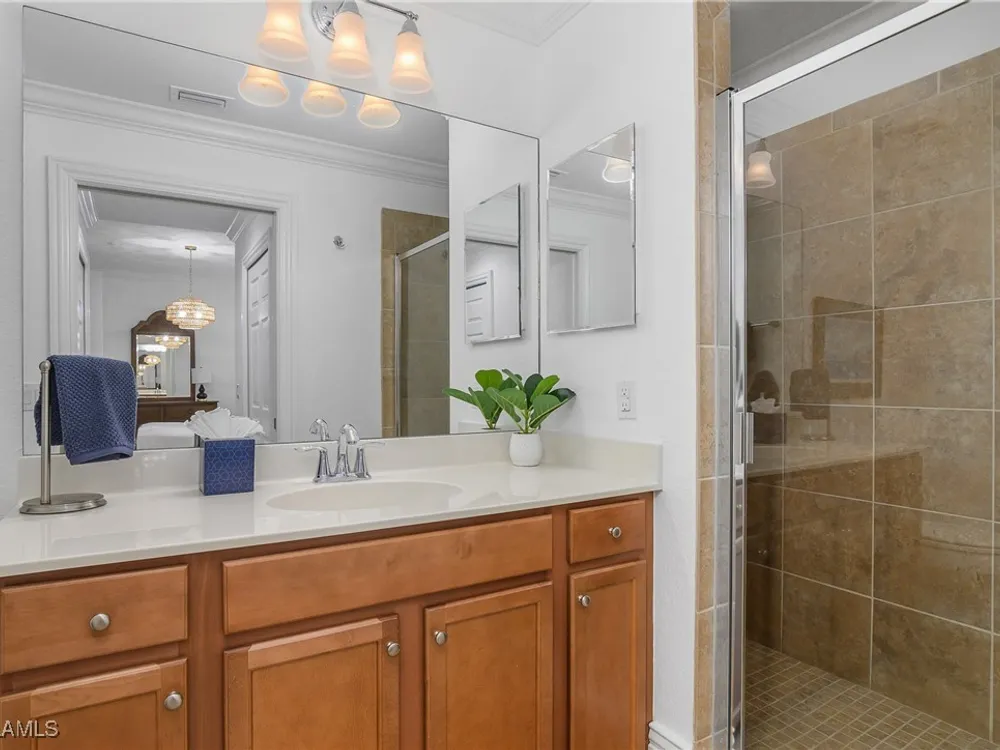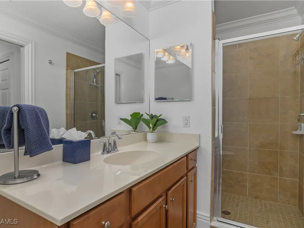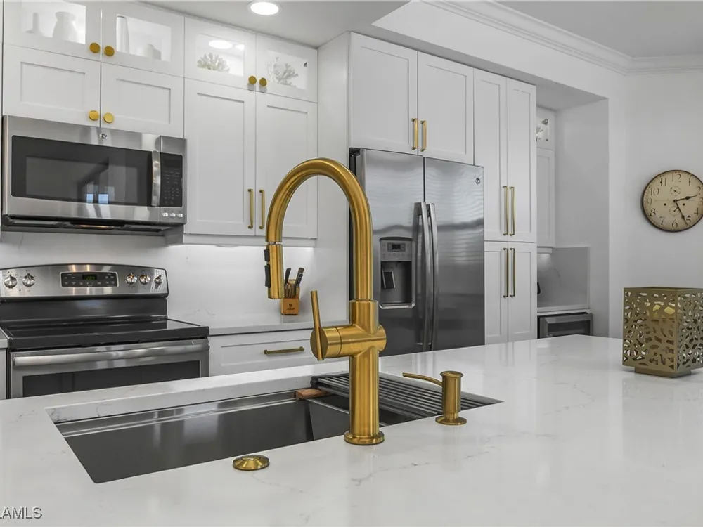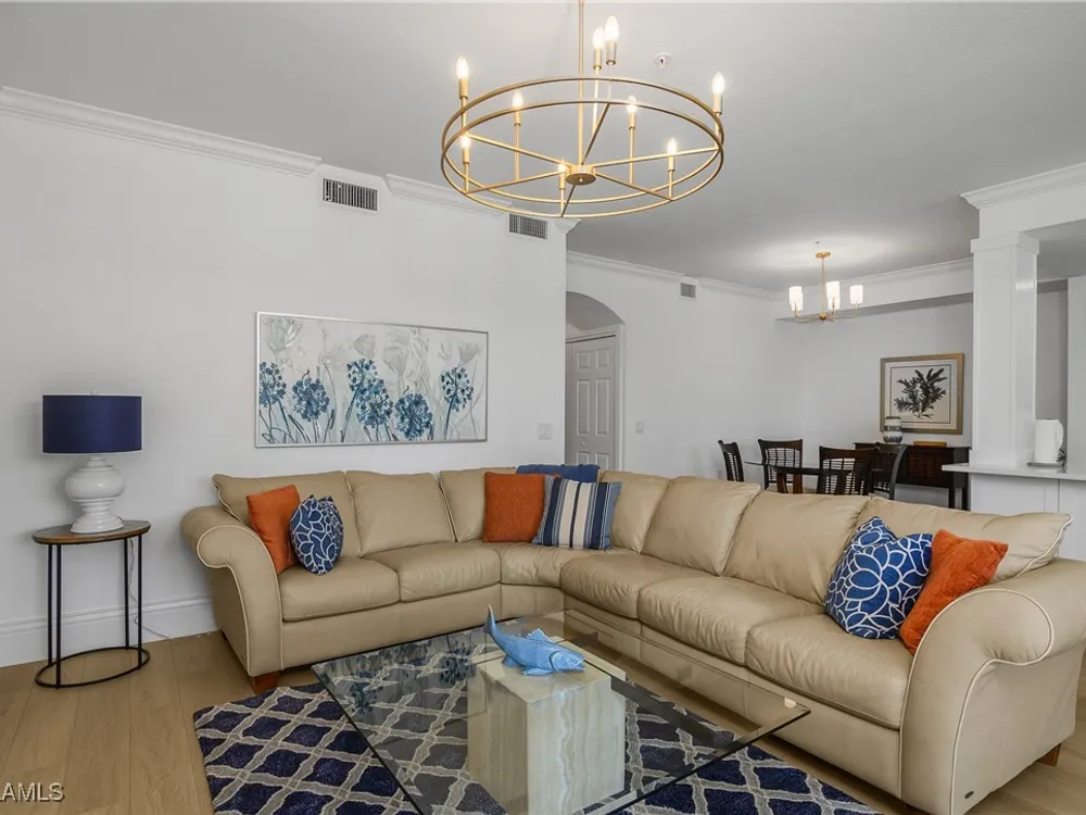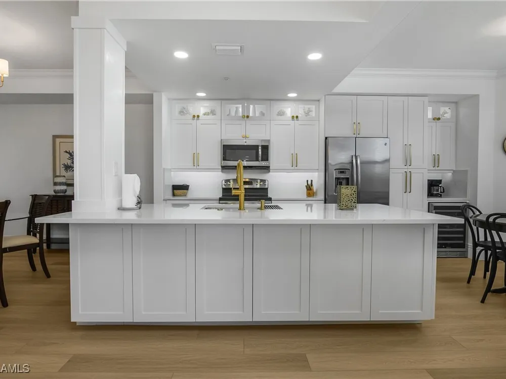 A rare chance to own PERFECTION—this 2nd floor, SOCIAL membership, Bellini model in Treviso Bay has been masterfully remodeled with more than $50,000 in upgrades, creating a home that feels brand new and effortlessly refined. Every detail has been considered, blending style and function into a welcoming retreat with 2 bedrooms, 2 bathrooms, and a spacious open layout perfect for everyday living or entertaining. The redesigned kitchen is the heart of the home, showcasing $20,000 in custom cabinetry from floor to ceiling, sleek quartz countertops, a large stainless-steel sink with upgraded faucet, Jeffrey Alexander hardware, and a built-in wine cooler and dry bar. A removed kitchen wall now creates a more open, airy flow, while designer chandeliers and enhanced electrical work provide an elegant finishing touch. Luxury vinyl flooring stretches throughout, complemented by taller baseboards and wider door trim for a refined look. The living area is anchored by a stunning custom tile TV and fireplace feature wall, making it a perfect space to relax. Freshly painted walls, ceilings, and trim enhance the light and bright atmosphere, while an upgraded screen door at the entrance welcomes breezes inside. Even the laundry room has been elevated with additional cabinetry for storage and convenience. As a bonus, the contractor has a piece of matching quartz available should the new owner wish to upgrade the bathroom counters. The screened lanai has an updated light and fan and offers breathtaking views of the lake and Rookery Bay Preserve, perfect for enjoying a morning cup of coffee or relaxing after a fun filled day in the community. Beyond the home itself, Treviso Bay offers a lifestyle unlike any other in Naples. This gated community features the luxurious Club Rilassare with a resort-style pool, lap lanes, hot tub, kiddie pool, and poolside restaurant and bar. Stay active with a state-of-the-art fitness center, aerobics studio, bocce courts, tennis facilities, pickleball courts, and a half court basketball. Unwind at the full-service spa, explore miles of walking and biking trails, or simply enjoy the natural beauty surrounding the community. The main clubhouse over looks the TPC golf course (tee times available to social members May - October) and offers plenty of dining options with indoor and outdoor bars and seating, a large events room, private dining room, Arthurs Snack Shop, activities room, business center, a golf pro-shop, and large lounge locker rooms. With a social membership included, you’ll have access to endless opportunities to connect, relax, and enjoy the best of resort-style living.