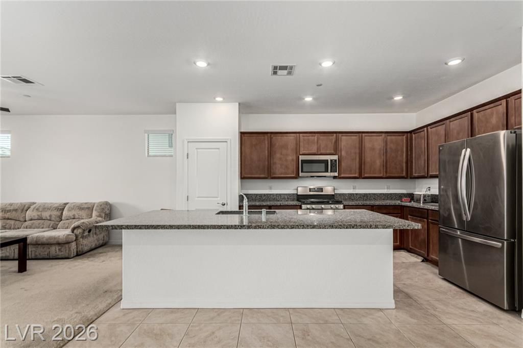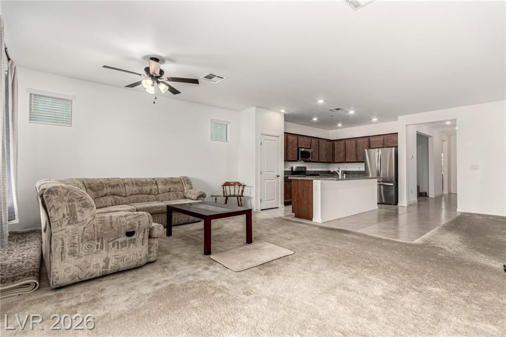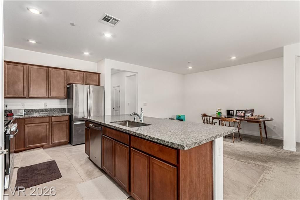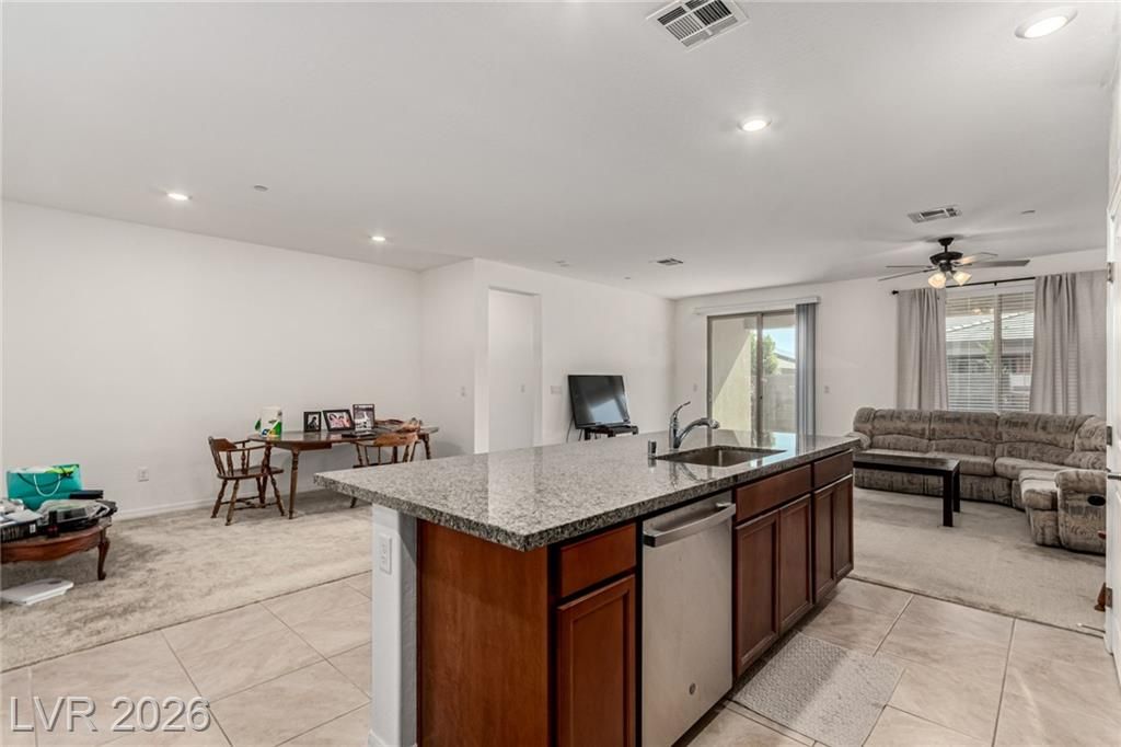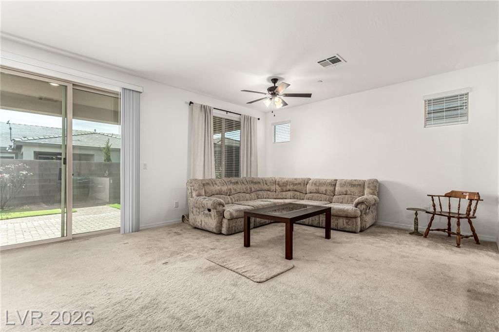 You’ve just found your perfect home! This adorable single-story gem features 3 beds, 2 baths, and a 2-car garage. Spacious open floor plan exudes comfort and convenience, enhanced by plush carpet, neutral tone, and abundant natural light. In the spotless kitchen, you will have stainless steel appliances, plenty of cabinets, a handy pantry, granite counters, a prep island with a breakfast bar, and recessed lighting that illuminates every corner. Sizable primary bedroom offers a serene retreat, complete with a private bathroom and a walk-in closet. The secondary bedrooms include sliding doors and closets for effortless organization. Need extra space? The versatile den can easily serve as a reading nook, play area, or office. Finally, the large backyard with a covered patio and pavers provides the ideal setting for hosting memorable gatherings with loved ones and friends. Don’t let this gem slip by!