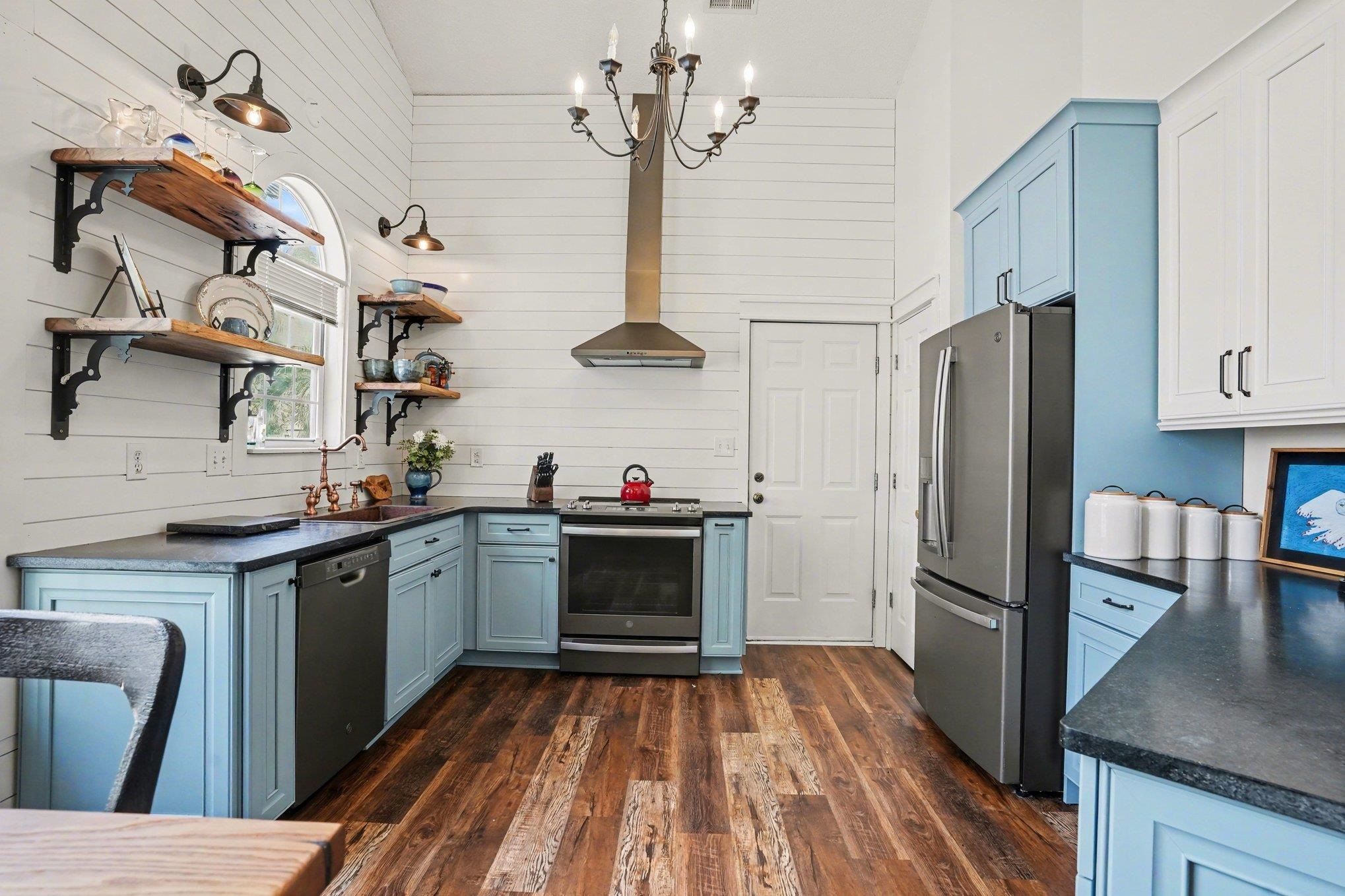 - Dishwasher, Disposal, Range, Refrigerator, Range Hood, Dryer, Washer