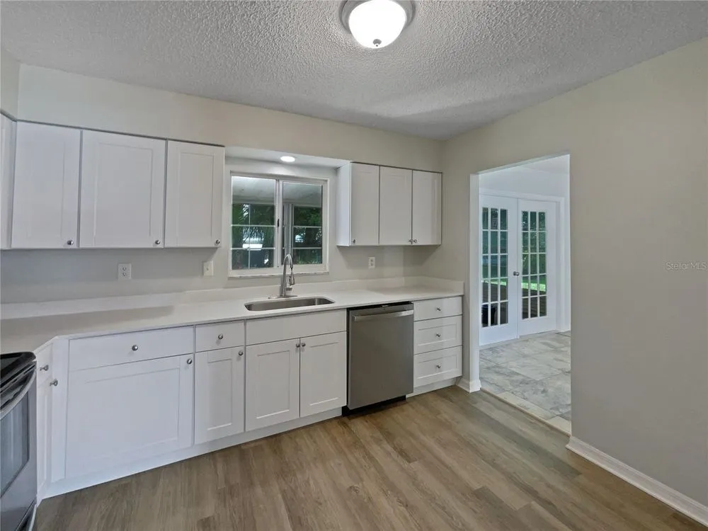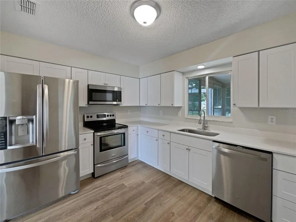 One or more photo(s) has been virtually staged. Welcome to Spruce Creek South! This popular floor plan features 3 bedrooms, 2 bathrooms, and 1,450 sq. ft. of thoughtfully designed living space. A spacious vinyl-enclosed lanai provides year-round comfort and seamlessly connects to the dining room through French doors—perfect for entertaining or simply relaxing. The interior boasts an eat-in kitchen with stainless steel appliances, quartz countertops, and ample cabinetry, along with the convenience of an inside laundry room. The split floor plan ensures privacy, while the primary suite offers a walk-in closet and ensuite bath. Both bathrooms have been tastefully updated for modern appeal. Situated in the desirable 55+ gated community of Spruce Creek South, residents enjoy an abundance of resort-style amenities: clubhouse, golf course, fitness center, community pool, and restaurant. Just minutes from The Villages, you’ll enjoy easy access to shopping, dining, entertainment, medical facilities, and even more golf—while experiencing the relaxed lifestyle of a vibrant, active community.