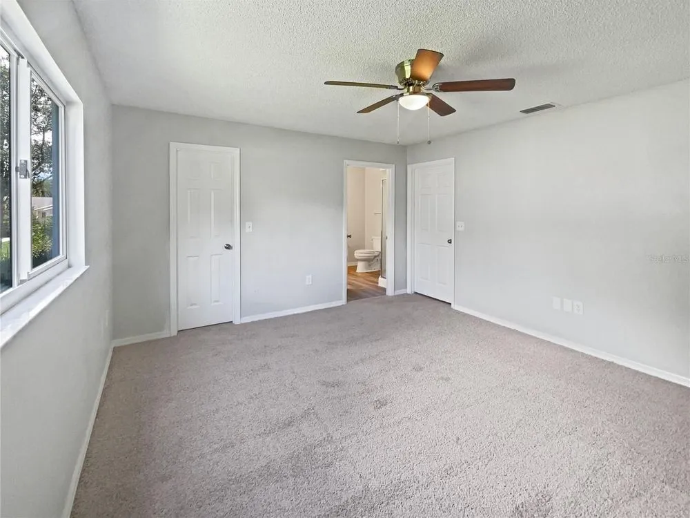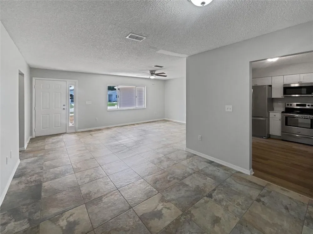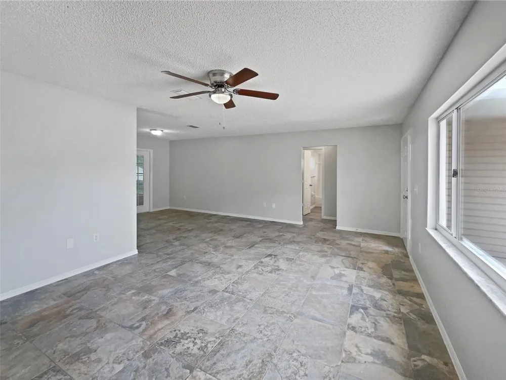 - Ceiling Fan(s), Living/Dining Room, Open Floorplan, Main Level Primary, Split Bedrooms, Stone Counters, Thermostat, Walk-In Closet(s)