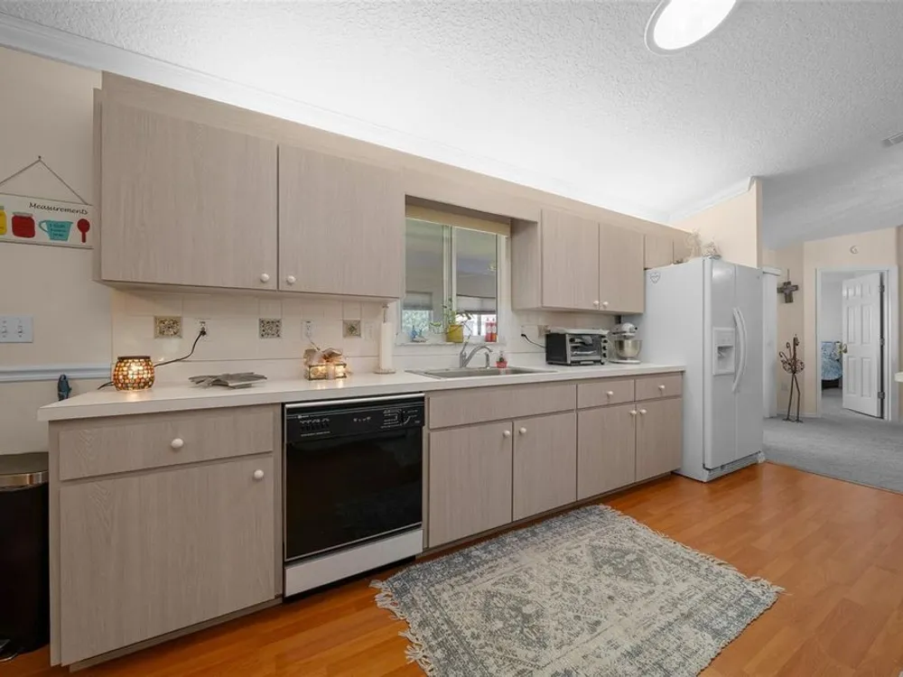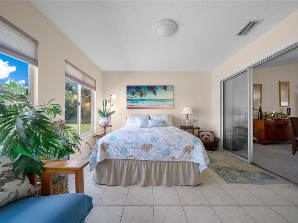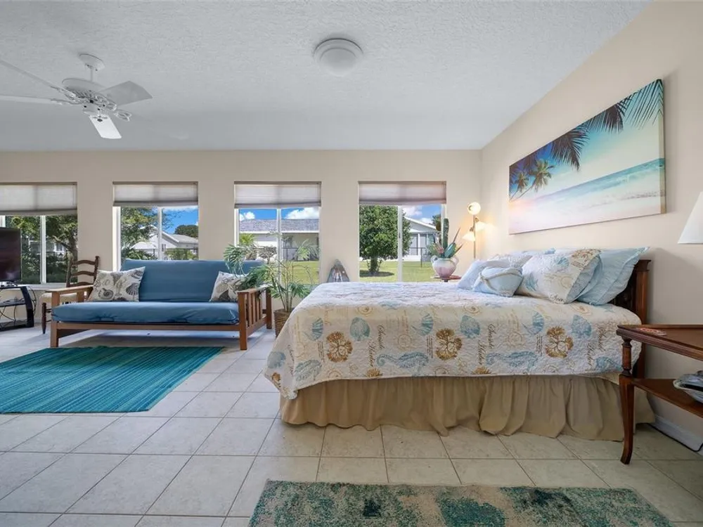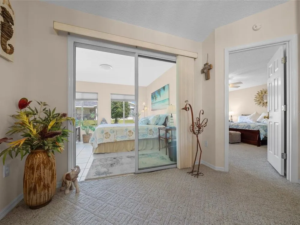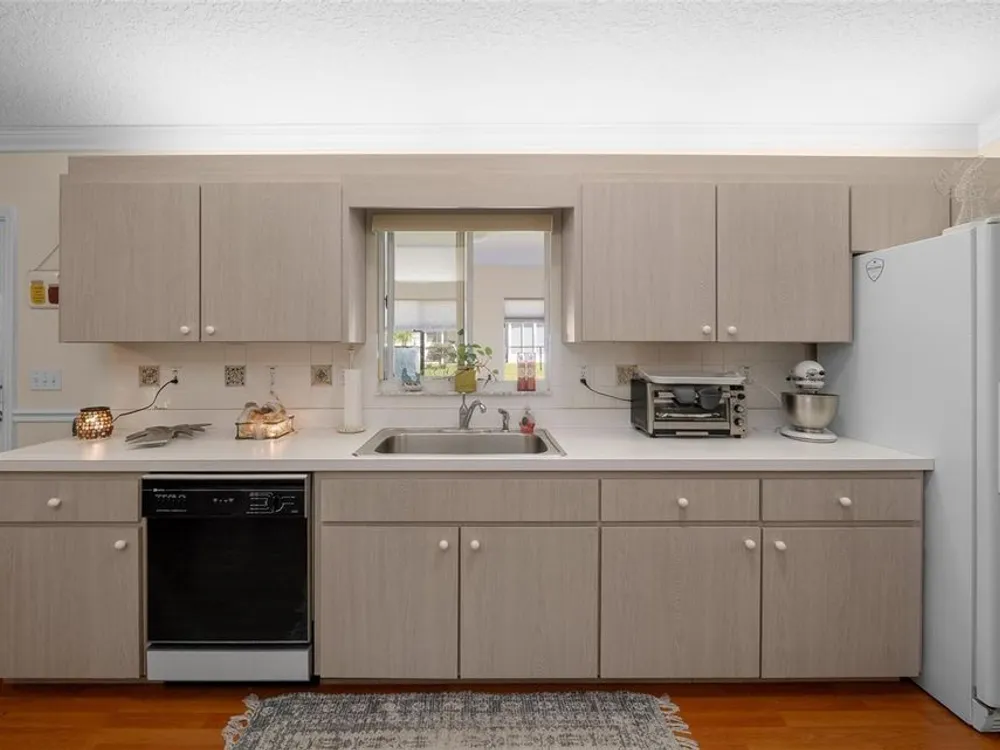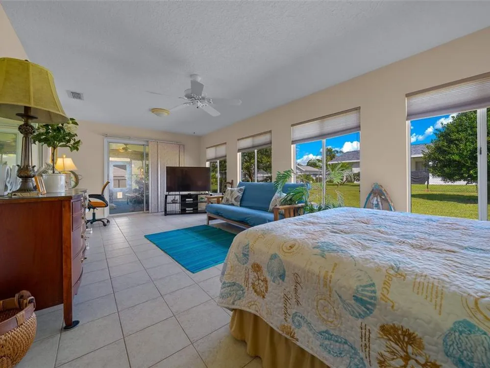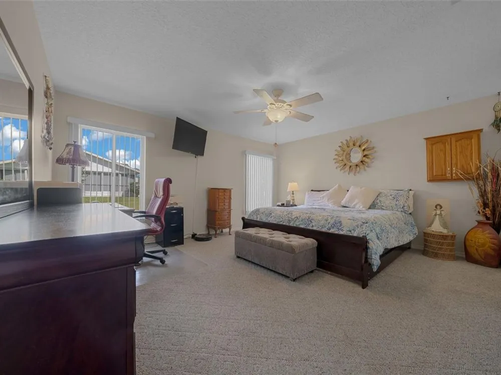 This this beautifully maintained 2-bedroom, 2-bath home is nestled in the heart of the vibrant 55+ gated community of Spruce Creek South in Summerfield, FL. This expanded Palm III model offers a spacious and inviting layout with vaulted ceilings, abundant natural light, and elegant crown molding accents throughout. The open-concept living and dining areas flow seamlessly into a bright, eat-in kitchen featuring ample cabinetry, pull-out drawers, and a pantry for effortless storage. Just off the living space, an enclosed sunroom with acrylic windows provides the perfect year-round spot to relax or entertain. The primary suite offers a peaceful retreat with a walk-in closet, additional storage, and a private bath with walk-in shower, while the guest bedroom also includes its own walk-in closet. A dedicated laundry room with utility sink and storage adds everyday convenience, and the oversized 2-car garage offers even more functionality. Outside, mature landscaping and a 2019 roof provide peace of mind and charming curb appeal. Residents of Spruce Creek South enjoy access to a clubhouse, fitness center, pool, tennis, pickleball, golf cart trails, and more — all with a low monthly HOA. Whether you're looking to unwind or stay active, this move-in-ready home delivers the perfect blend of comfort, style, and Florida lifestyle living.