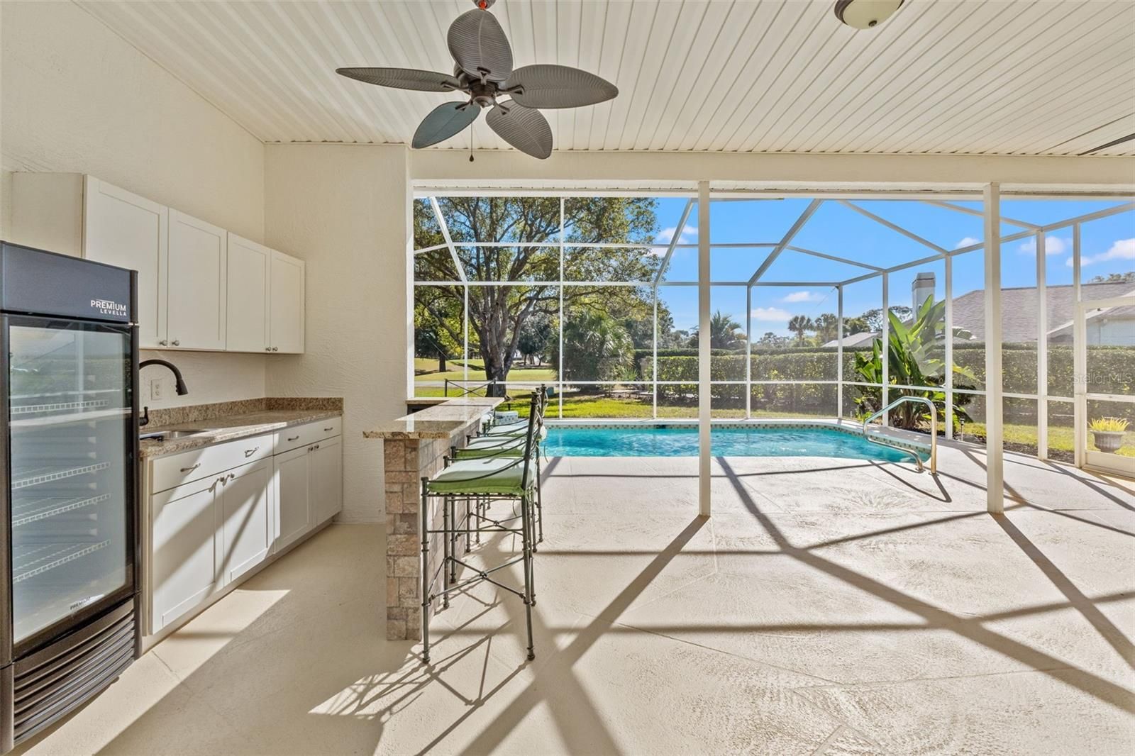 Welcome home to this beautiful Lindhorst-built pool home, perfectly positioned on the 5th hole of the prestigious Glen Lakes Golf Course. Designed for comfort and the Florida lifestyle, this spacious residence offers an ideal blend of elegance and functionality. The gourmet kitchen features solid wood cabinetry, granite countertops, and abundant storage—perfect for home chefs and entertaining. Enjoy formal meals in the dedicated dining room or casual dining in the eat-in kitchen. The open family room overlooks and flows seamlessly to the large screened pool area, complete with a tranquil waterfall and a heated pool for year-round enjoyment (new pool pump 2025). This inviting space also features a wood-burning fireplace for those cooler Florida evenings. The expansive primary suite includes a generous walk-in closet and a well-appointed en-suite bath with granite countertops, dual vanities, ample counter space, a garden tub, a large walk-in shower with waterfall feature, and an additional storage closet. The second and third bedrooms are generously sized and feature beautiful laminate flooring. A three-car garage provides ample space for vehicles, storage, and a personal golf cart—ideal for the avid golfer. The HOA includes cable, internet, private roads, and a 24-hour staffed security gate. Social membership is optional and offers access to the fitness center, clubhouse, bar and restaurant, resort-style pool, tennis, pickleball, and a variety of social events and clubs. This exceptional home offers space, comfort, and golf-course living at its finest.