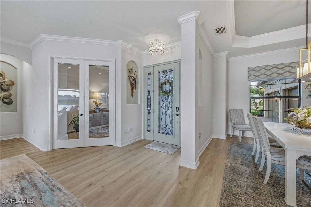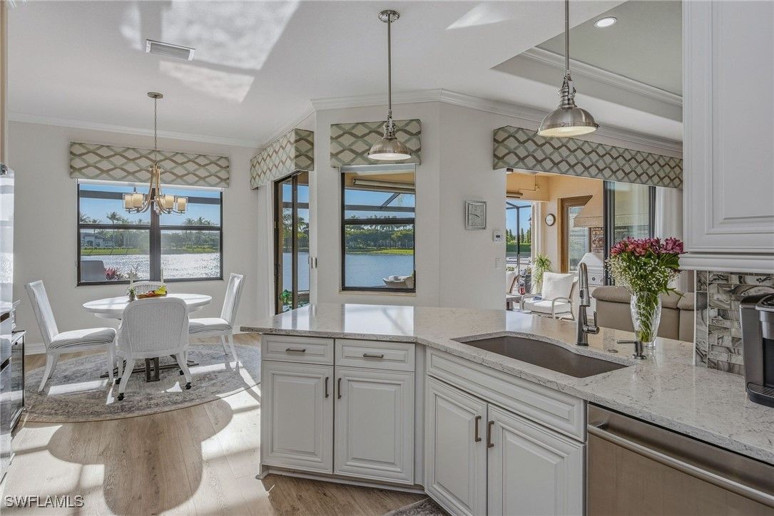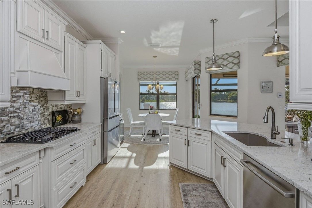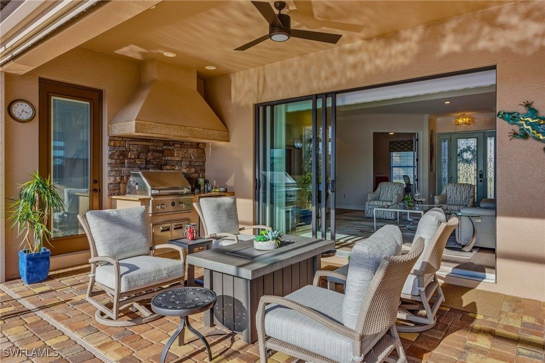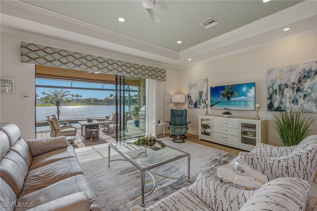 AMAZING WATER VIEWS, TPC GOLF MEMBERSHIP, SOLD TURNKEY AND UPGRADES! Just bring your suitcase and move right in! This stunning "Napoli" model home offers an unparalleled blend of luxury and comfort in the highly sought-after Treviso Bay Golf community with FULL TPC golf membership! From the moment you step into the foyer, you feel an immediate sense of sophistication with your eye drawn to the amazing water views! The open-concept design seamlessly connects the kitchen and living areas, making it ideal for both everyday living and elegant entertaining.This home has been very well maintained and thoughtfully upgraded! This home offers a split floor plan, newly painted interior and exterior and new vinyl flooring throughout! Both the primary closet and den have California Closet system installed. The chef’s kitchen is a true showpiece, featuring quartz countertops and backsplash, a natural gas stove, premium stainless steel appliances. The home has been professionally decorated with new lighting, Hunter Douglass shades, power drapery, designer furniture and accessories. The showcase lanai offers amazing water views through the newly added panoramic screened cage, Storm Smart hurricane shutters, outdoor kitchen with beverage cooler and a propane fire pit to relax after a long day! Complete replacement of Pool equipment including pump, heater, filter, pool/hot tub lights and addition of smart home pool control (wifi). The home is equipped with a Kohler generator providing whole house electrical backup, hurricane rated doors, windows and garage doors for peace of mind as well as a 220V electrical outlet in garage (for electric vehicle charging). For ease of living the HVAC is only 5 years old, addition of Lutron Smart home hub that allows for verbal control of lanai lights and internal art lights, additional recessed lighting and dimmers. There are so many upgrades you must see this lovely Home! This executive home comes with a TRANSFERABLE TPC GOLF MEMBERSHIP to enjoy! This entitles you to play the many TPC designated golf courses around the United States! Treviso Bay's Five Star amenities are second to none boasting the Villa Rilassare amenity center La Brezza resort style pool and full bar, professionally staffed fitness center, tennis courts, bocce, pickle ball, basketball and full spa services. The spectacular Treviso Bay TPC Golf clubhouse has two dining rooms, library, TPC pro shop, luxurious locker rooms and a breathtaking terrace over looking hole 9 and 18 to enjoy cocktails or fine dining. Just 5 miles away from Naples beautiful sandy beaches and fabulous 5th Ave shopping and restaurants! Just unpack your suitcase and enjoy!