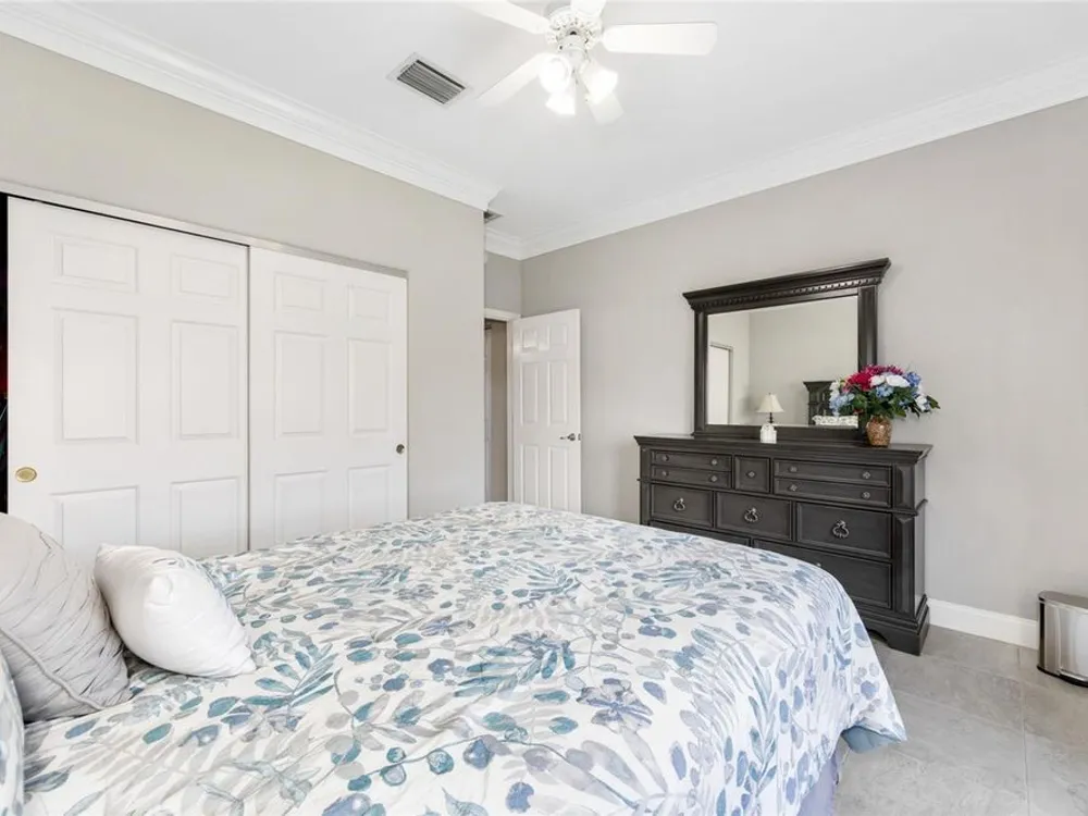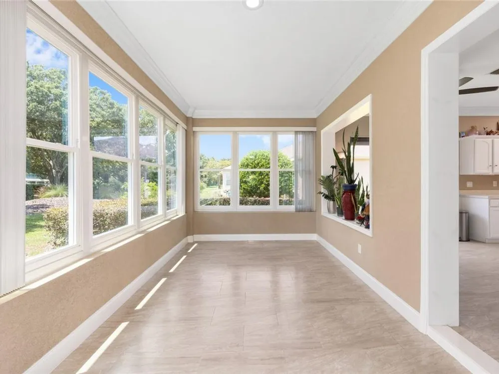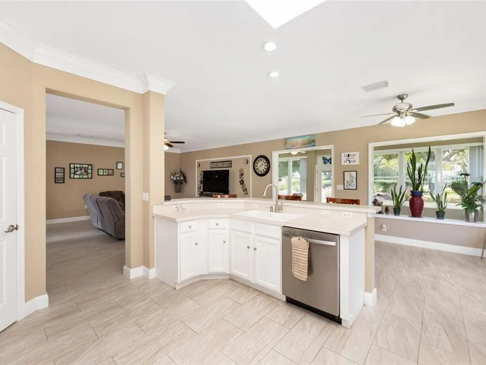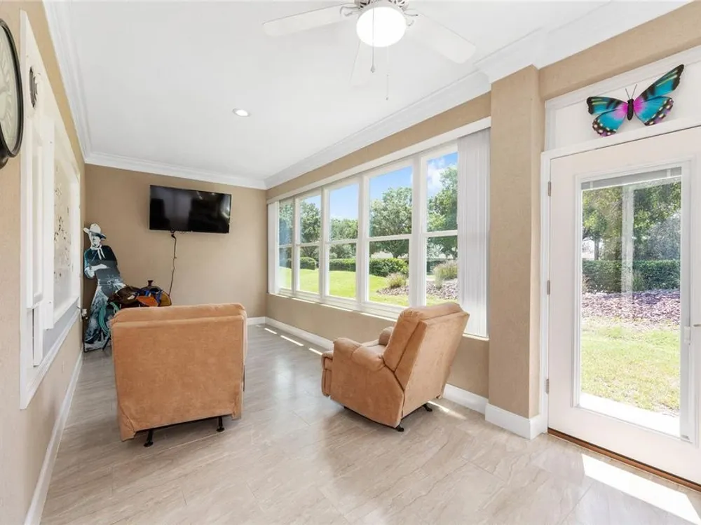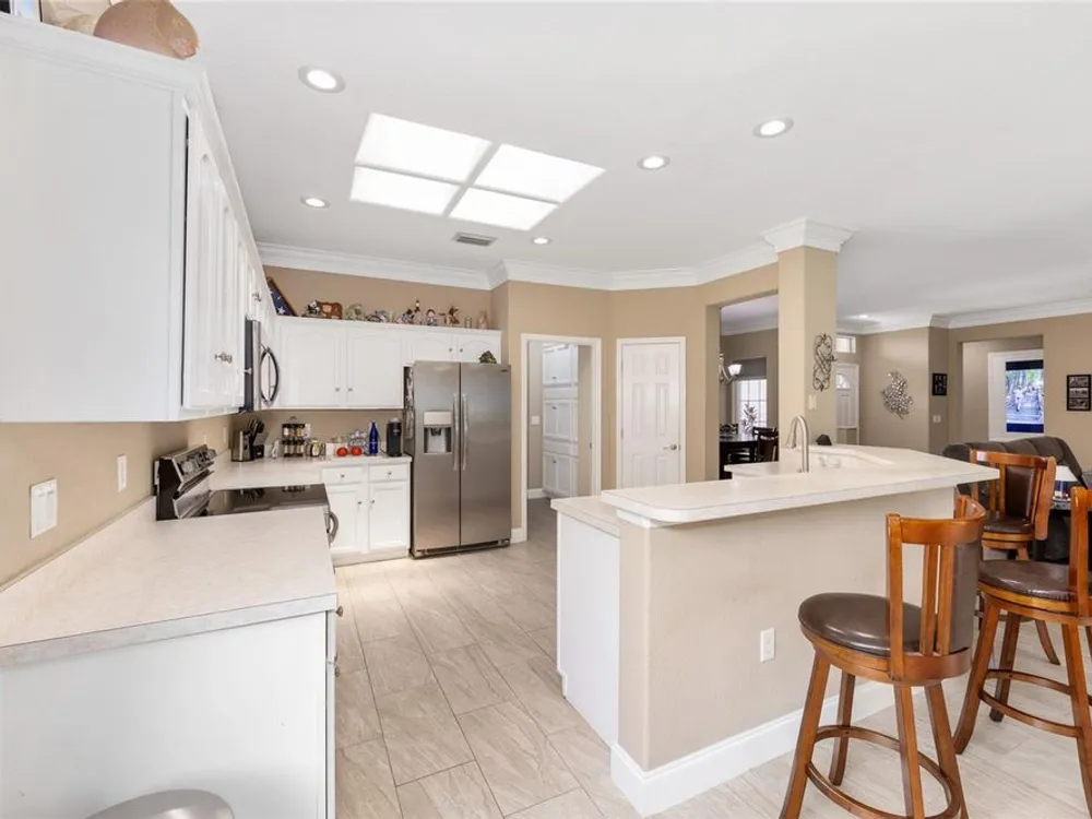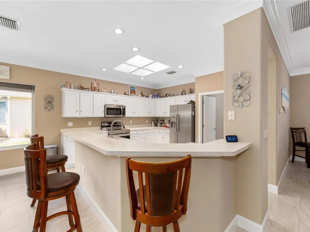 There are Madeira homes… and then there are SPECIAL Madeira homes. This is one of the special ones! As you arrive, you’ll notice the spotless driveway and walkway leading to a welcoming front patio seating area. Step inside and you’ll be impressed with the attention to detail throughout — crown molding, 5-inch baseboards, and ceramic tile flooring flow seamlessly through the home. The tiled lanai, complete with crown molding, newer single-hung double pane glass windows, and a finished ceiling, feels like an extension of the living space. A clever Murphy-style bed offers extra sleeping accommodations for guests without sacrificing room. All lighting has been upgraded to energy-efficient LED. The kitchen was updated in 2021 with crisp white cabinets, brushed nickel hardware, and newer stainless-steel appliances. Both bathrooms have been refreshed with new tops on the vanities that look like granite, and raised-height counters, while the primary bath boasts a newer shower. Additional updates include: • New roof (2024) • HVAC (2019) • Hot water heater (2019) • Exterior paint (2021) and interior paint (2020) • Insulation added over lanai and garage ceilings, plus insulated garage door • 6-inch gutters with underground drainage This home is truly move-in ready with upgrades already done for you. Don’t miss your chance to see one of the finest Madeira models available!