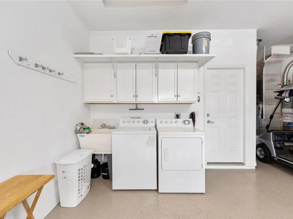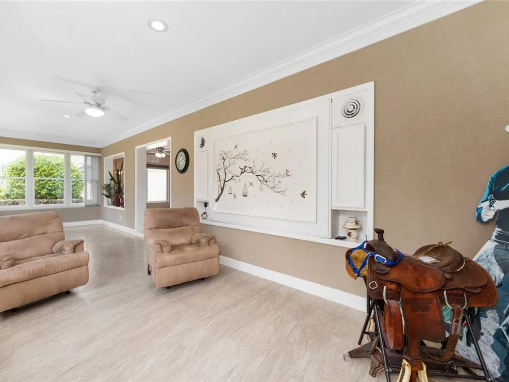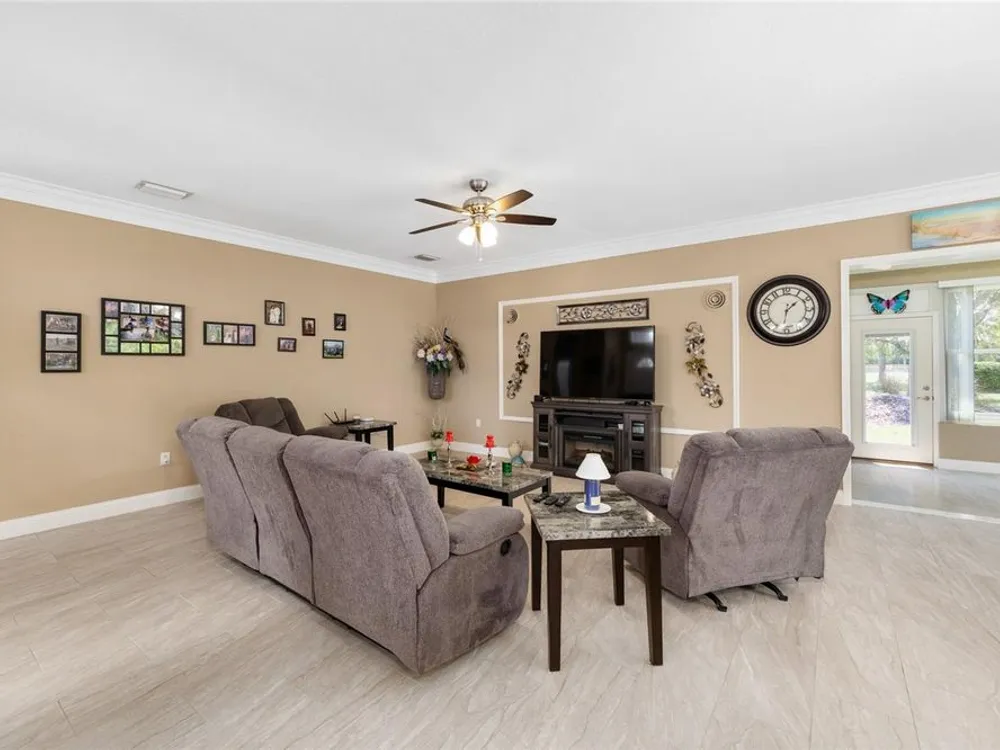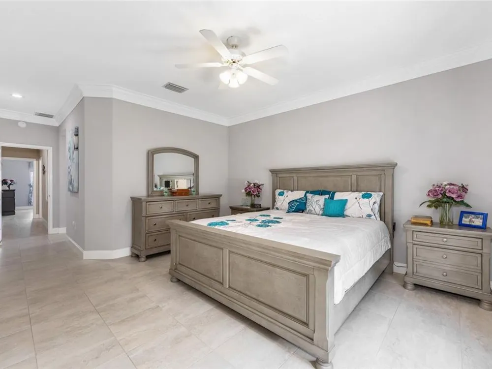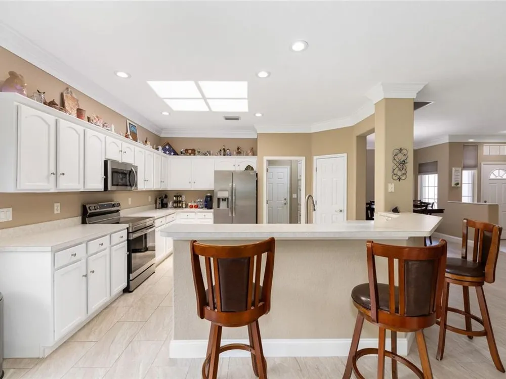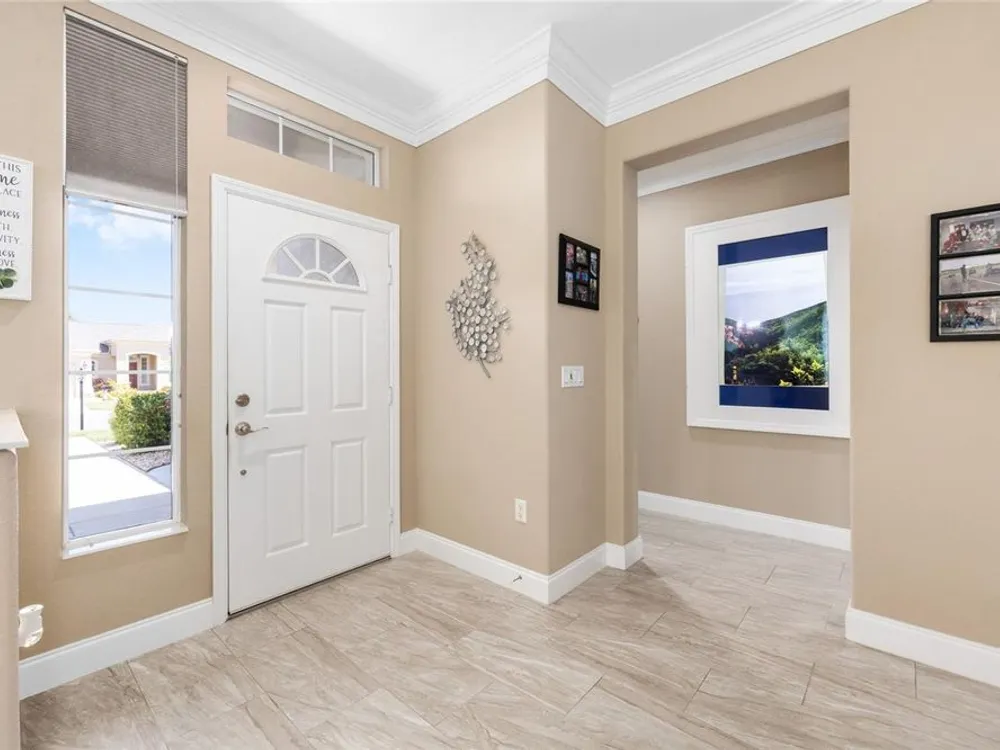 There are Madeira homes… and then there are SPECIAL Madeira homes. This is one of the special ones! As you arrive, you’ll notice the spotless driveway and walkway leading to a welcoming front patio seating area. Step inside and you’ll be impressed with the attention to detail throughout — crown molding, 5-inch baseboards, and ceramic tile flooring flow seamlessly through the home. The tiled lanai, complete with crown molding, newer single-hung double pane glass windows, and a finished ceiling, feels like an extension of the living space. A clever Murphy-style bed offers extra sleeping accommodations for guests without sacrificing room. All lighting has been upgraded to energy-efficient LED. The kitchen was updated in 2021 with crisp white cabinets, brushed nickel hardware, and newer stainless-steel appliances. Both bathrooms have been refreshed with new tops on the vanities that look like granite, and raised-height counters, while the primary bath boasts a newer shower. Additional updates include: • New roof (2024) • HVAC (2019) • Hot water heater (2019) • Exterior paint (2021) and interior paint (2020) • Insulation added over lanai and garage ceilings, plus insulated garage door • 6-inch gutters with underground drainage This home is truly move-in ready with upgrades already done for you. Don’t miss your chance to see one of the finest Madeira models available!