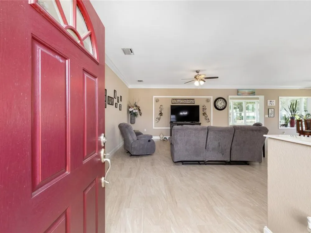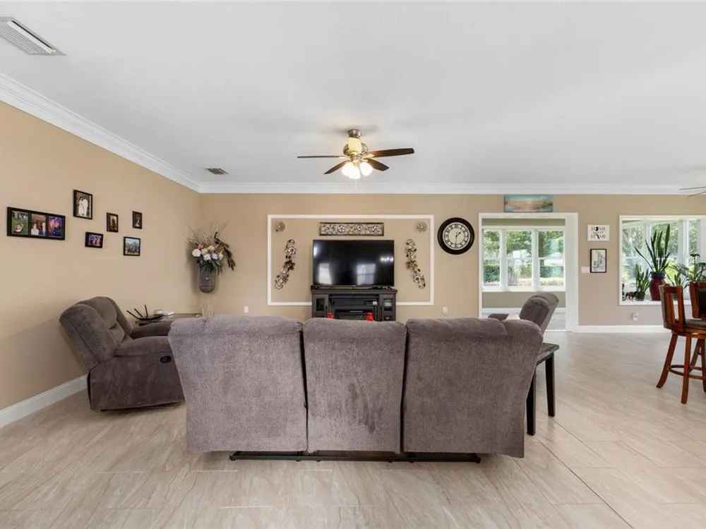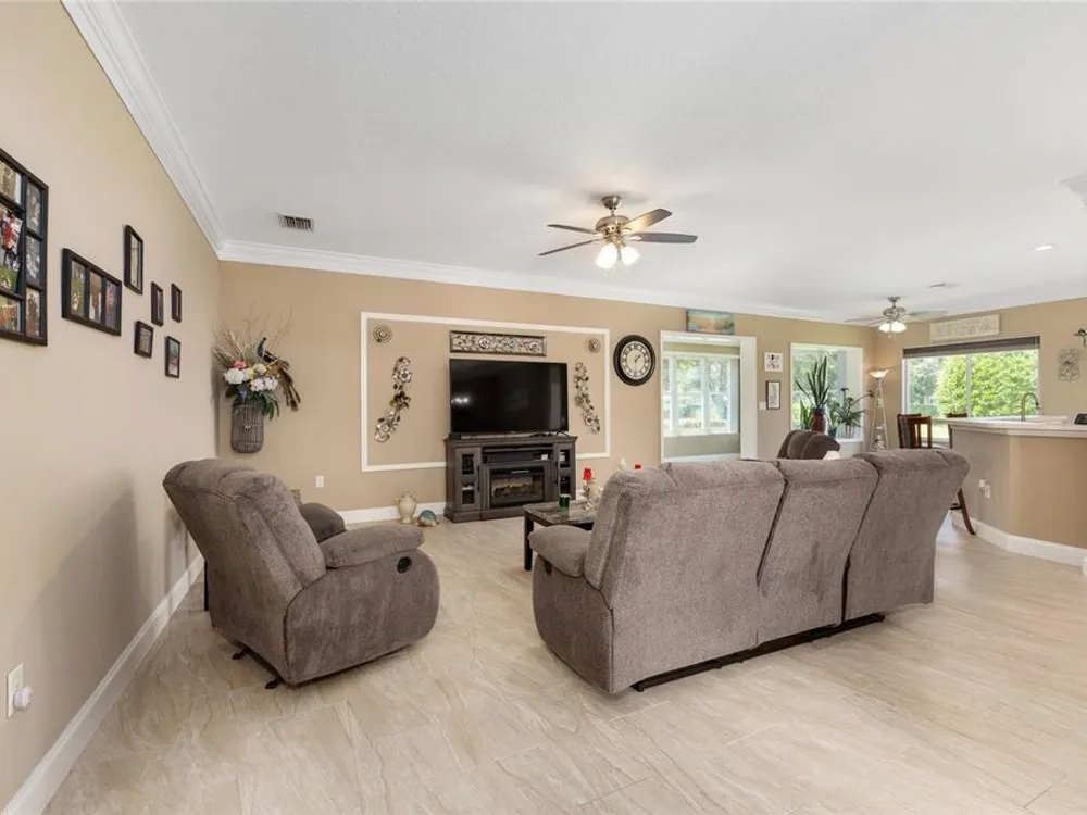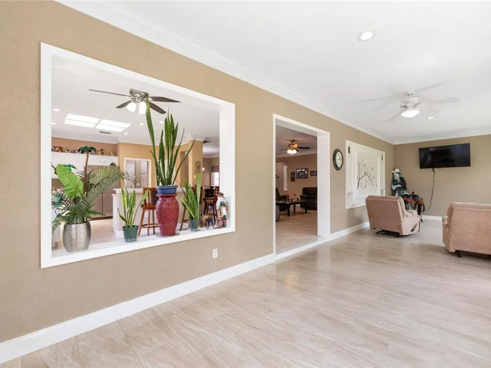 - Ceiling Fan(s), Crown Molding, Kitchen/Family Room Combo, Open Floorplan, Solid Surface Counters, Solid-Wood Cabinets, Walk-In Closet(s), Window Treatments