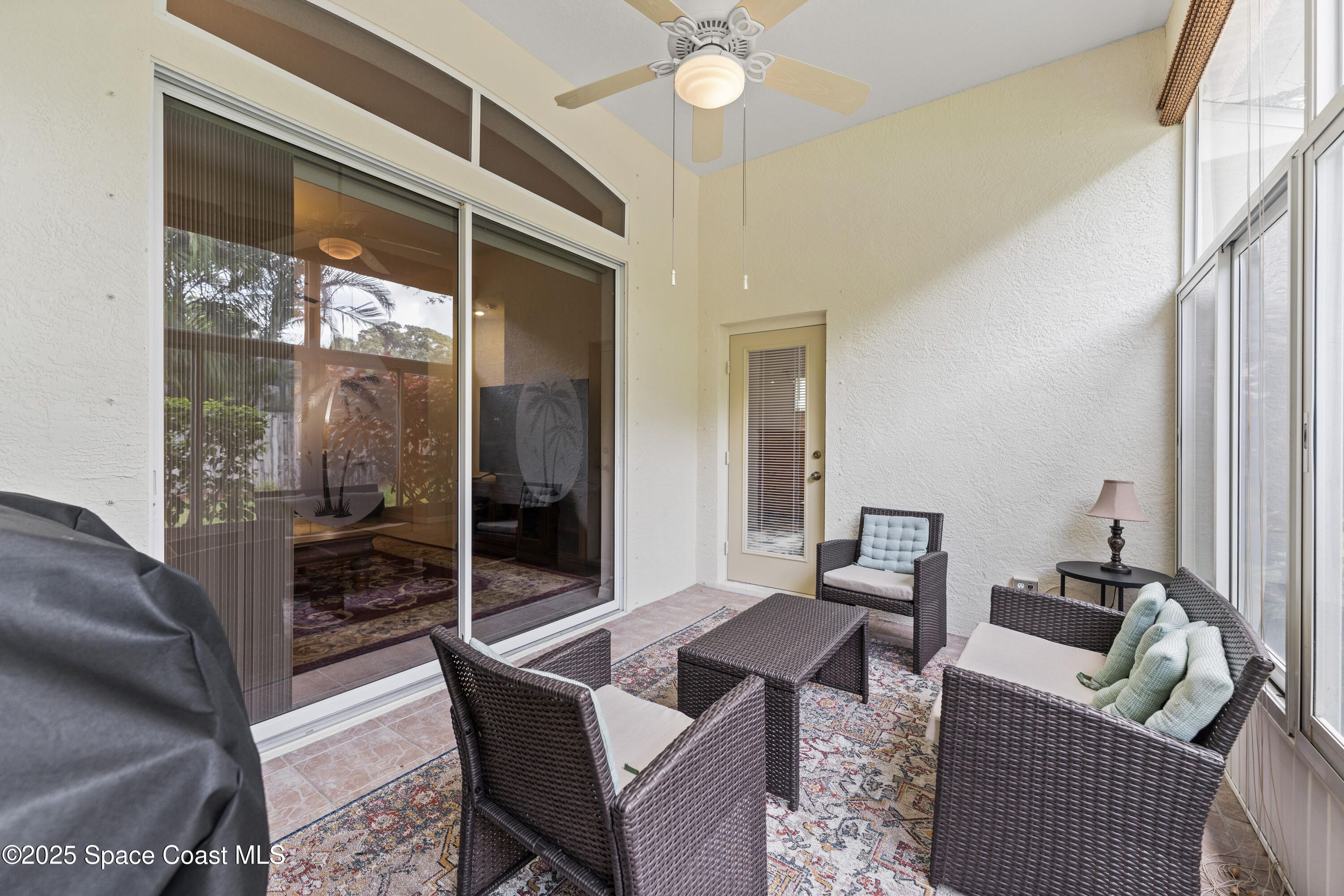 Welcome to the well sought after resort style Compass Pointe Subd. An active 55 and older gated community located just a few miles from local hospitals, doctor's, restaurants and all shopping. 7 miles to the beach and 4 miles to the local airport. This home is turn key with many upgrades. Soaring ceilings from 10' to 12'. Front porch is screened and rear patio is glass & screen enclosed. Impact windows, accordion shutters, corian counters, tile and laminate floors, AC is 2017, roof is 2022. Eat-in kitchen with a center island & lots of counter space and cabinets with pull outs. Feel secure in this well manicured community as you stroll the sidewalks enjoying the lush landscaping, rabbits and various water fowl species. Practice your putting game on the putting green at the community clubhouse including bocce ball, shuffle board, screened pool with a hot tub, and a gym. All these amenities are included with the very low HOA fees as well as all lawn and landscaping.