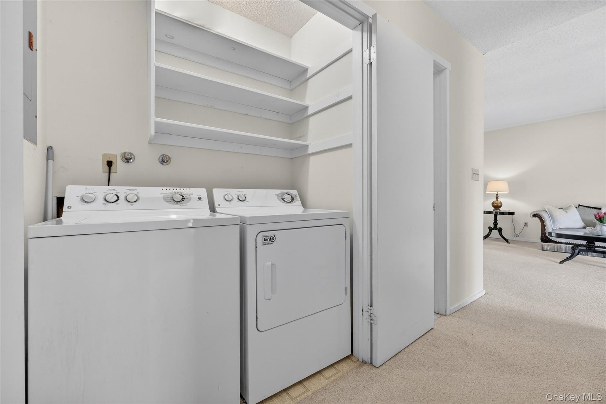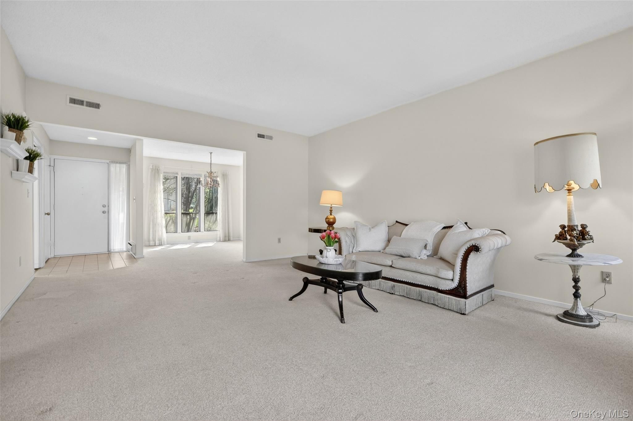 Highly desirable Armonk Unit located on the West Hill. Truly no step living. Perfectly sited on the green w/ fabulous golf course views. Well maintained 2-bedroom, 2-bathroom w/ attached garage, offers the perfect blend of leisure and convenience. Start your morning in the kitchen and dining room bathed in natural sunlight. Relax in your living room with a cozy wood burning fireplace and sliding doors that open directly to a large patio overlooking the fairways. The formal dining room offers plenty of space for holiday entertaining. The primary suite is your personal getaway, complete with a spacious walk-in closet and a thoughtfully updated bathroom designed for accessibility and ease. This home is wheelchair-friendly with widened door frames, a customized handicapped-accessible shower conversion, and no stairs. Visitor parking is conveniently located right in front of the home, making hosting a breeze. Heritage Hills redefines upscale living with a robust suite of amenities designed for an active lifestyle. Residents enjoy access to courts for pickleball, paddle tennis, bocce, and indoor basketball, alongside a stunning clubhouse and tranquil walking paths. Peace of mind is standard here thanks to 24-hour security, while a dedicated shuttle provides easy access to local shopping and rail transit. Golfers can join the nearby Somers National Golf Club, or simply unwind at the Bistro on the Green. Travel into NYC in one hour via I-684 or Metro North train, making this home the perfect location for those who want easy access to the city. HOA fee $556 monthly, Society fee $179 monthly, Sewer $48 monthly, watered metered monthly. Taxes posted do not reflect basic star exemption of $1,447. Buyers are required to pay at closing a one-time fee to Society of $1500.