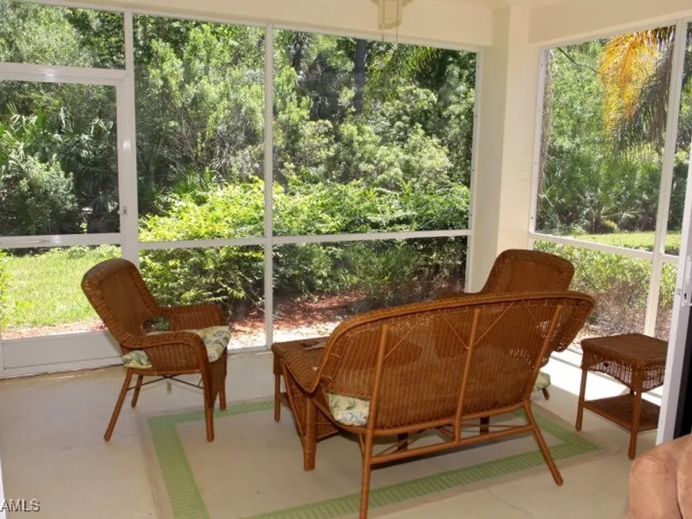 This is a FULLY FURNISHED TURNKEY END UNIT - Condo and is located on the Highly popular Community of Colonial Country Club. This is the largest sq ft condo on the Preserve and is in excellent condition and offers a great relaxing preserve view from its screened lanai. It has 2 BEDS 2 BATHS PLUS A DEN, The upgraded Kitchen has new appliances and has a eat in Kitchen area. The master bedroom has a large walk-in closet, double sink vanity, new upgraded glass shower and has a private toilet. The guest bedroom also has a walk-in closet. It has Social membership, with Golf pay and Play and Colonial Country Club is one of the Premier communities in the area which features a championship golf course, a full service Clubhouse with dining, resort style pools, fitness center, tennis, pickleball, and bocce, miles of walking trails and close to the main I75 highway and just 30 minutes from the Beach.